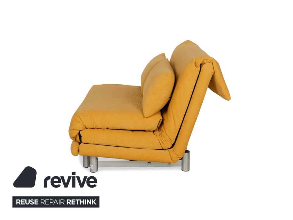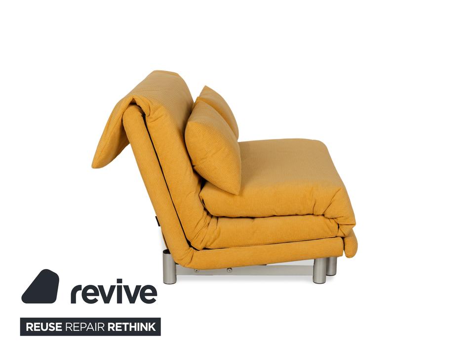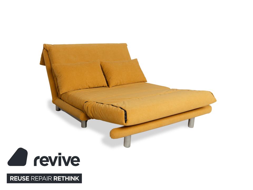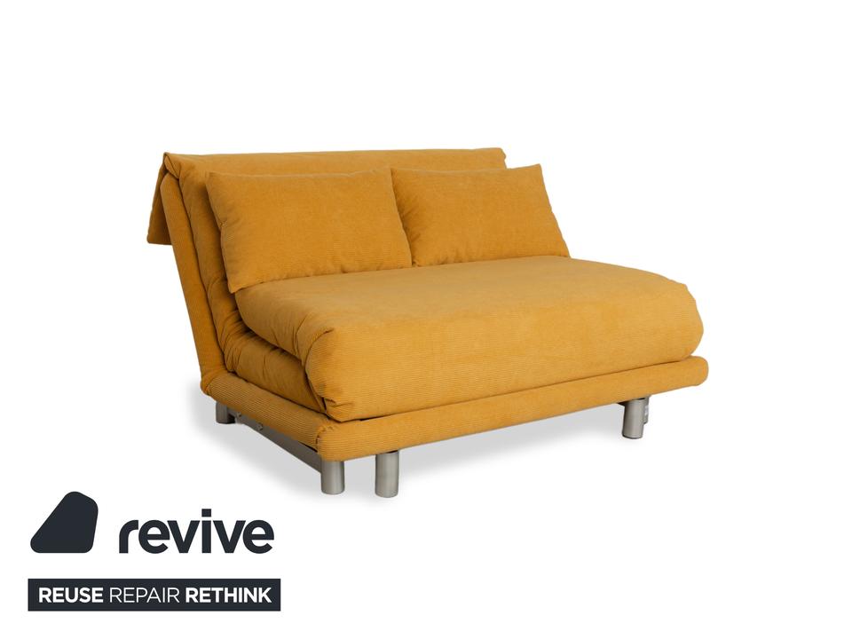 Das Ligne Roset Multy überzeugt durch hochwertigen und bequemen Stoff. Der gelbe Farbton (ALUNA 245) sticht heraus und kann eine freundliche, frühlingshafte Atmosphäre im Raum schaffen. Zudem kann das Sofa zum Schlafsofa umgewandelt werden.