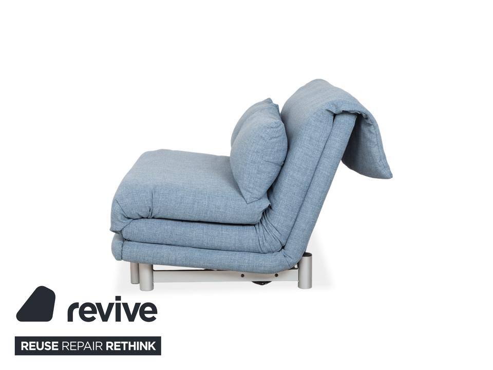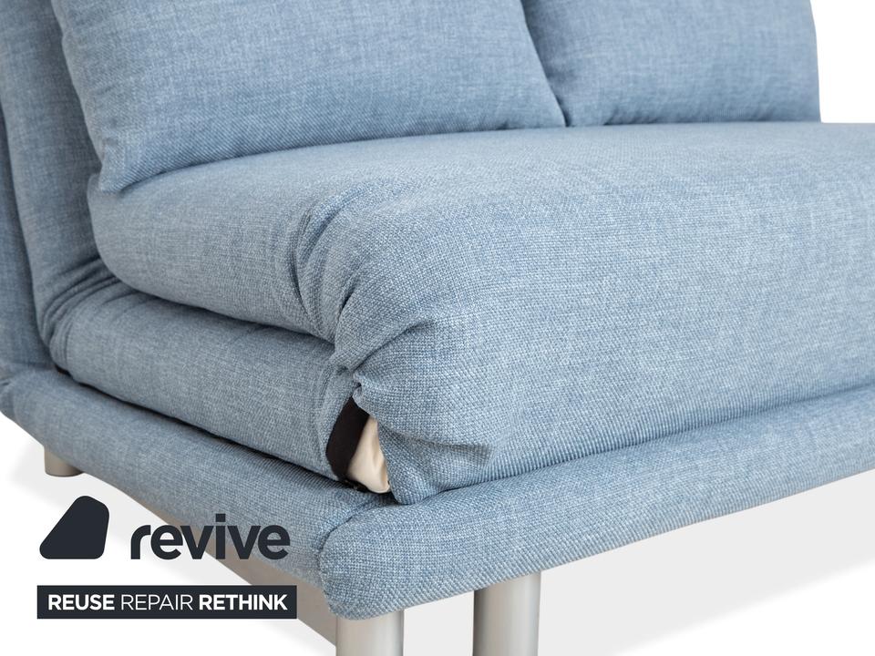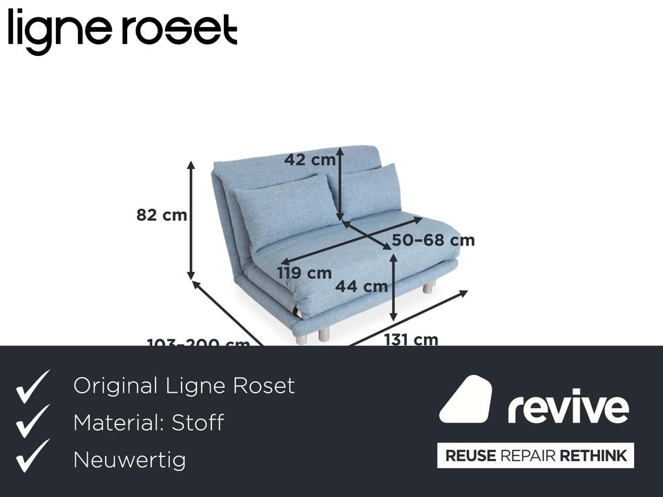 Das Ligne Roset Multy ist der Inbegriff des wandelbaren Design-Möbels und vereint seit Jahrzehnten zeitloses Design mit unübertroffener Praktikabilität. Dieser kompakte Zweisitzer wurde hochwertig neu bezogen und präsentiert sich nun im eleganten, hellblau-grauen Stoff Vivo 648. Die kühle, dezente Farbgebung und die feine Textur des Bezugs verleihen dem Klassiker von Claude Brisson eine frische, moderne Ausstrahlung, die sich harmonisch in helle und minimalistische Einrichtungsstile einfügt.Herausragend ist die intuitive Wandlungsfähigkeit des Multy: Dank der bewährten manuellen Stufen-Funktion lässt sich das Sofa mühelos in eine entspannte Recamier-Position oder ein komfortables Gästebett verwandeln. Der hochwertige Neubezug umfasst das gesamte Gestell sowie die zwei charakteristischen Kissen, die das harmonische Gesamtbild abrunden. Aufgrund der Natürlichkeit des Materials und des Neubezugs können im Vergleich zu anderen Elementen minimale Farbunterschiede bestehen, die jedoch den individuellen Charakter dieses frisch aufbereiteten Möbels unterstreichen. Ob als platzsparende Lösung im Homeoffice oder als stilvoller Mittelpunkt in kleinen Wohnräumen – mit diesem Ligne Roset Multy entscheiden Sie sich für ein langlebiges Statement-Piece, das französischen Chic und funktionalen Komfort perfekt vereint.
