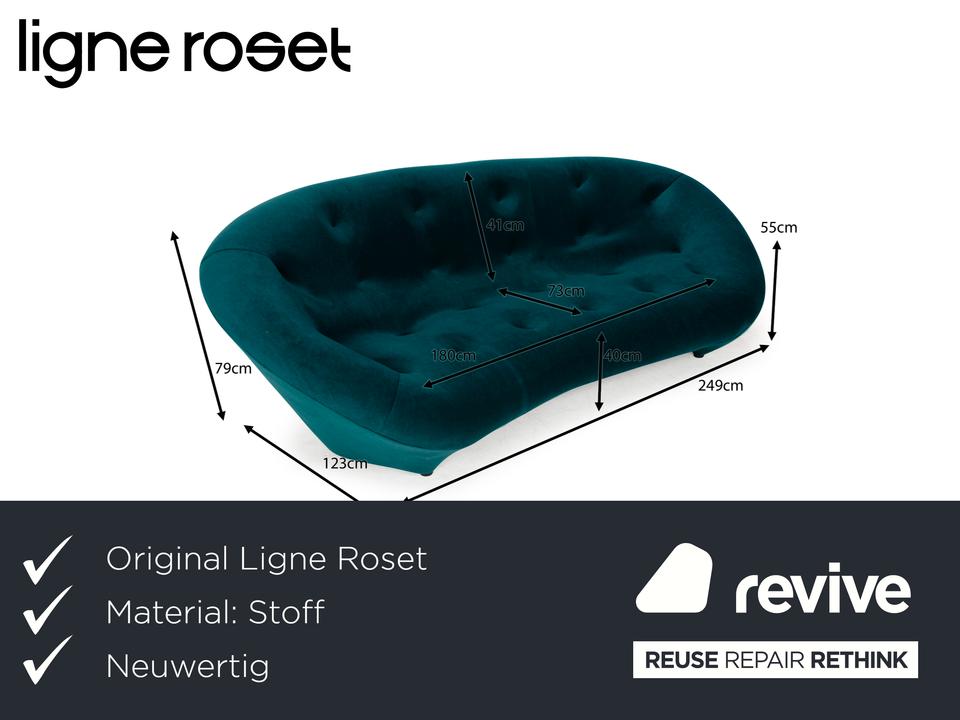 Ligne Roset Ploum Stoff Dreisitzer Petrole Grün Blau Sofa Couch