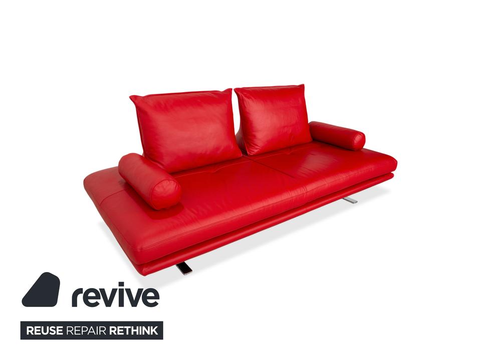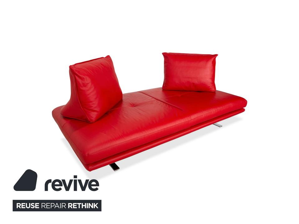 Das Ligne Roset Prado ist nicht ohne Grund eines der Flaggschiffmodelle des Herstellers: Der Entwurf von Christian Werner bricht mit dem klassischen Verständnis eines Sofas. Statt fester Lehnen hast du hier eine großzügige, glatte Sitzfläche und völlig frei platzierbare Rückenkissen, was dir eine gestalterische Freiheit gibt, die einfach genial ist. In diesem knalligen Rot wird das Prado zudem zum absoluten Statement-Piece, das sofort eine positive, moderne Energie in deinen Wohnraum bringt und das hochwertige Leder perfekt in Szene setzt.Die Besonderheit der manuellen Funktion liegt in den beweglichen Rückenteilen: Da die Kissen nicht fest mit dem Korpus verbunden sind, lässt sich das Sofa immer so umgestalten, wie du es grade brauchst. Das rote Leder unterstreicht dabei die exklusive Verarbeitung und sorgt dafür, dass das Möbel trotz seiner Vielseitigkeit eine klare, ästhetische Linie behält.