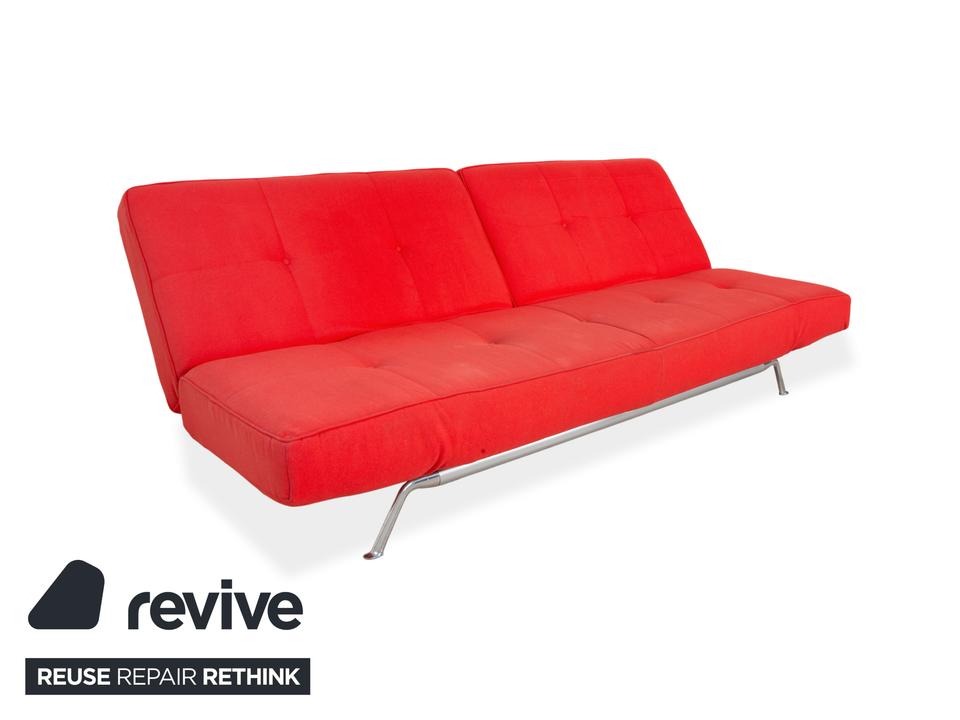 Das Ligne Roset Smala, entworfen von Pascal Mourgue, ist ein echtes Verwandlungskünstler-Stück und ein moderner Design-Klassiker. In einem kräftigen Signalrot gehalten, setzt dieser Stoff-Dreisitzer ein mutiges Statement und bringt Energie sowie zeitlose Eleganz in Ihren Wohnraum. Die großzügige Formsprache ruht auf einem filigranen Gestell aus poliertem Aluminium, was dem Sofa trotz seiner Präsenz eine schwebende Leichtigkeit verleiht.Das herausragende Merkmal des Smala ist seine außergewöhnliche funktionale Vielseitigkeit: Dank einer raffinierten manuellen Mechanik lassen sich sowohl die Rückenlehnen als auch die Armlehnen in mehreren Stufen individuell verstellen. So verwandelt sich das Sofa im Handumdrehen von einer repräsentativen Sitzgelegenheit in eine gemütliche Daybed-Liegefläche oder ein komfortables Gästebett. Mit dem Ligne Roset Smala entscheiden Sie sich für ein architektonisches Möbelstück, das minimalistische Ästhetik und maximale Freiheit bei der Nutzung perfekt miteinander in Einklang bringt.