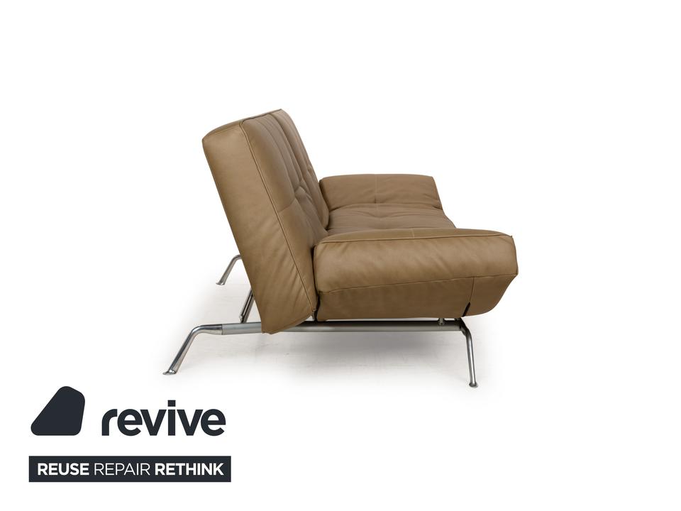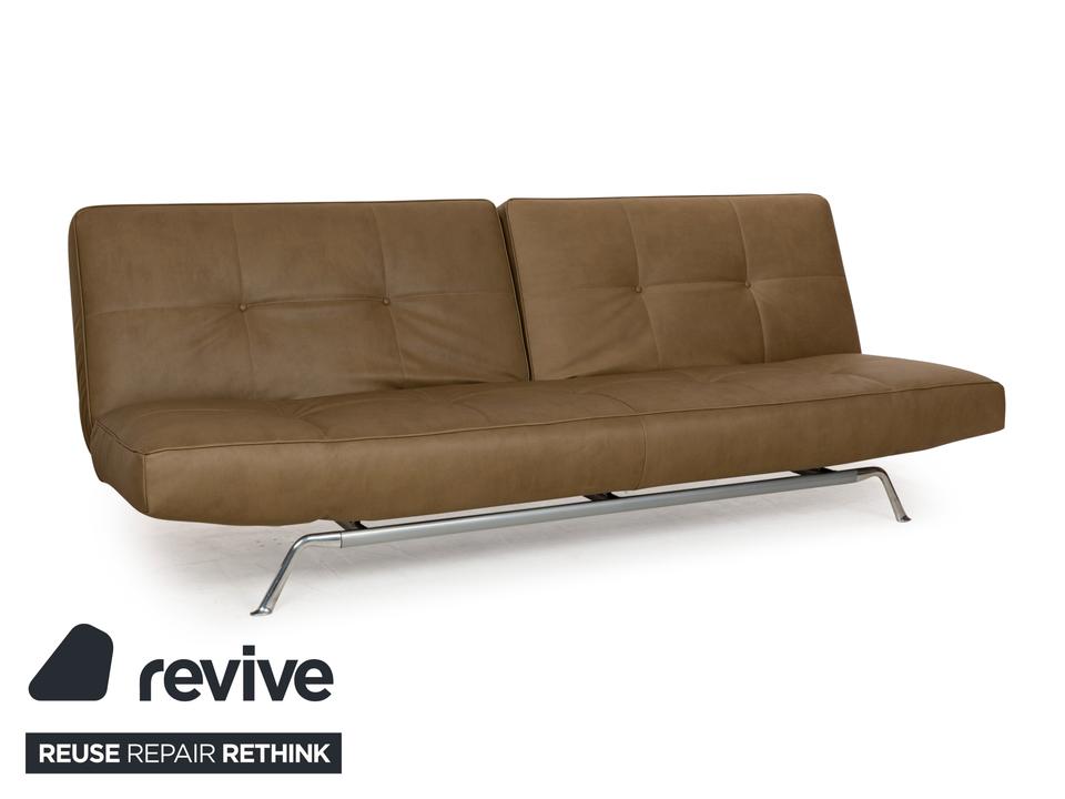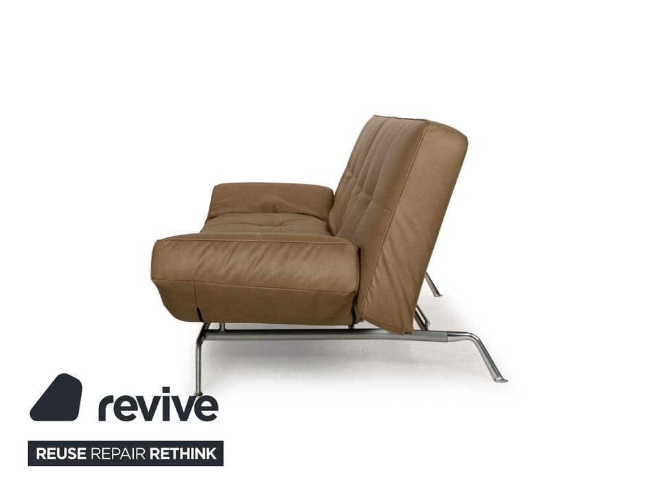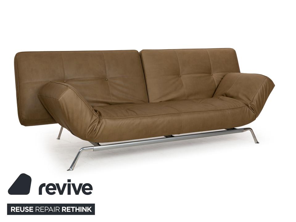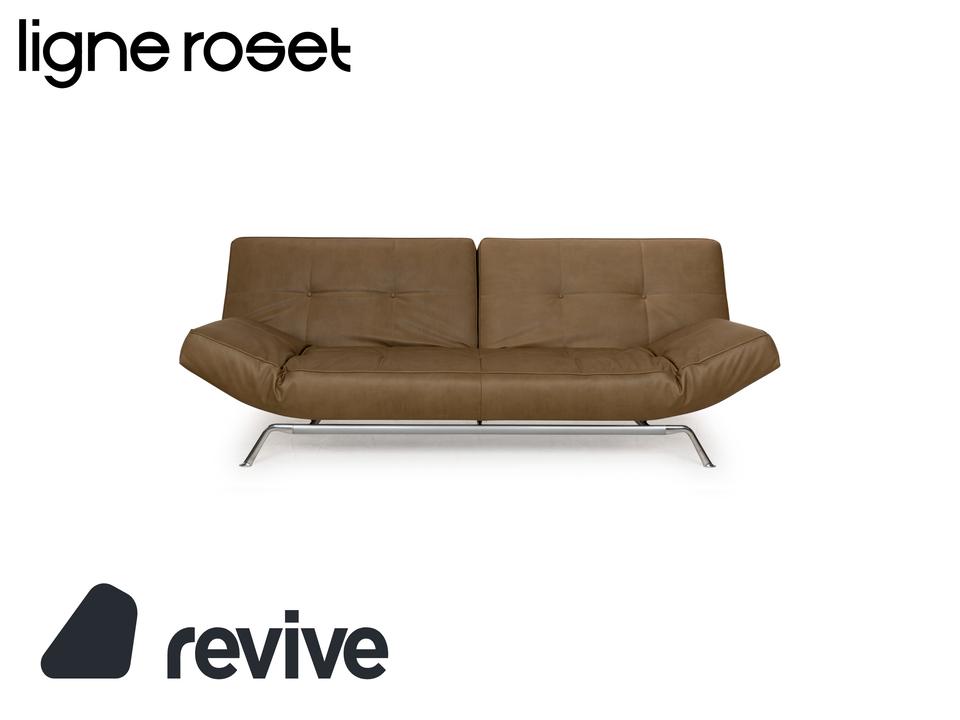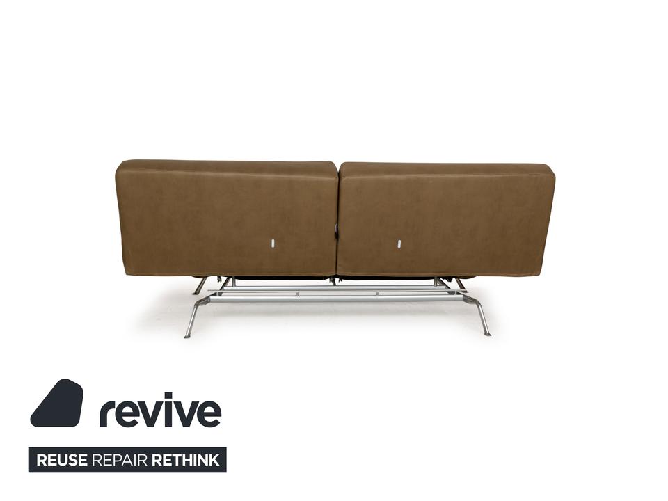 Der Zweisitzer Smala von Ligne Roset ist mit einem grün-khakifarbenen Textilleder bezogen und steht auf silbernen Metallfüßen. Es zeichnet sich durch sein modernes und funktionales Design aus, denn die Armlehnen sind in der Höhe verstellbar und die Rückenlehne lässt sich komplett nach hinten klappen. So fungiert der Zweisitzer auch als als komfortables Schlafsofa. Das Sofa kombiniert Funktionalität mit einem stilvollen Design und ist in jedem Raum ein Highlight. Das Material ist ein „veganes Leder“.Ein paar Details zum Material (GAVIN 108 Mikrofaser in Lederoptik)EIN STOFF, SO SCHÖN WIE LEDER, NUR BESSER.Moderner Lifestyle, kompromisslose Qualität und ein Produkt, das auf tierische Bestandteile verzichtet. Das ist Gavin, unser veganer Möbelstoff und eine echte Alternative zum Polster-Leder.Obwohl er optisch und haptisch sehr stark an Leder erinnert, so ist er diesem funktional weitaus überlegen. Durch seine High-Tech-Faser ist Gavin mit 100.000 Scheuertouren nicht nur unglaublich strapazierfähig, sondern – anders als Leder – auch angenehm atmungsaktiv. Für einen hervorragenden Sitzkomfort und außergewöhnliche Langlebigkeit. Die umfangreiche Palette an Farben bietet eine Vielfalt an Möglichkeiten zur individuellen Gestaltung Ihrer Wohn(t)räume. Mit Gavin entscheiden Sie sich für einen Möbelstoff der neuen Generation – höchste Qualitätsansprüche vereint mit einer modernen und gleichzeitig tierfreundlichen Lebensweise.