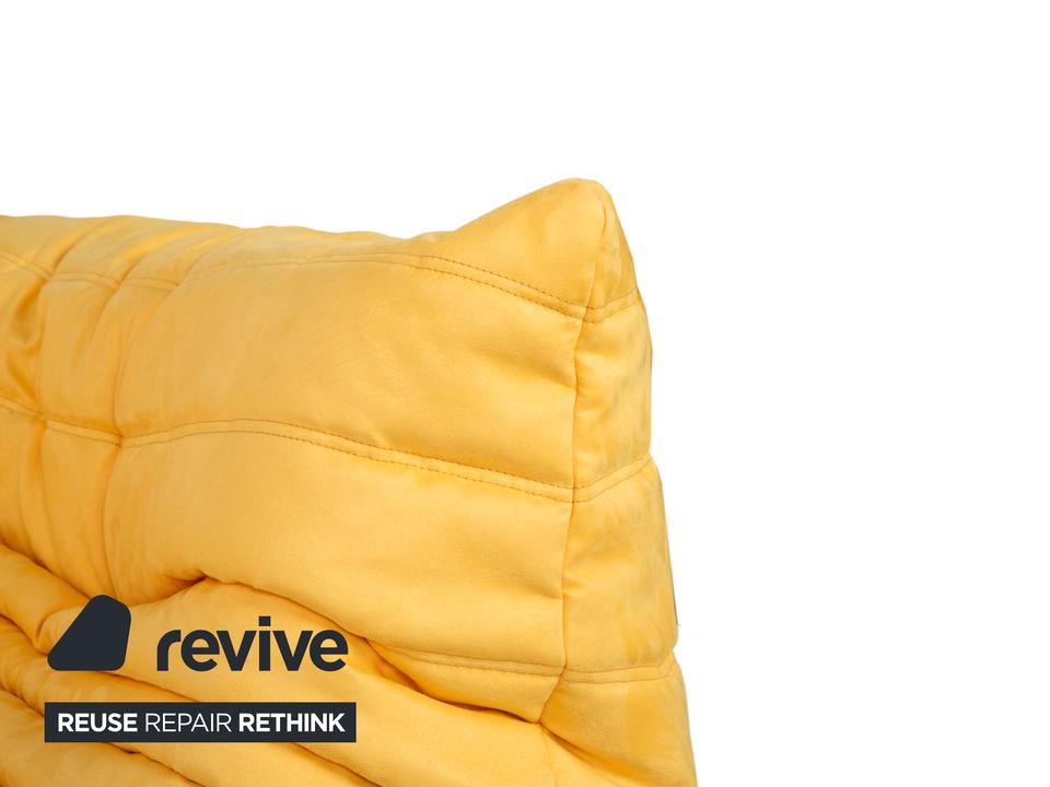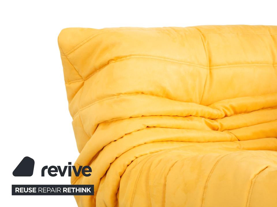Mit dem Togo Zweisitzer holst du dir die perfekte Ergänzung für deine Lounge – oder einen kompakten Hingucker für kleinere Räume. Auch dieses Modell aus der Feder von Michel Ducaroy wurde komplett neu bezogen, sodass der Stoff makellos ist und die Polsterung wie am ersten Tag wirkt.Das strahlende Gelb ist identisch mit dem des Eckteils und sorgt für einen fantastischen, frischen Farbtupfer in deiner Einrichtung. Der Zweisitzer bietet genug Platz für zwei Personen, um gemütlich nebeneinander zu entspannen, bleibt aber durch die fehlenden Armlehnen und die niedrige Bauweise optisch kompakt. Die berühmte „Knautsch-Optik“ mit den handgenähten Falten kommt in dieser hellen Farbe besonders gut zur Geltung und lädt sofort zum Hineinfallen ein. Ob in Kombination mit dem Eckteil oder als Solitär: Dieser Togo ist ein Garant für gute Laune und ultimativen Sitzkomfort.