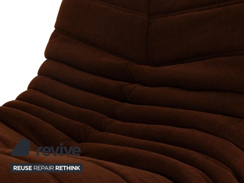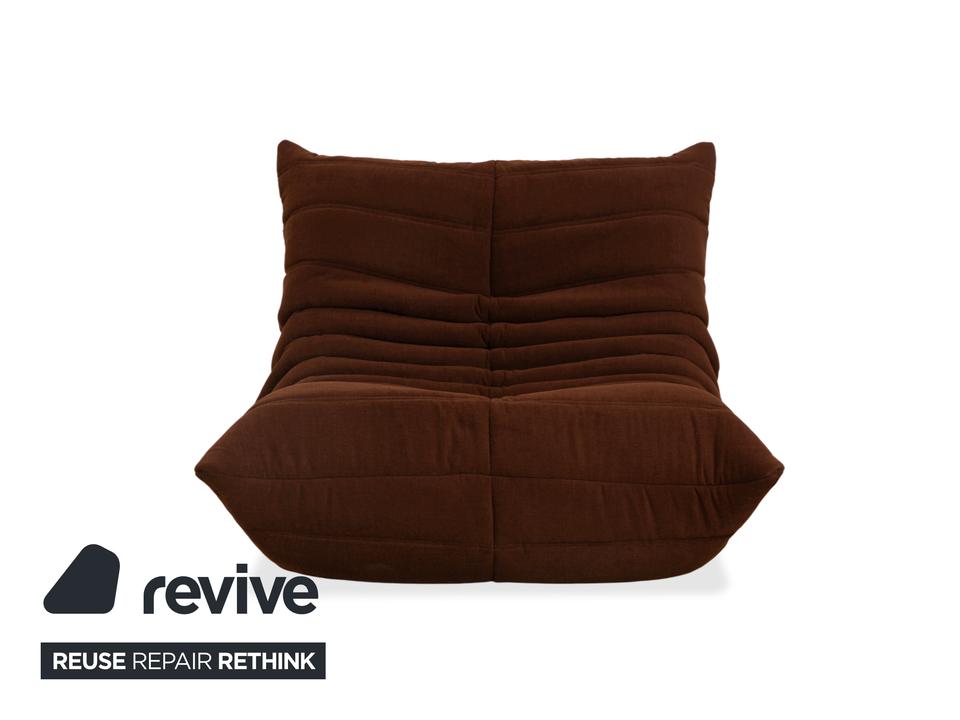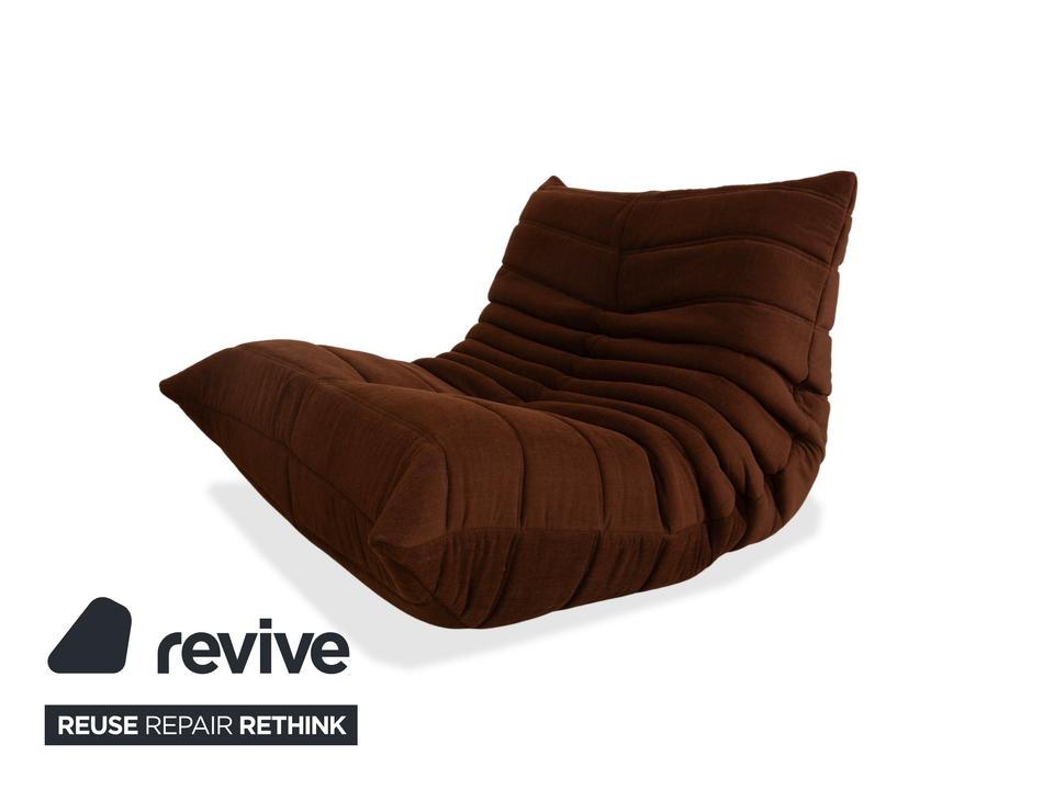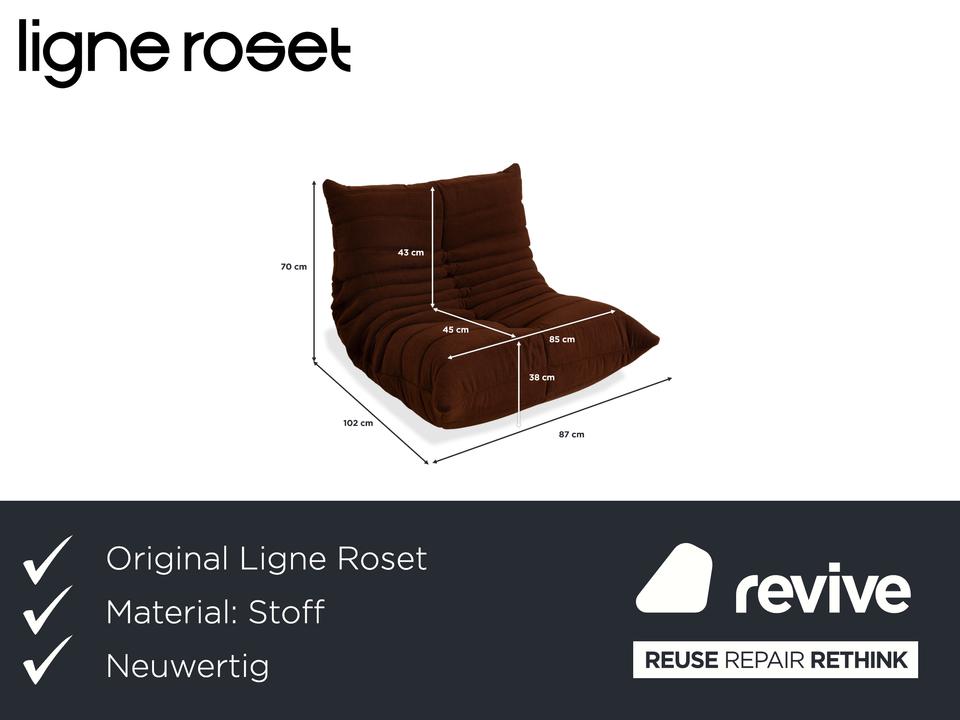 Mit dem Togo-Sessel holst du dir den ultimativen Kult-Klassiker von Ligne Roset ins Haus. Entworfen von Michel Ducaroy im Jahr 1973, ist dieses Möbelstück weit mehr als nur ein Sessel – es ist eine Ikone der Lässigkeit und Gemütlichkeit.Dieses spezielle Exemplar ist ein echtes Highlight, denn es wurde komplett neu bezogen. Du bekommst also den unverwechselbaren Charme des Originals in Kombination mit einem makellosen, unbenutzten Bezug. Der braune Stoff verleiht dem Sessel eine warme, erdige Note, die perfekt zur organischen, knautschigen Form passt.Das Design ist legendär: Rahmenlos und komplett aus Schaumstoff gefertigt, bietet der Togo einen einzigartigen Sitzkomfort. Du sitzt tief, weich und wirst von den charakteristischen Falten förmlich umarmt. Ob als Solitär in der Leseecke oder als Ergänzung zu einer bestehenden Sitzgruppe – dieser Sessel ist ein Statement für entspanntes Wohnen auf höchstem Niveau.