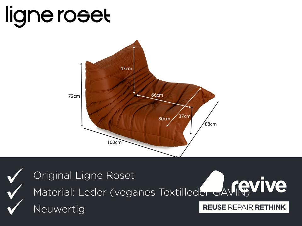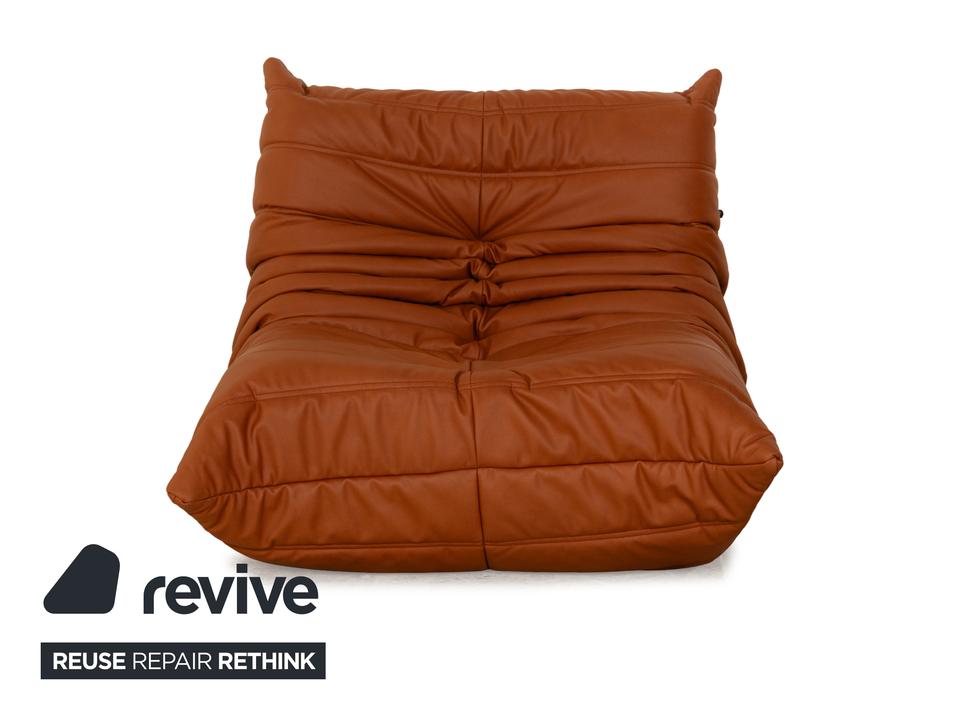 Der Sessel Togo von Ligne Roset stellt sich durch seine einzigartige Form als echter Hingucker heraus. Er ist mit einem braun-orangenen Textilleder (Gavin 103 von Höpke) neu bezogen worden. Weiche Kanten und Ecken, ein fast organisches Design und eine Sitzfläche, die einfach zum Verweilen einlädt. Informationen zum verarbeiteten Mikrofaserstoff: – Polsterstoff in Lederoptik von Höpke- Scheuertouren: 100.000 – in Haptik und Qualität hochwertige vegane Alternative zu echtem Leder