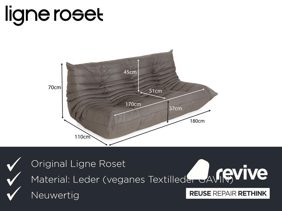 Das Sofa Togo von Ligne Roset stellt sich durch seine einzigartige Form als echter Hingucker heraus. Der Design-Klassiker ist mit einem grauen Textilleder (Gavin 115 von Höpke) neu bezogen worden. Weiche Kanten und Ecken, ein fast organisches Design und eine Sitzfläche, die einfach zum Verweilen einlädt. Informationen zum verarbeiteten Mikrofaserstoff: – Polsterstoff in Lederoptik von Höpke- Scheuertouren: 100.000 – in Haptik und Qualität hochwertige vegane Alternative zu echtem Leder
