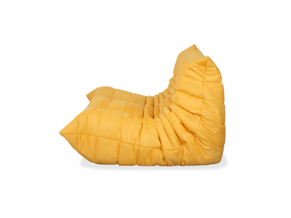 Mit diesem Eck-Element holst du dir ein entscheidendes Puzzlestück des Kult-Klassikers „Togo“ von Ligne Roset in dein Zuhause. Entworfen von Michel Ducaroy, steht diese Möbelserie seit den 70ern für ultimative Lässigkeit. Dieses Stück ist ein absoluter Hingucker, denn es wurde komplett neu bezogen und strahlt in einem kräftigen, sonnigen Gelb. Diese Farbe bringt sofort Energie und Fröhlichkeit in jeden Raum.Das Eckteil ist genial vielseitig: Es dient als perfektes Verbindungsstück, um aus zwei Togo-Sofas eine riesige Wohnlandschaft zu bauen, funktioniert aber auch wunderbar als eigenständiger, super gemütlicher „Lese-Winkel“ in einer Zimmerecke. Wie alle Togos besteht es komplett aus hochwertigem Schaumstoff – ohne harten Rahmen. Du sitzt also weich, bodennah und wirst von den charakteristischen Falten bequem aufgefangen. Durch den Neubezug genießt du die makellose Optik eines neuen Design-Möbels mit dem Charme des Originals.
