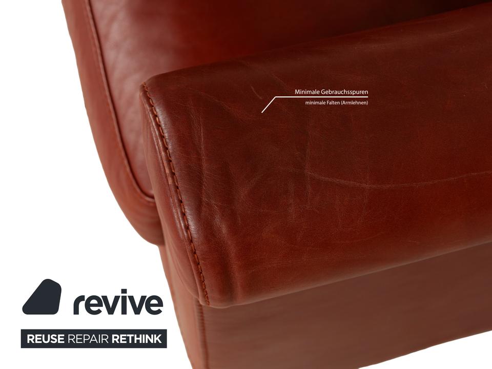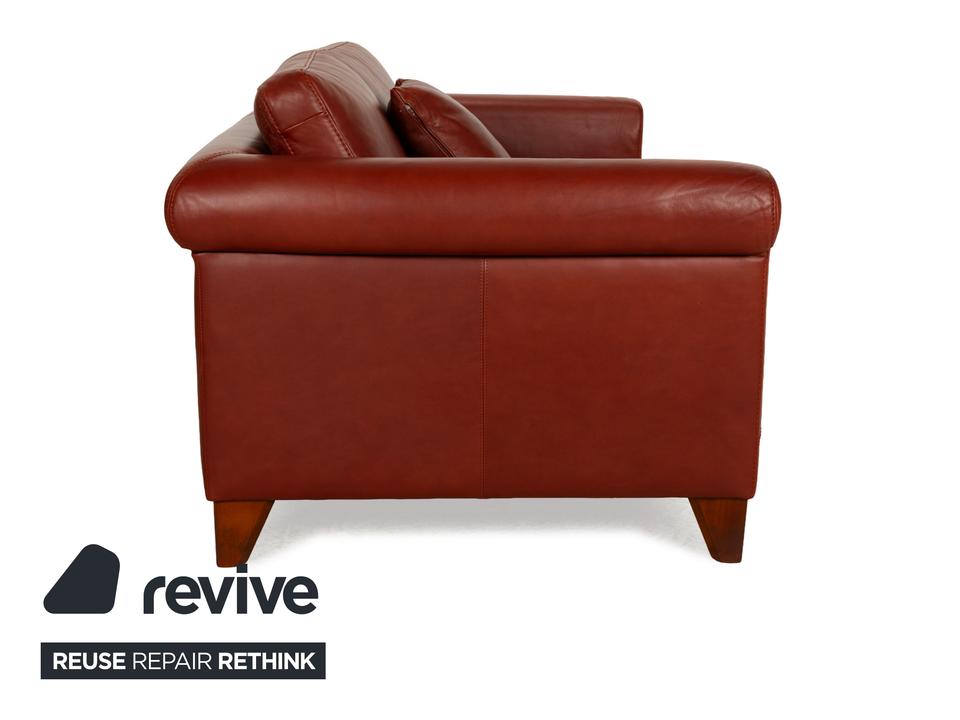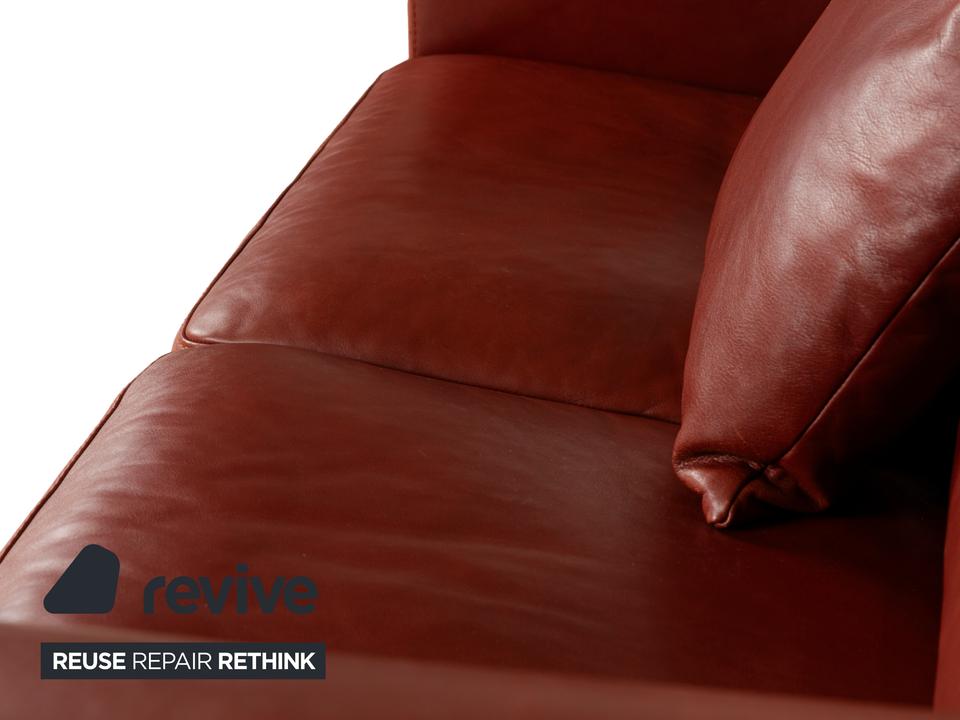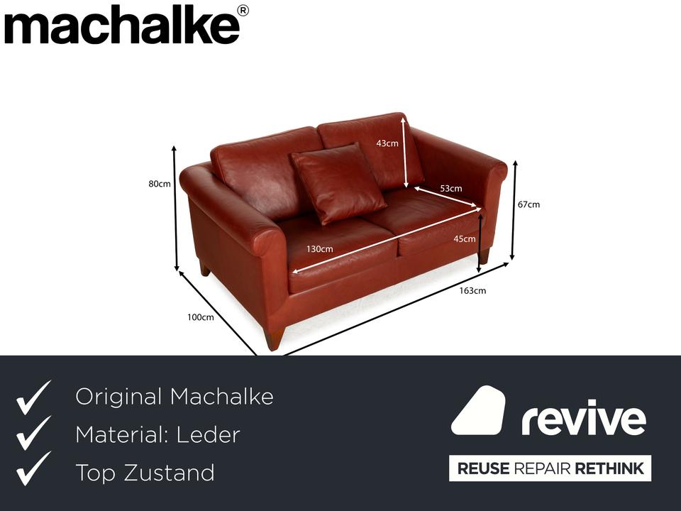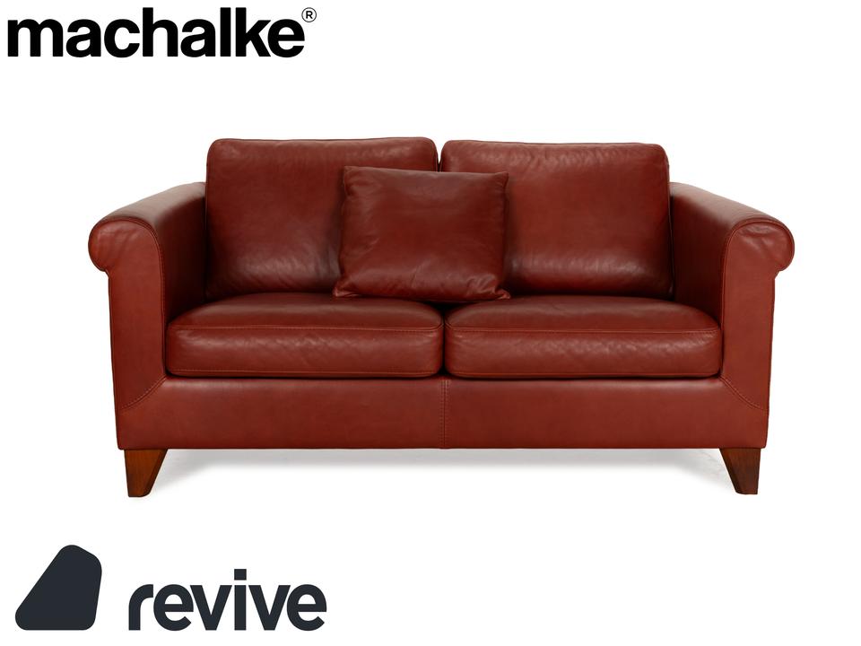 Das Sofa Amadeo von Machalke ist mit rotbraunem Leder bezogen und steht auf sich verjüngenden, kantigen Füßen aus Holz. Der Zweisitzer zeichnet sich durch sein klassisches, stilvolles Design aus und bietet dank seiner hohen Rückenlehne großen Komfort.