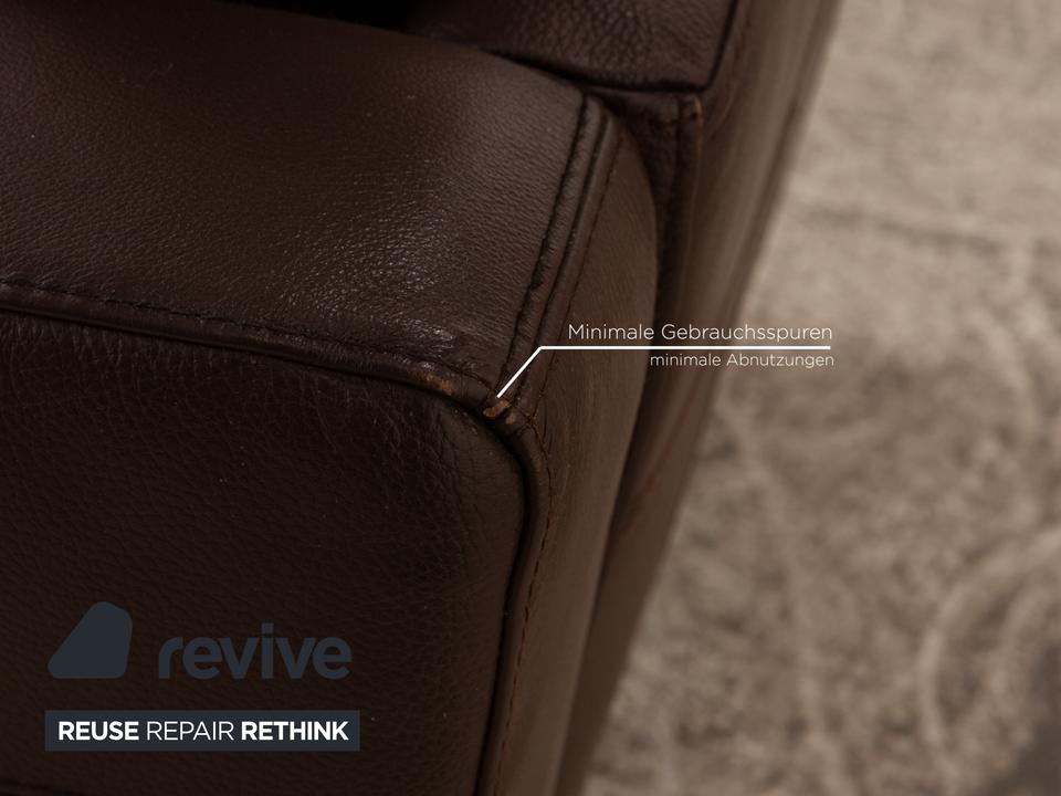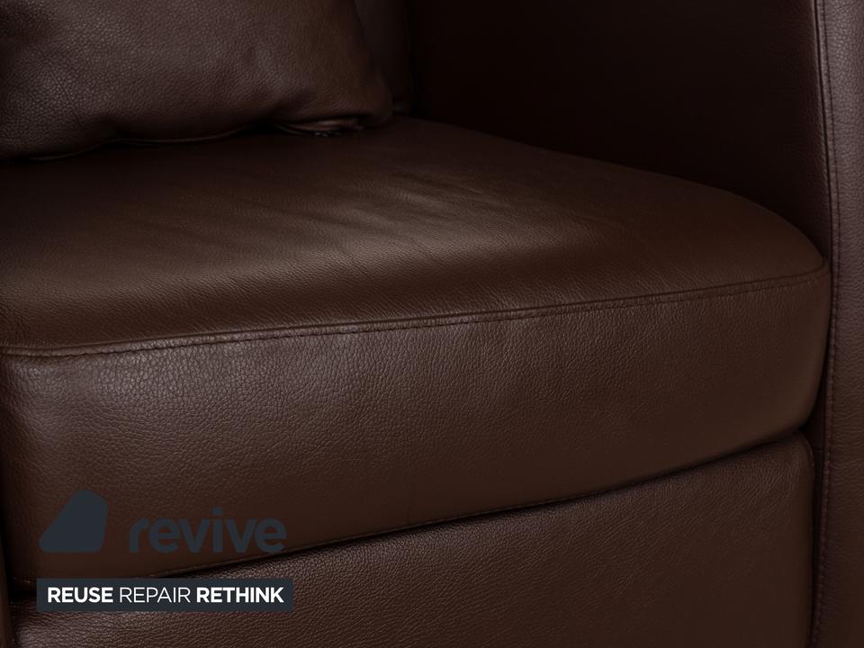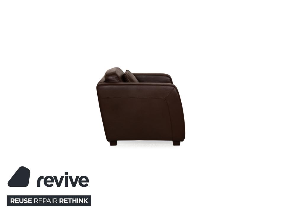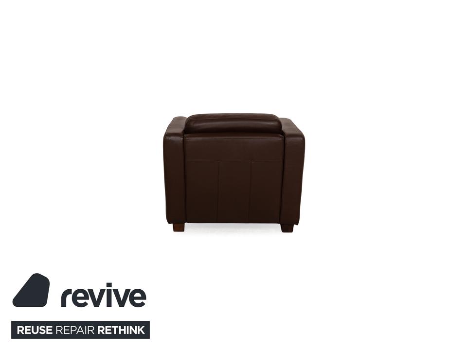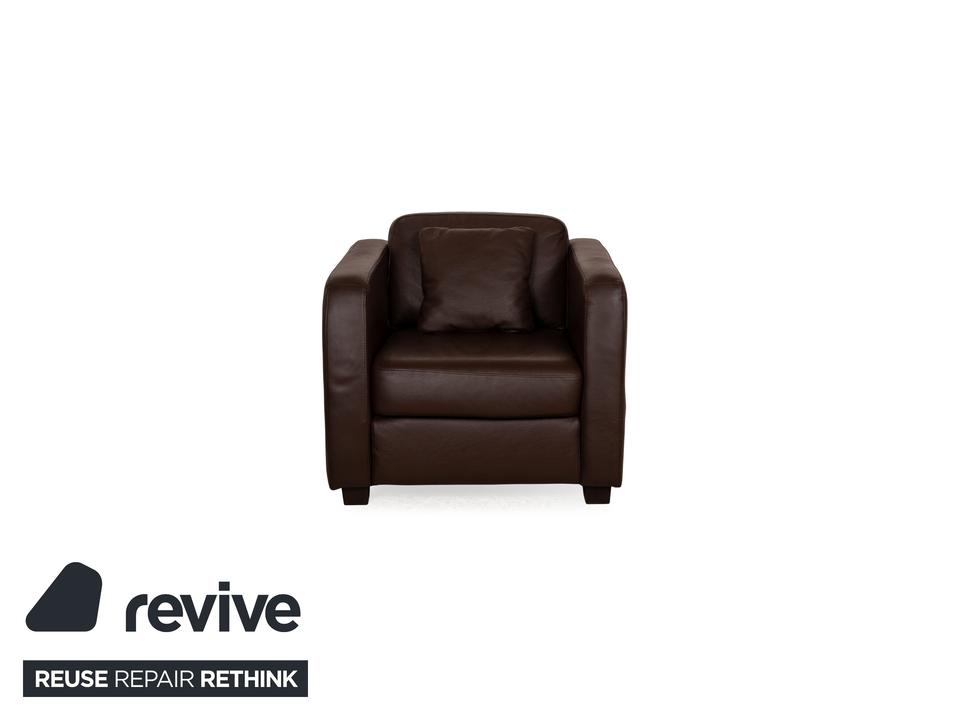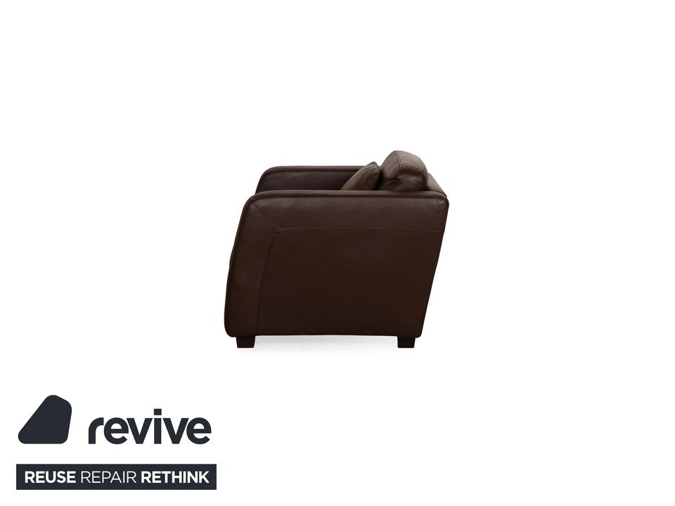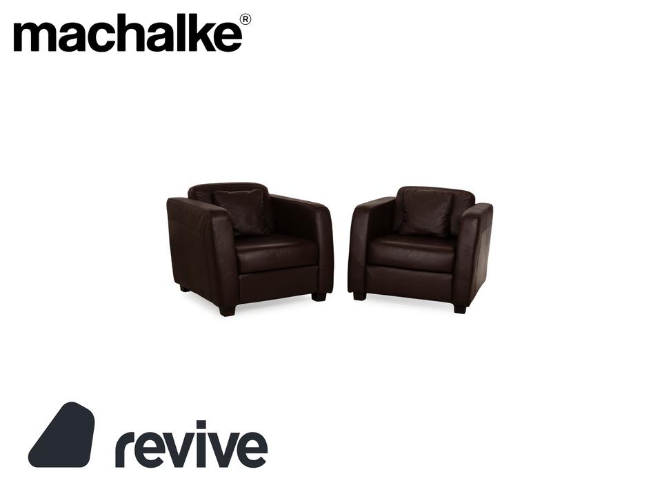 Die Sessel Garnitur von Machalke ist mit einem braunen Echtleder bezogen und steht auf eckigen Füßen. Das klassische, zeitlose Design zeichnet sie aus. Die Garnitur besteht aus zwei Sesseln.