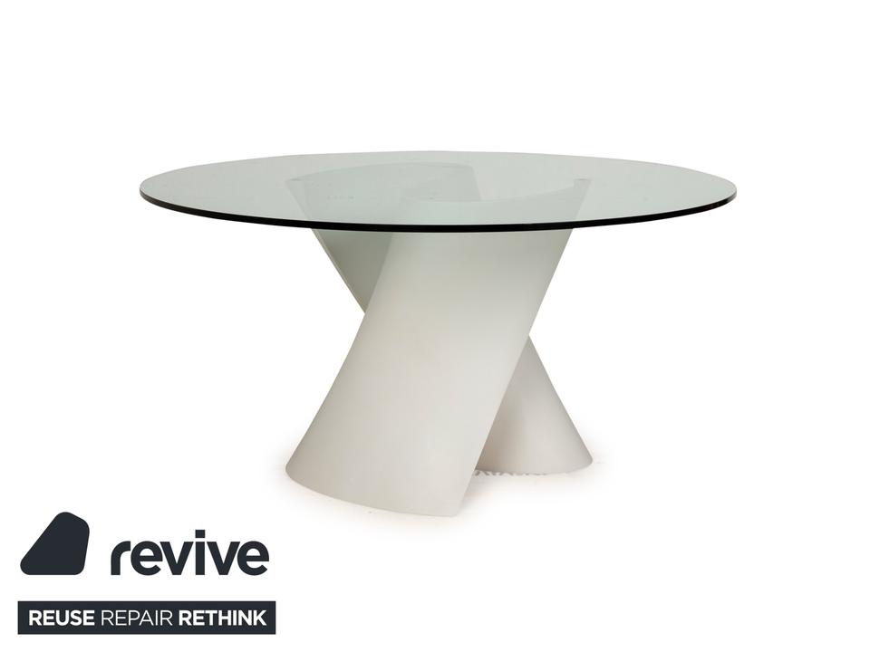Revive GmbH | Gebrauchte Designermöbel • Aufbereitet • Nachhaltig • Sofort Verfügbar Der Esstisch S-Tavle von MDF Italia ist ein wahres Designhighlight für das moderen Esszimmer. Die runde Tischplatte aus minimal grün gefärbtem Glas liegt auf ein…