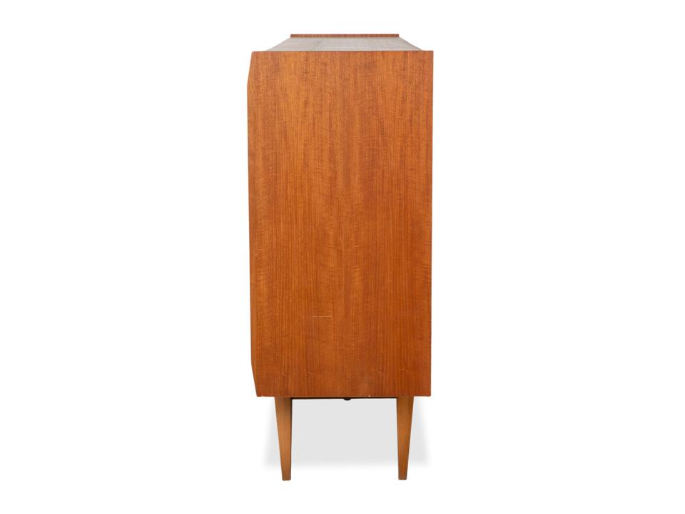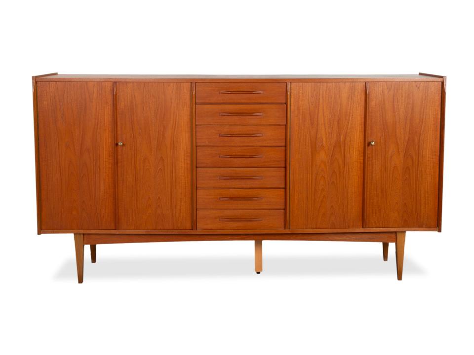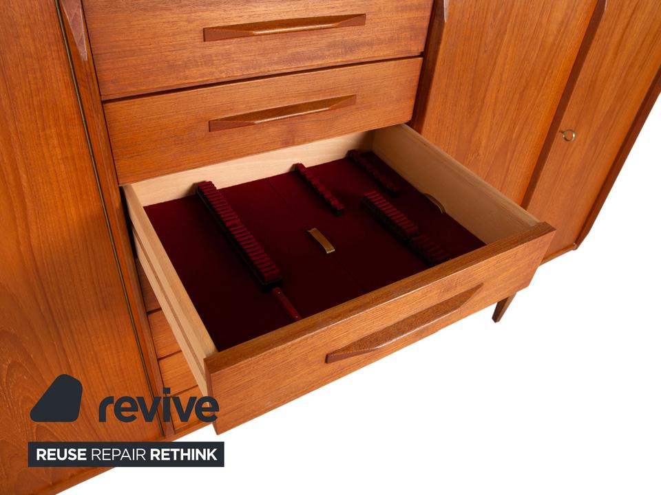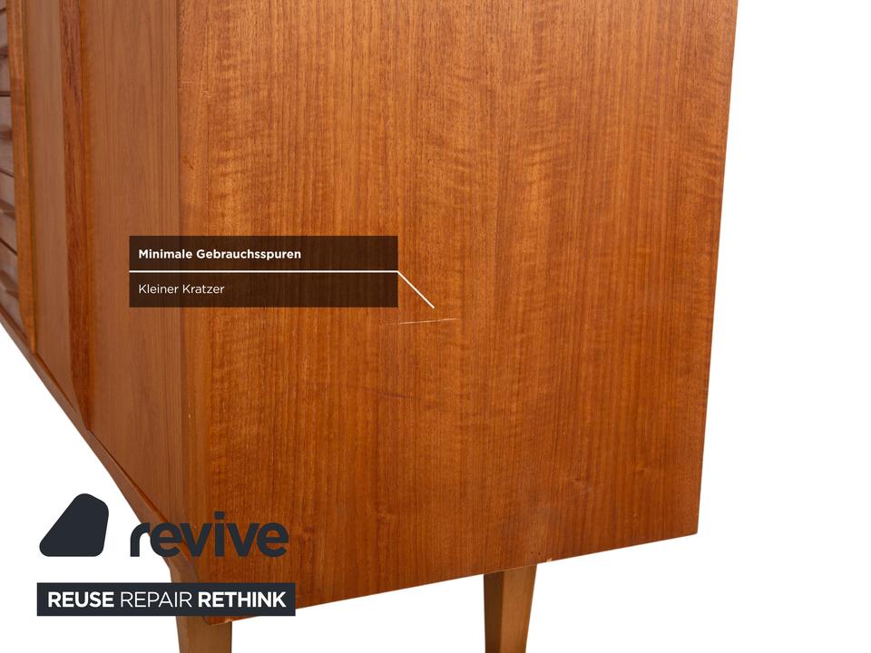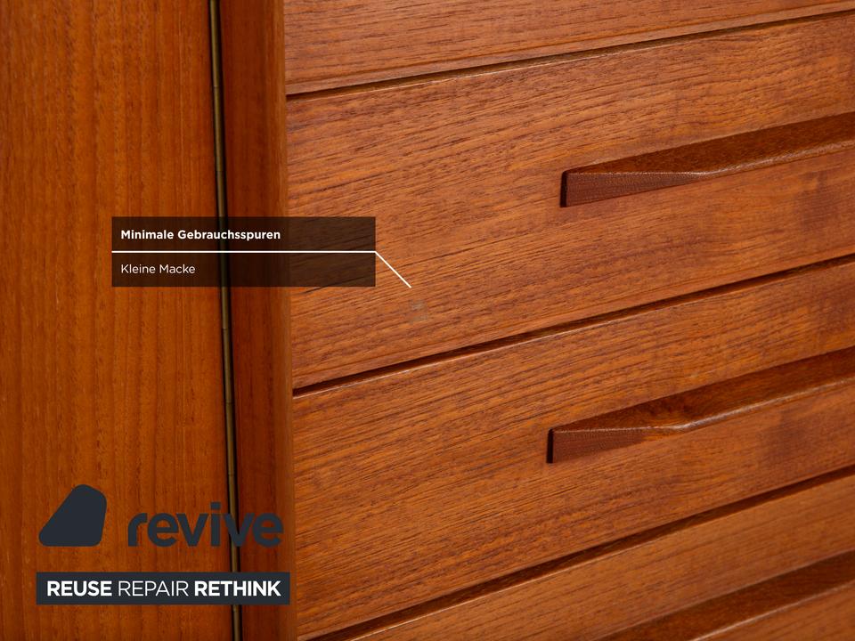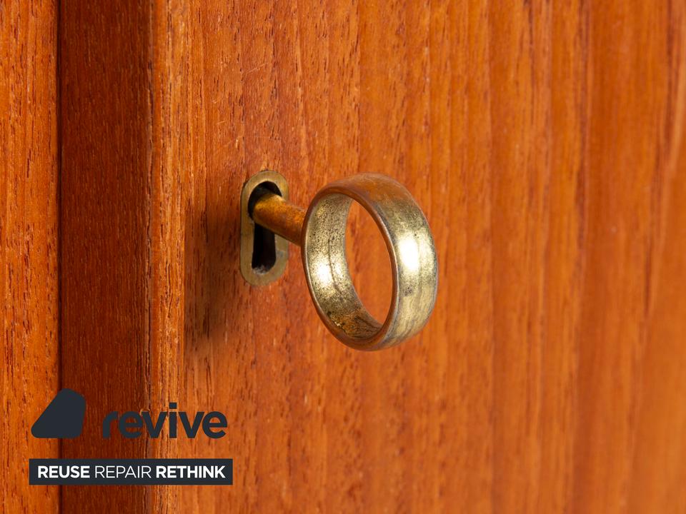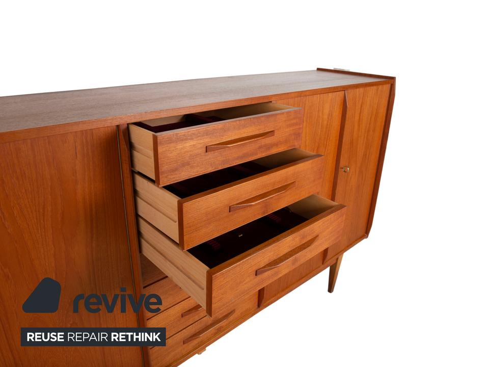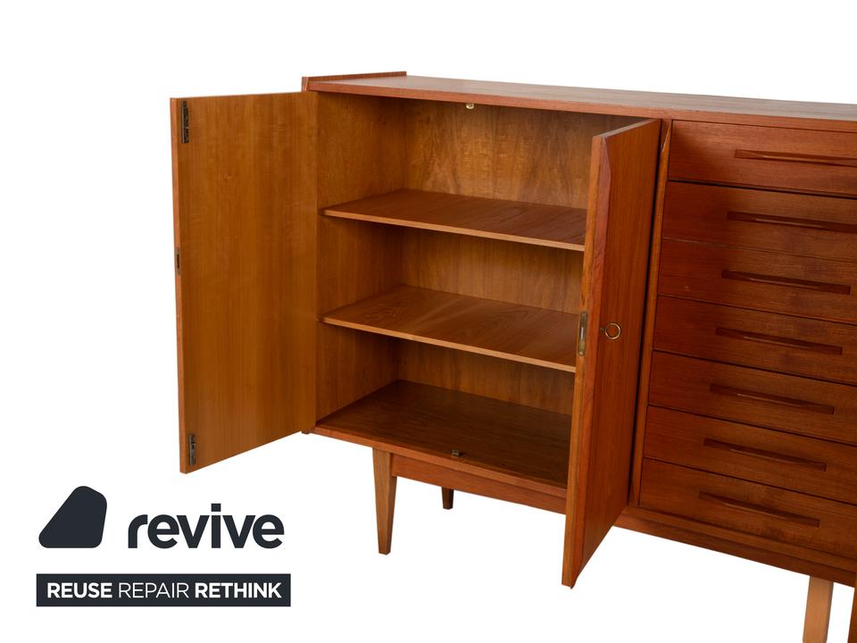 Hier bekommst du ein echtes Schmuckstück aus der Midcentury-Ära, das den zeitlosen Charme der 60er Jahre direkt in dein Zuhause bringt. Dieses Highboard von VKW Möbel besticht durch seine warme Teakholz-Optik und die klare, funktionale Linienführung, die typisch für das skandinavisch inspirierte Design dieser Epoche ist. Es ist genau das richtige Möbel für dich, wenn du Stauraum suchst, der nicht wuchtig wirkt, sondern durch seine schlanken Beine und die vertikale Ausrichtung eine gewisse Leichtigkeit behält.Besonders hervorzuheben ist die handwerkliche Qualität: Die wunderschöne Maserung des braunen Holzes zieht sich harmonisch über die gesamte Front und macht das Sideboard zu einem warmen Blickfang im Raum. Mit seinen verschiedenen Fächern und Schubladen bietet es dir zudem jede Menge Platz, um Geschirr, Bücher oder andere Schätze stilvoll zu verstauen. Ein echtes Charakterstück für Liebhaber des Vintage-Stils, das durch seine schlichte Eleganz beweist, dass gutes Design niemals aus der Mode kommt.