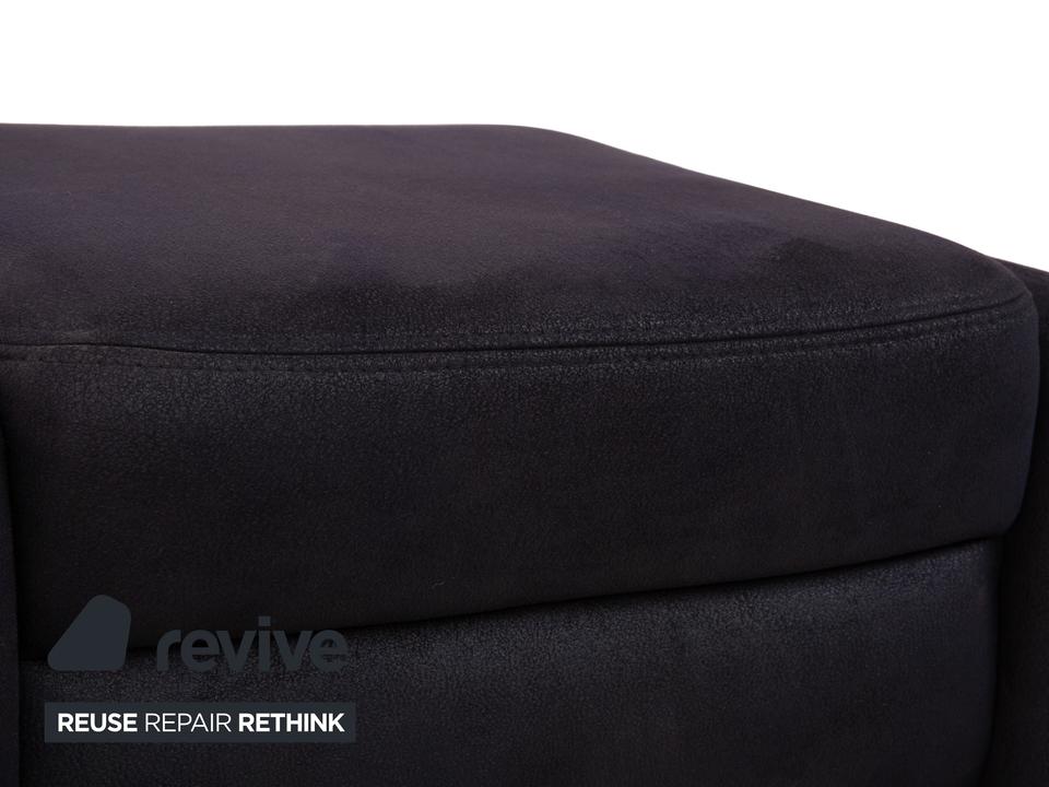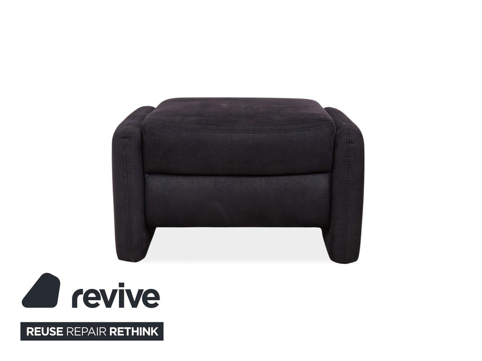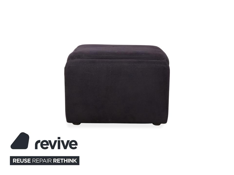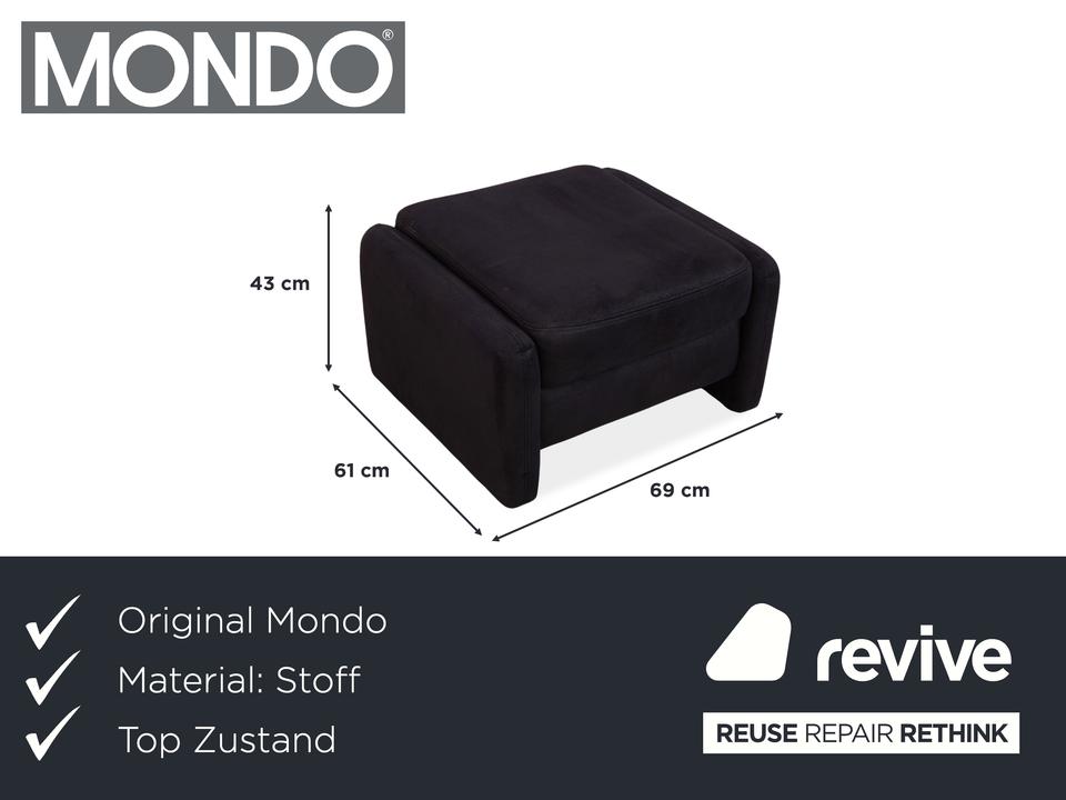 Der Recita Hocker von Mondo ist mit einem dunkelblauen Stoff bezogen und steht auf bodentiefen Seitenteilen. Das minimalistische Design zeichnet ihn aus.