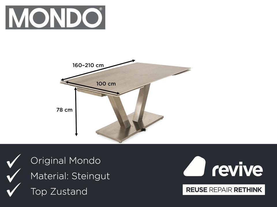 Der Mondo-Esstisch überzeugt aufgrund seiner unempfindlichen Steingut-Oberfläche mit Holzoptik als Hingucker im Esszimmer. Durch die ausziehbaren Seiten bietet er viel Platz. Mithilfe des Steckdosenanschlusses eignet er sich zudem optimal für den Anschluss von Küchengeräten oder zum Arbeiten.