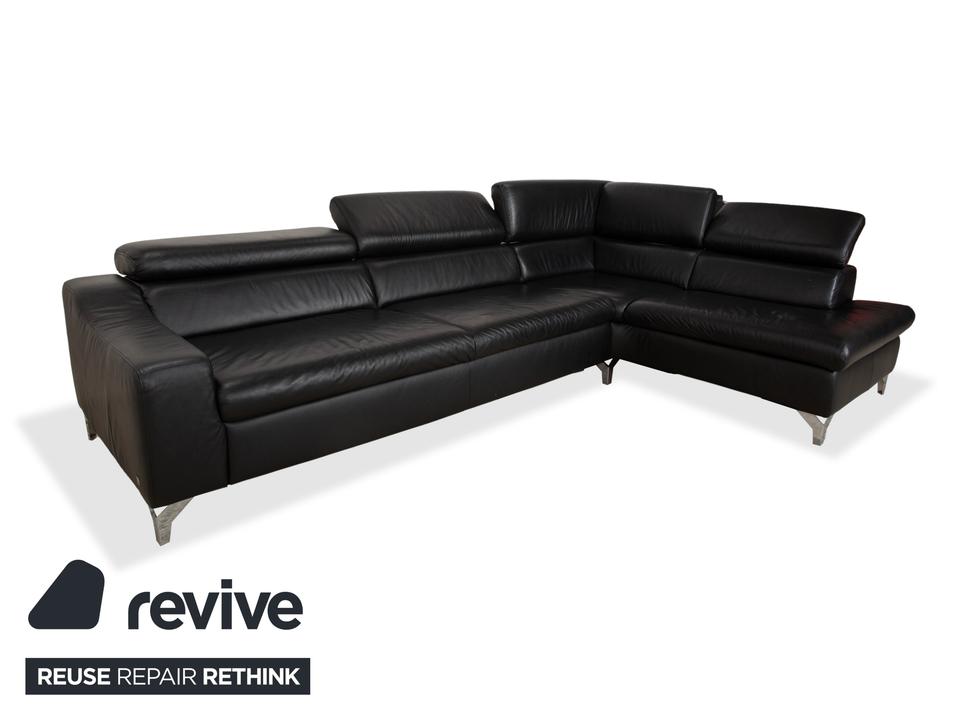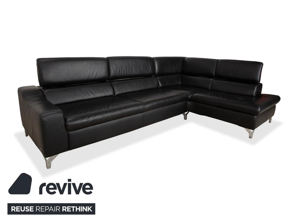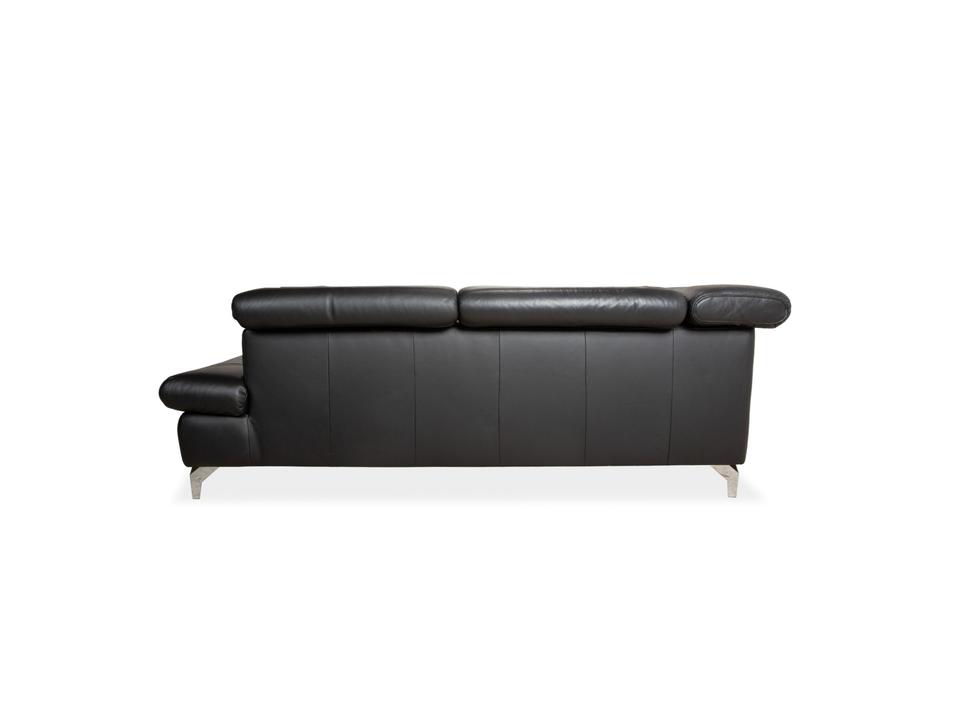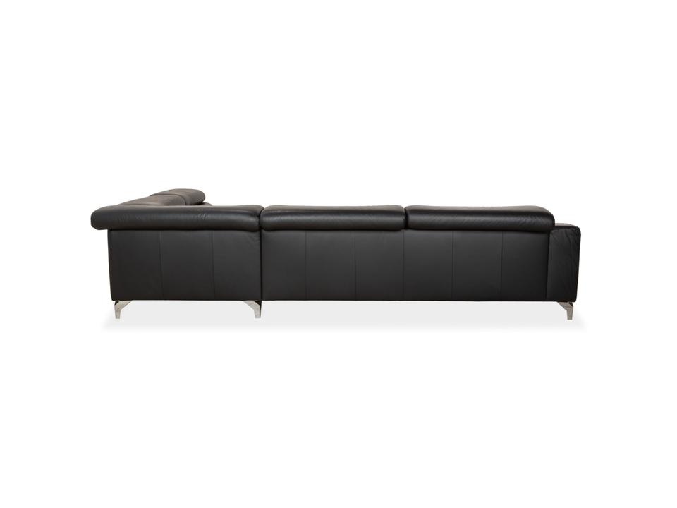 Das Musterring MR 4775 ist ein Ecksofa für alle, die klare Formen und echten Komfort schätzen. Der schwarze Echtlederbezug wirkt modern und zeitlos, während die verstellbaren Kopfstützen für individuellen Sitzkomfort sorgen. Solide verarbeitet mit stabilem Metallfüßen in Chromoptik und hochwertiger Polsterung bietet das Sofa eine langlebige Basis für den Alltag – ob zum Entspannen, Lesen oder Zusammensitzen.
