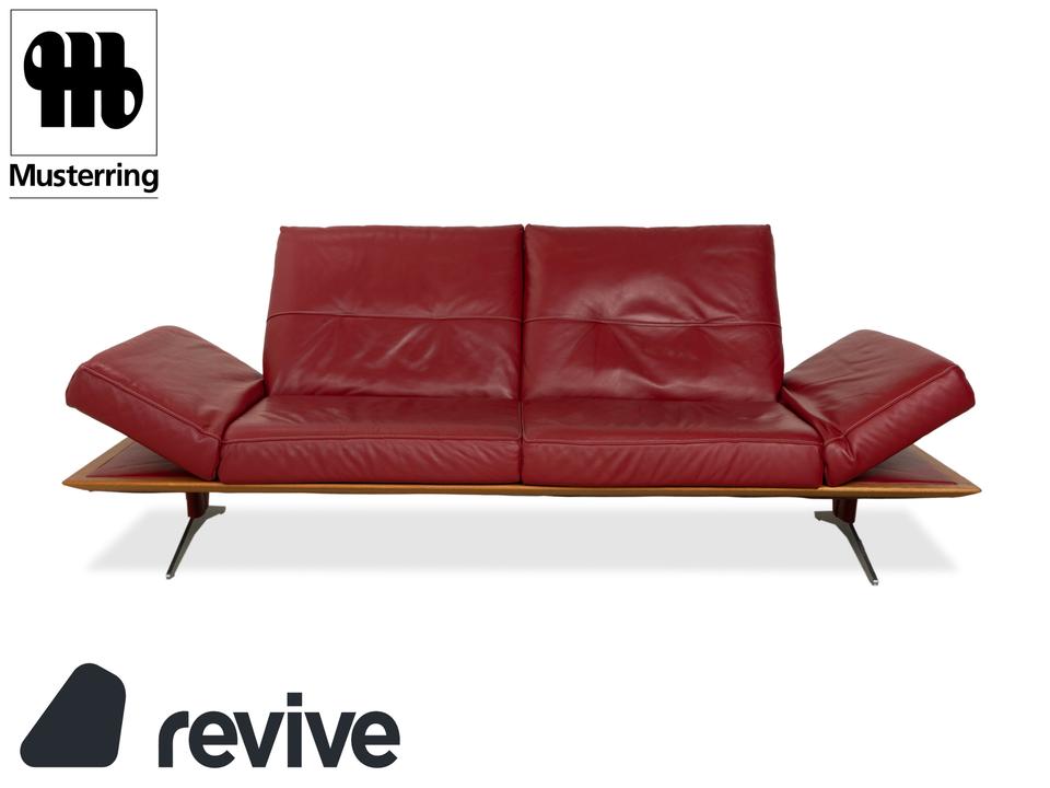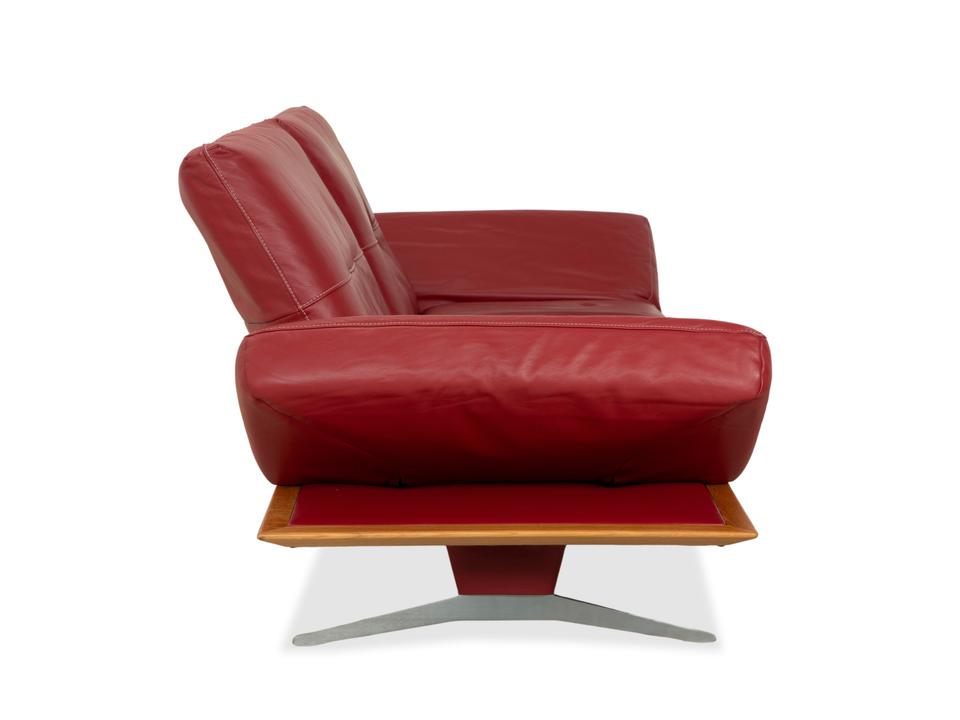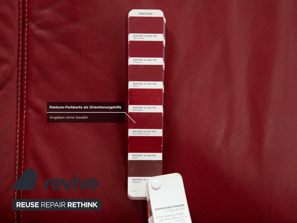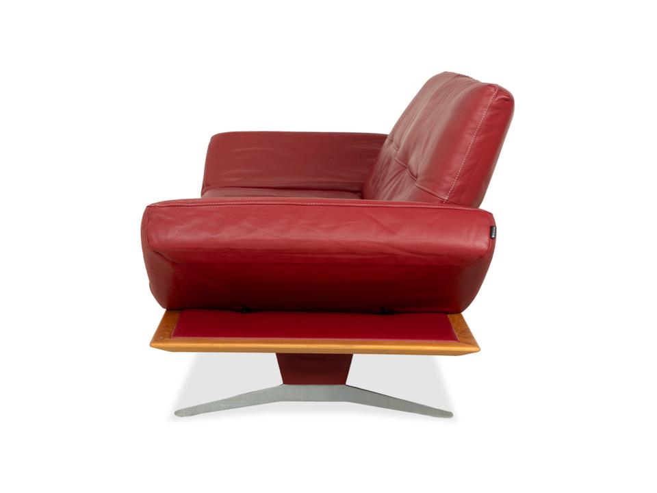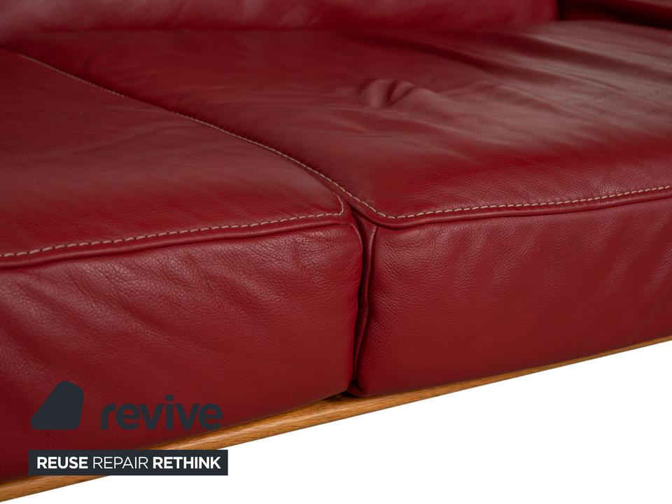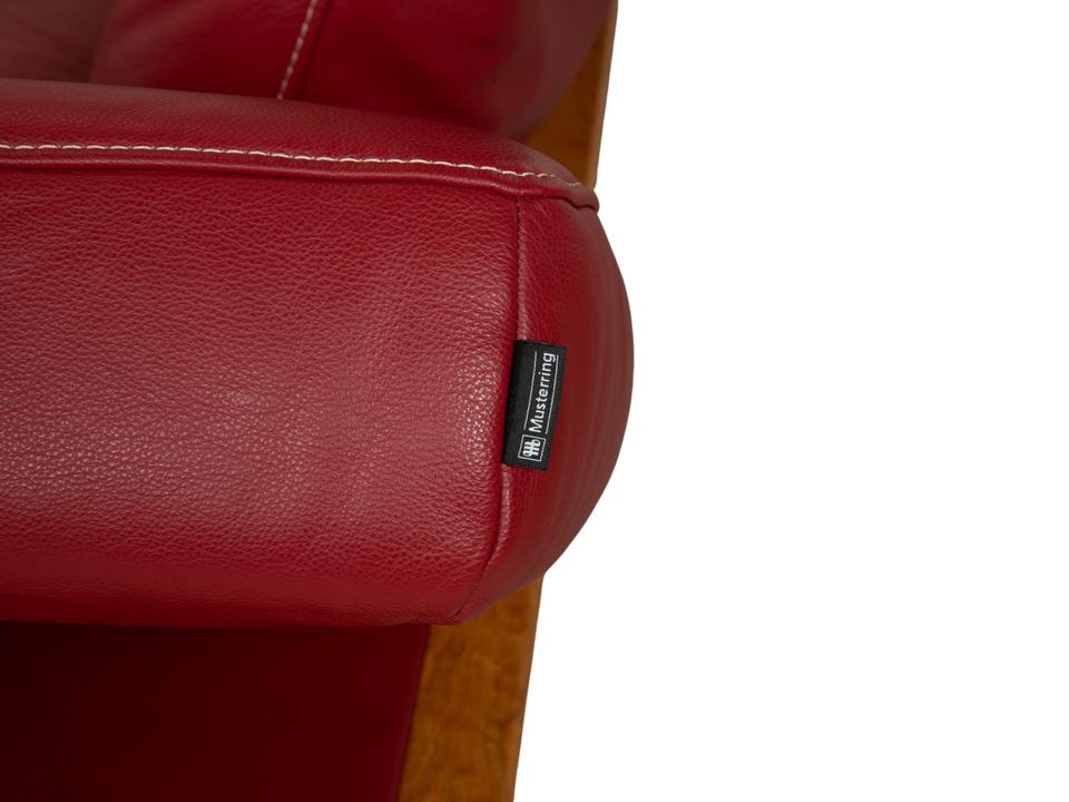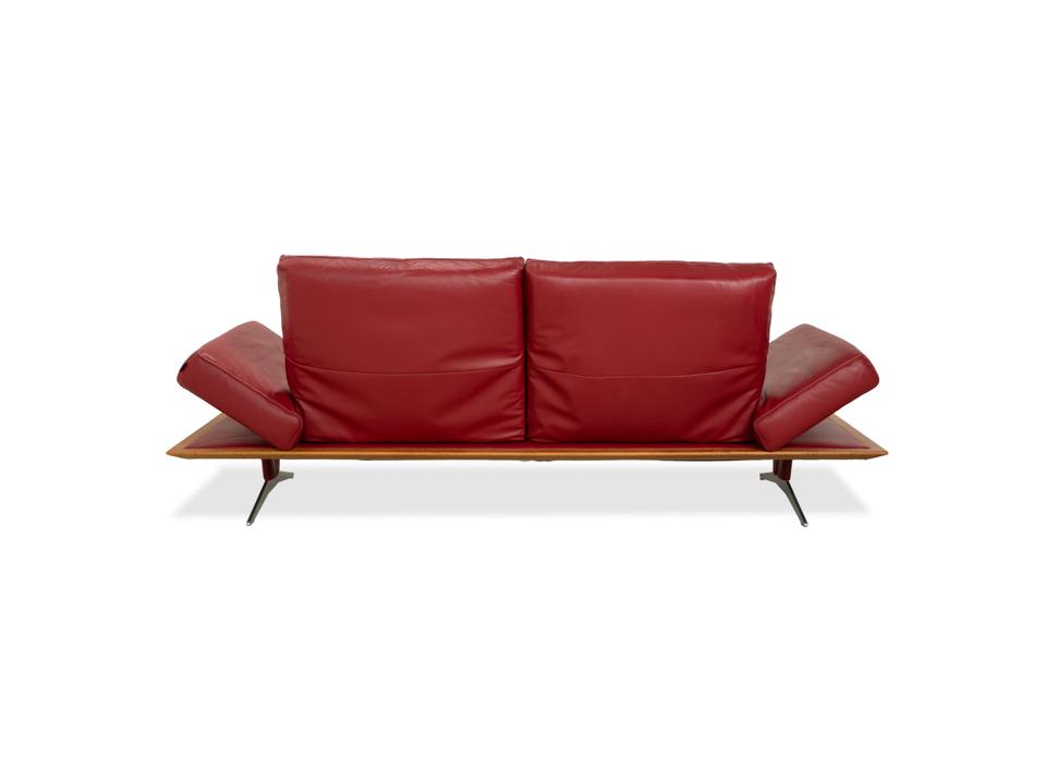 Mit dem Modell MR 495 zeigt Musterring, wie modernes Design und durchdachte Funktionalität Hand in Hand gehen. Dieser kompakte Zweisitzer zieht mit seinem tiefroten Lederbezug sofort die Blicke auf sich und setzt einen warmen, lebendigen Akzent in deinem Wohnzimmer. Der Look ist modern und fast ein bisschen futuristisch: Der Korpus wirkt flach und dynamisch, getragen von einem schlanken Kufengestell, das dem Sofa eine schöne Leichtigkeit verleiht.Aber der wahre Clou ist die Flexibilität: Die Armlehnen lassen sich stufenlos verstellen. Du kannst sie hochklappen, um dich gemütlich anzulehnen, oder ganz flach stellen, um die Sitzfläche optisch zu verbreitern und dich langzumachen. Auch die Rückenlehnen bieten oft eine verstellbare Funktion, sodass du deine ideale Relaxposition findest. Die Kombination aus hochwertigem Leder und dem markanten Holzgestell an der Basis macht dieses Sofa zu einem echten Schmuckstück für alle, die Design mit Mehrwert suchen.
