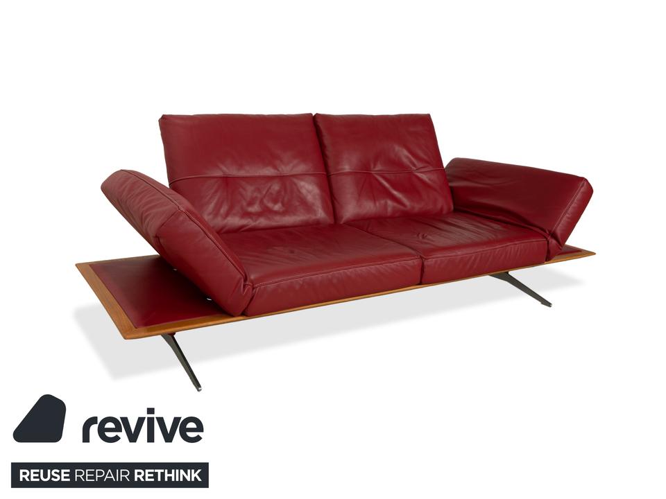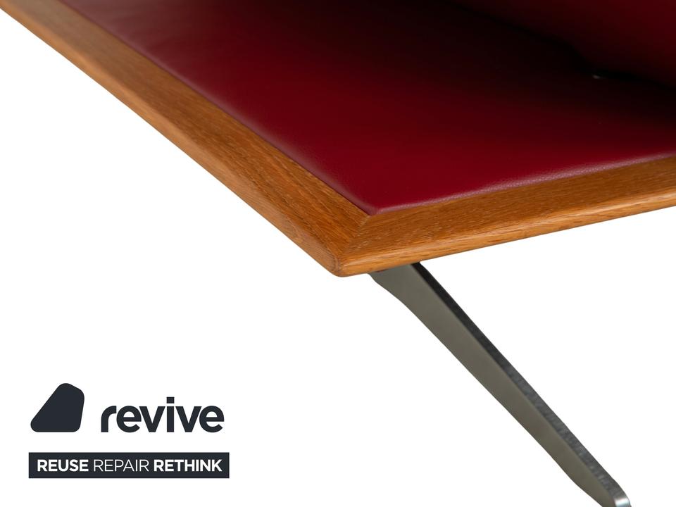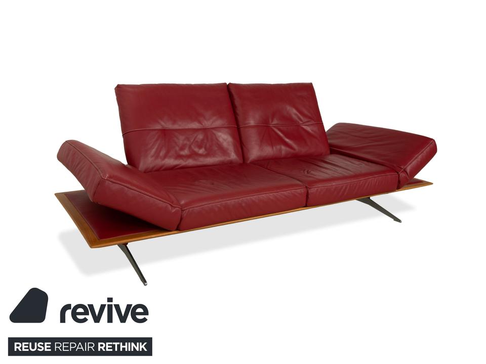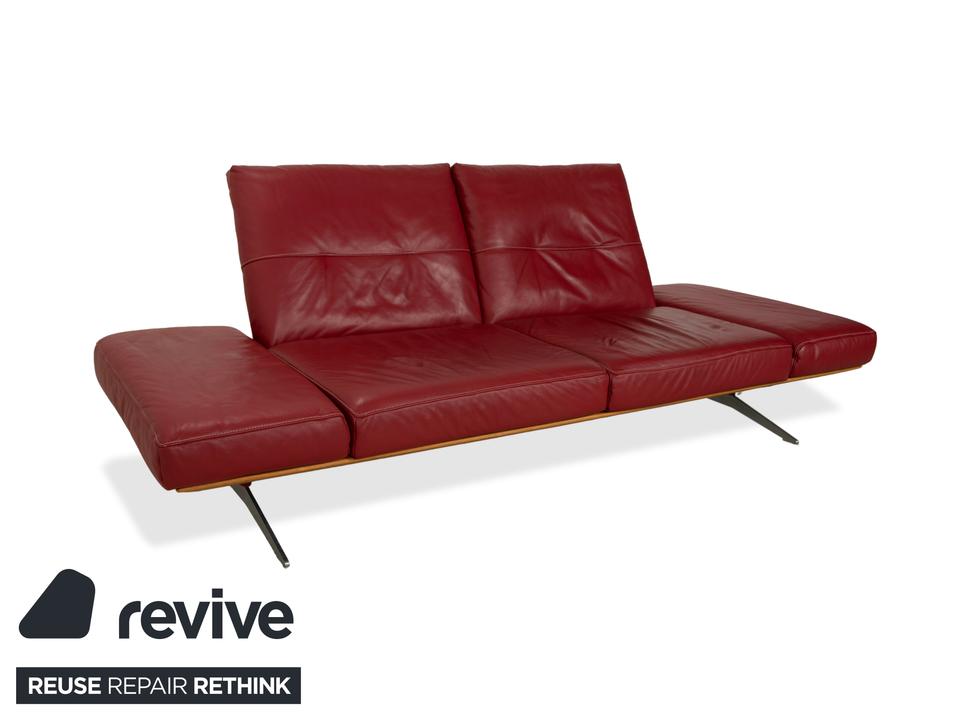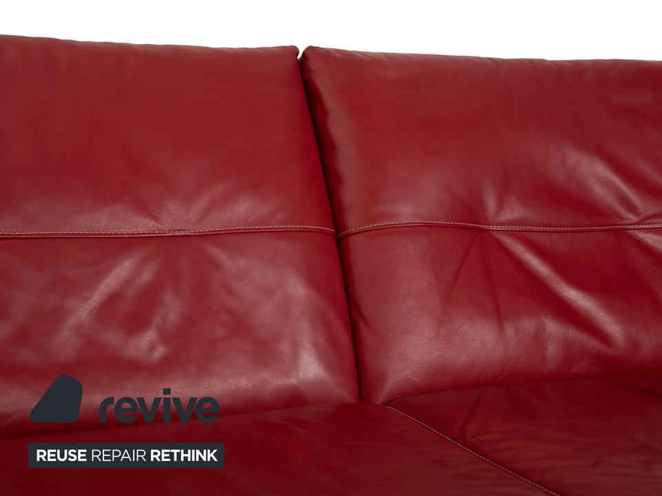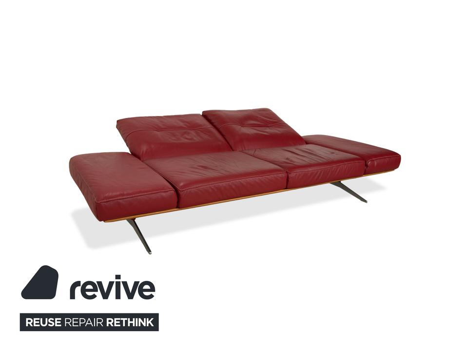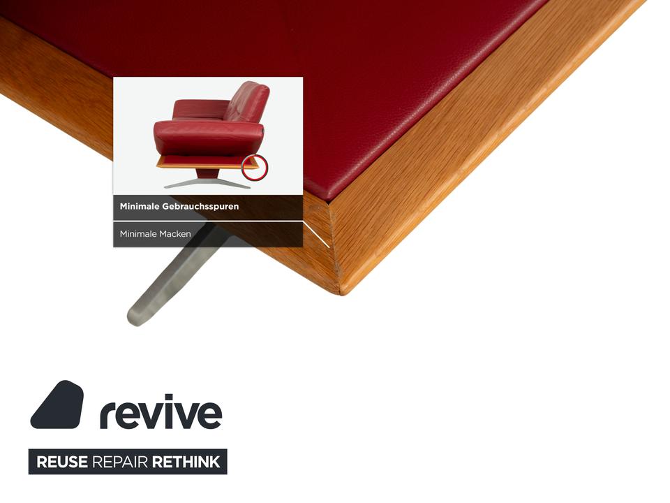 Mit dem Modell MR 495 zeigt Musterring, wie modernes Design und durchdachte Funktionalität Hand in Hand gehen. Dieser kompakte Zweisitzer zieht mit seinem tiefroten Lederbezug sofort die Blicke auf sich und setzt einen warmen, lebendigen Akzent in deinem Wohnzimmer. Der Look ist modern und fast ein bisschen futuristisch: Der Korpus wirkt flach und dynamisch, getragen von einem schlanken Kufengestell, das dem Sofa eine schöne Leichtigkeit verleiht.Aber der wahre Clou ist die Flexibilität: Die Armlehnen lassen sich stufenlos verstellen. Du kannst sie hochklappen, um dich gemütlich anzulehnen, oder ganz flach stellen, um die Sitzfläche optisch zu verbreitern und dich langzumachen. Auch die Rückenlehnen bieten oft eine verstellbare Funktion, sodass du deine ideale Relaxposition findest. Die Kombination aus hochwertigem Leder und dem markanten Holzgestell an der Basis macht dieses Sofa zu einem echten Schmuckstück für alle, die Design mit Mehrwert suchen.