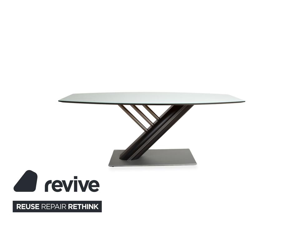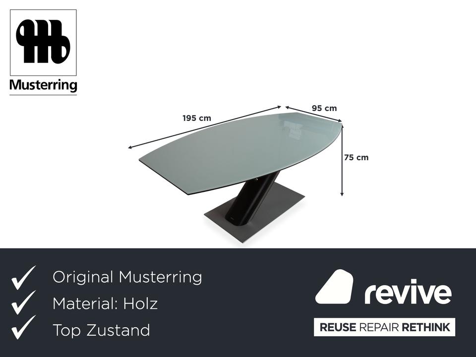 Dieser Musterring Rosario Esstisch ist ein echter Glücksgriff für dein Esszimmer, wenn du auf der Suche nach einem modernen Mittelpunkt mit einer markanten Linienführung bist. Das Design besticht durch das skulpturale Untergestell in Z-Form, das dem gesamten Tisch eine sehr moderne Optik verleiht. In dieser hellen Ausführung wirkt der Tisch trotz seiner stabilen Bauweise wunderbar leicht und bringt ein frisches, aufgeräumtes Feeling direkt an deinen Essplatz.Was wir an diesem Entwurf von Musterring besonders lieben, ist die Kombination aus der hellen Glasoberfläche und den metallischen Akzenten am Holzfuß. Die Bootsform der Tischplatte sorgt zudem für eine sehr gesellige Atmosphäre, da man sich in einer großen Runde einfach besser anschauen kann. Es ist eben ein zeitloses Herzstück, das Designanspruch und absolute Alltagstauglichkeit mühelos miteinander verbindet