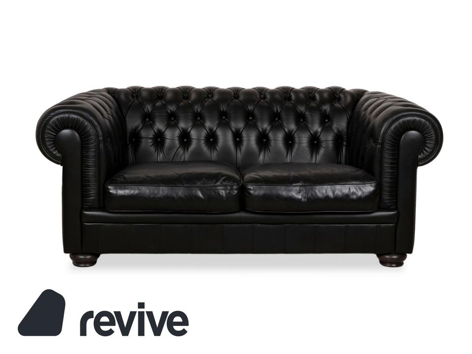 Natuzzi King Leder Zweisitzer Schwarz Chesterfield