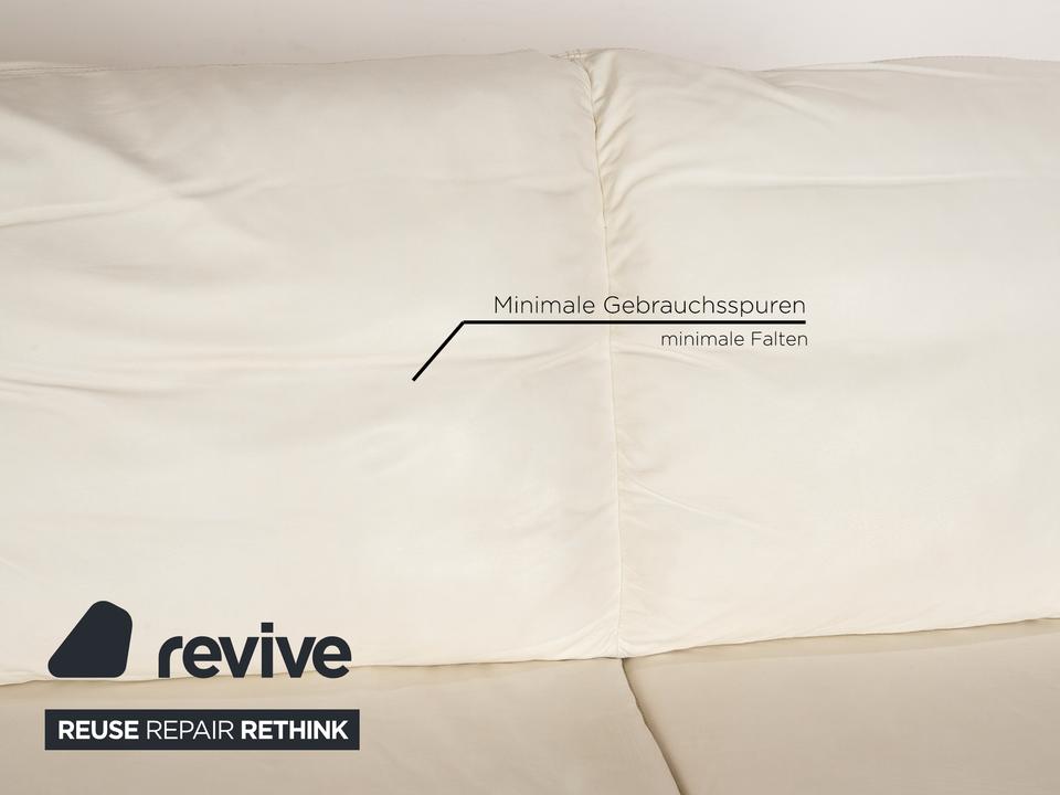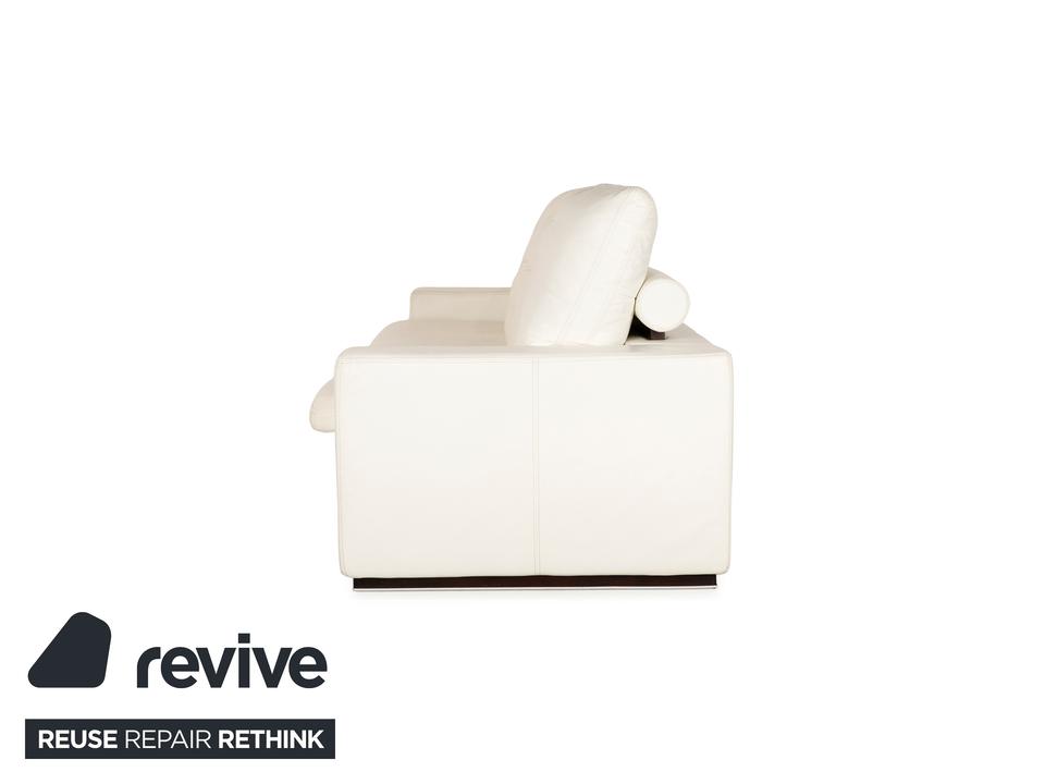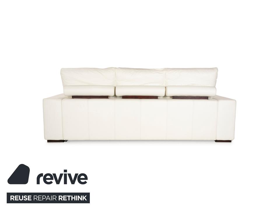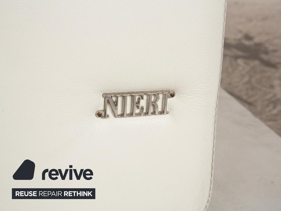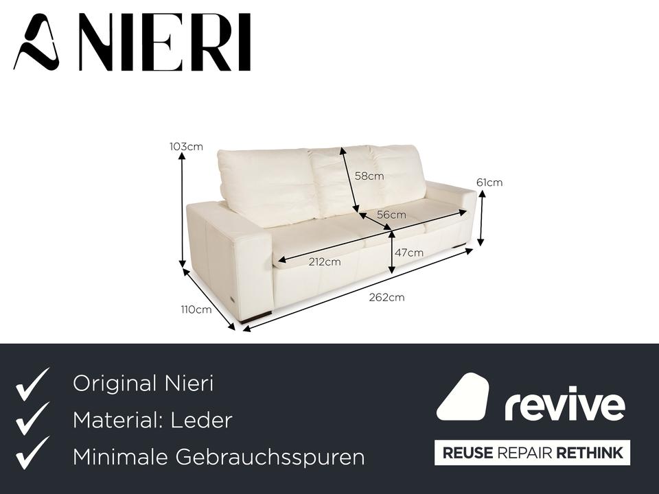 Das Nieri Sofa ist mit einem cremefarbenen Echtleder bezogen und steht auf unauffälligen Füßen. Das zeitlose Design und die gradlinige Optik zeichnen den Dreisitzer aus.