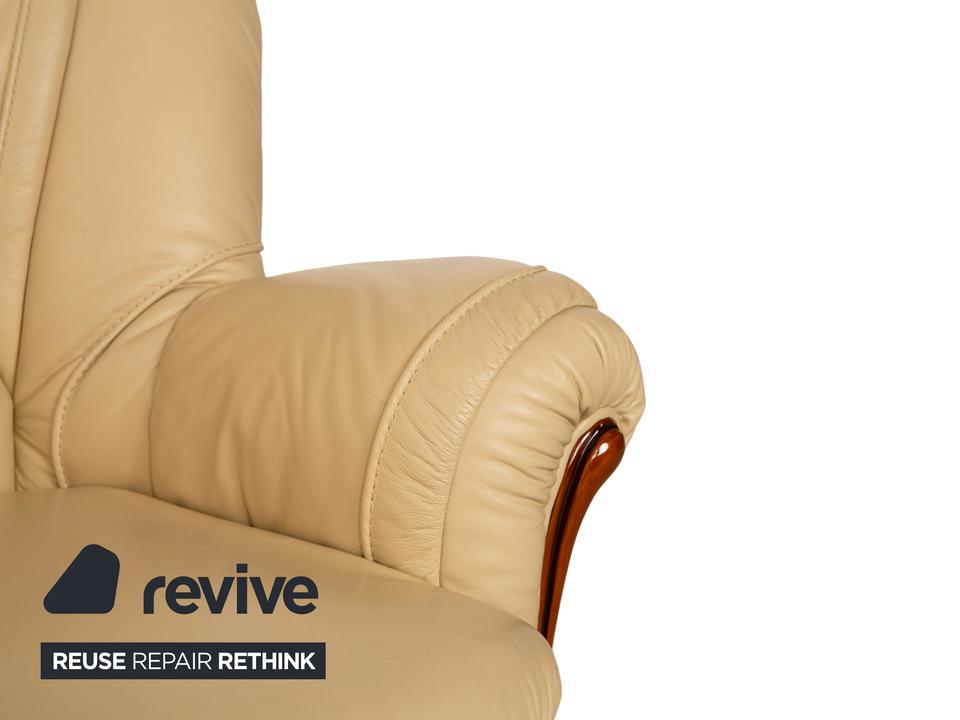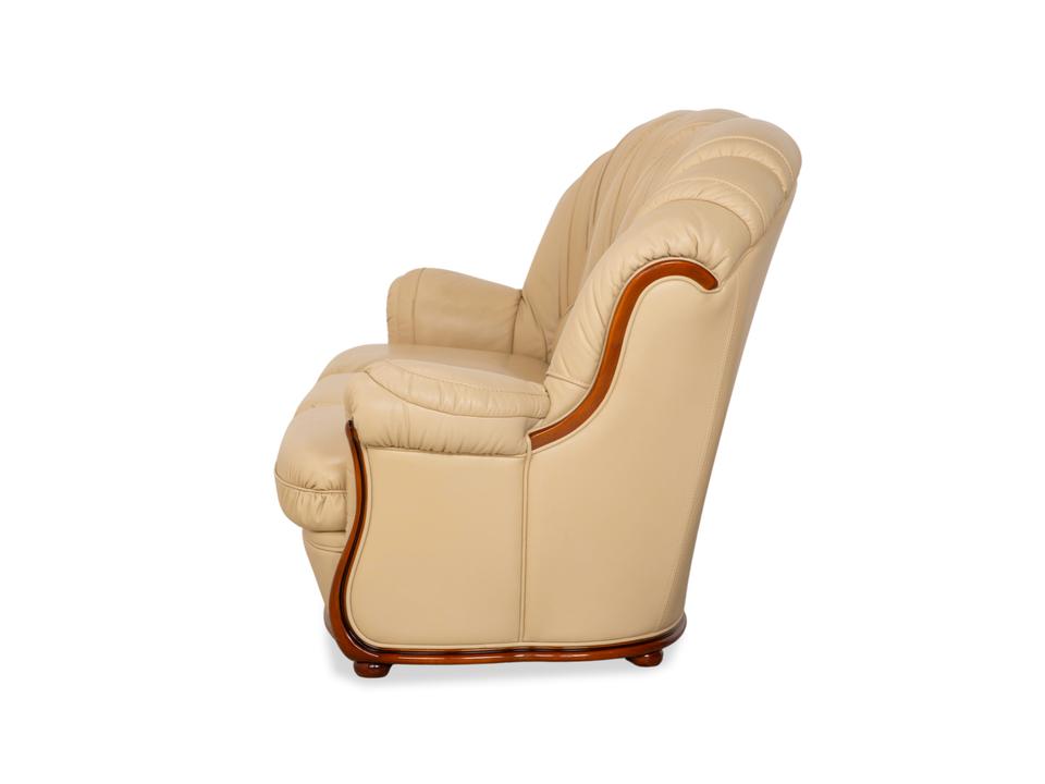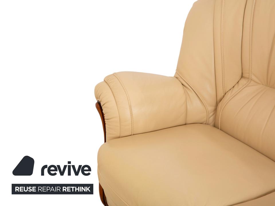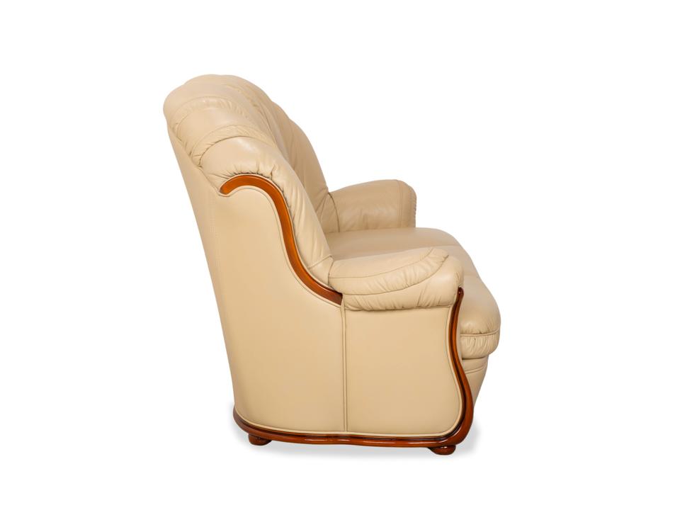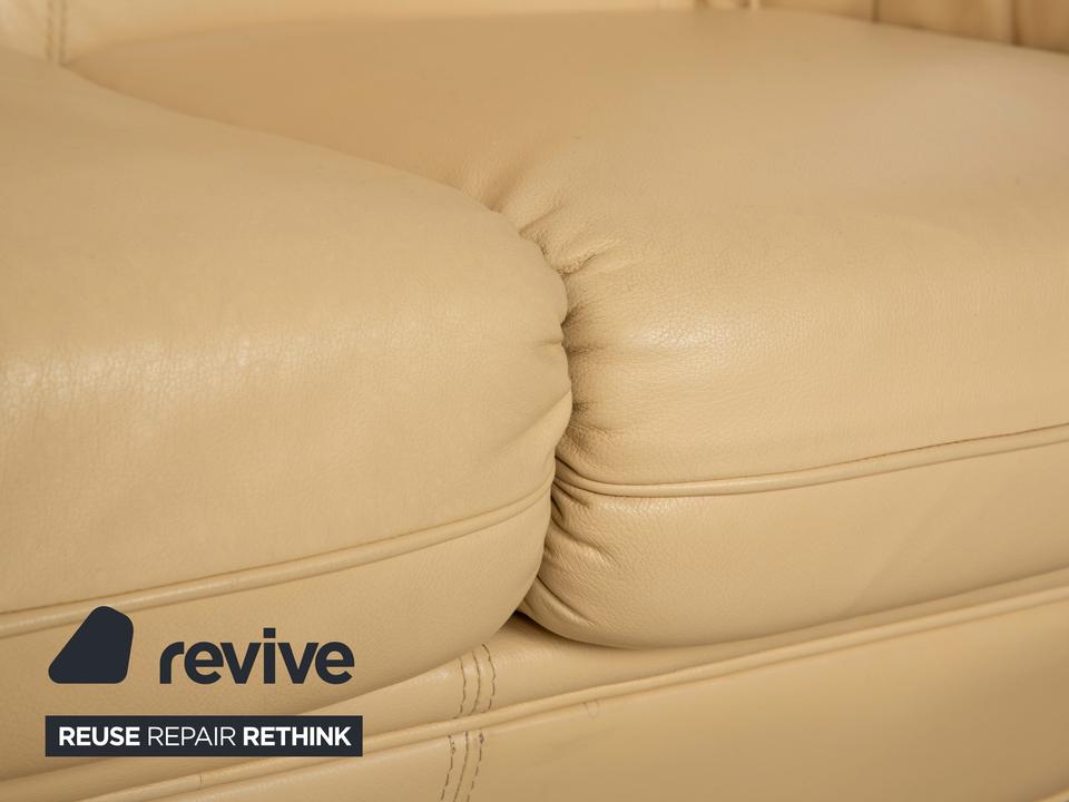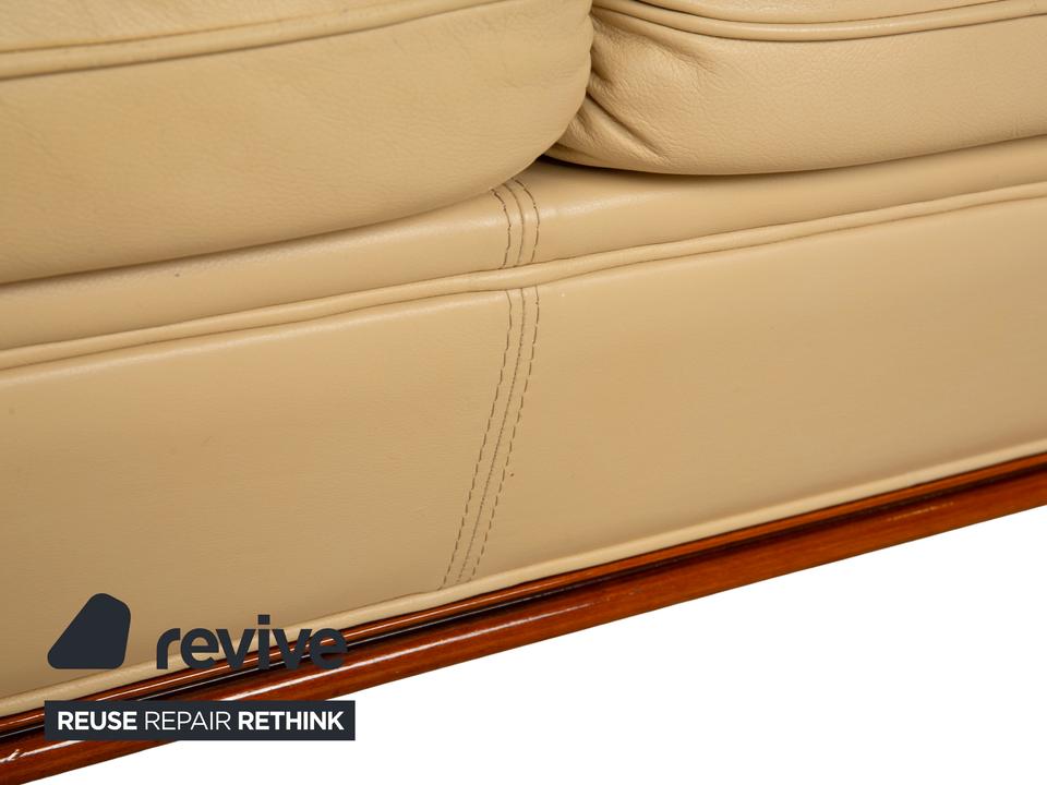 Mit diesem Dreisitzer der italienischen Manufaktur Nieri holst du dir ein Stück klassische Handwerkskunst ins Wohnzimmer. Das Sofa besticht durch seine geschwungenen, fast schon organischen Formen – hier ist nichts eckig oder hart. Besonders markant ist die sichtbare Holzleiste am unteren Rand, die dem cremefarbenen Leder einen edlen Rahmen gibt und wunderbar mit den geschwungenen Armlehnen harmoniert.Der Sitzkomfort ist typisch für Nieri: Du sitzt hier nicht auf einer weichen „Wolke“, sondern hast eine feste, ergonomisch geformte Polsterung, die dich gut stützt. Durch die hohe Rückenlehne mit der ausgeformten Nackenpartie kannst du dich entspannt zurücklehnen und hast auch bei längeren Gesprächen oder Fernsehabenden immer eine gute Haltung. Ein Sofa mit Charakter, das Wärme und eine gewisse mediterrane Eleganz ausstrahlt.