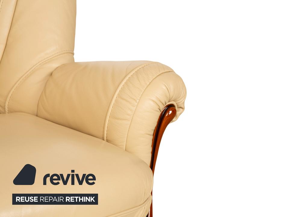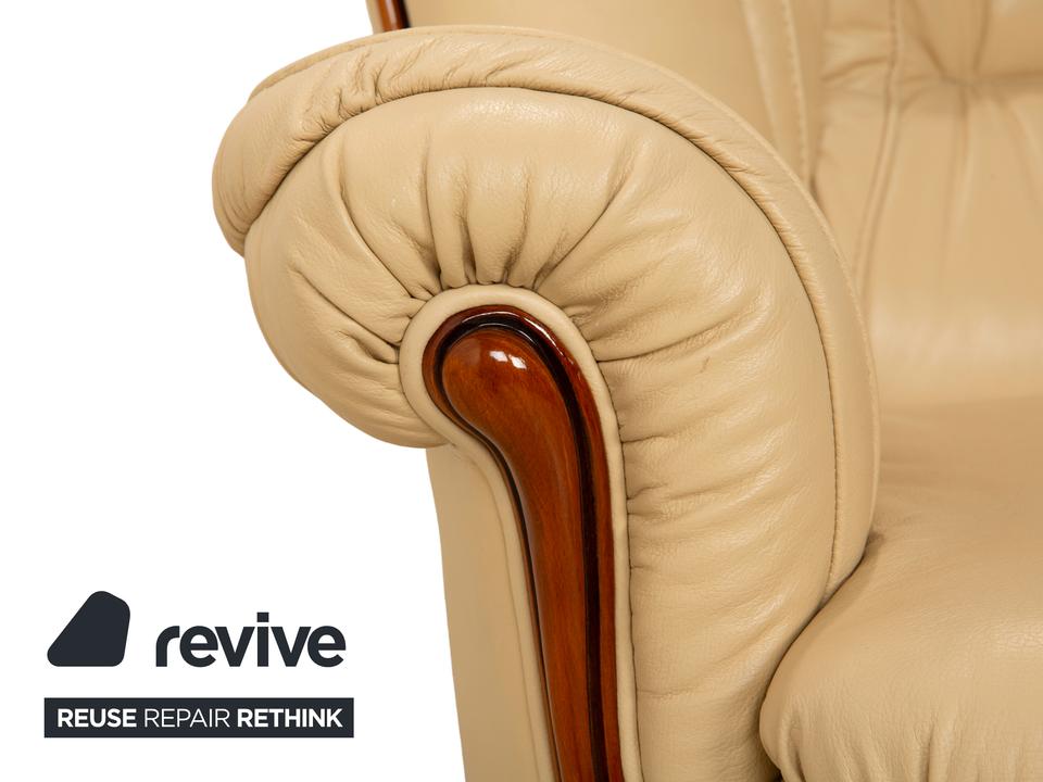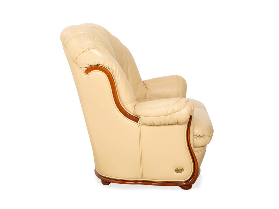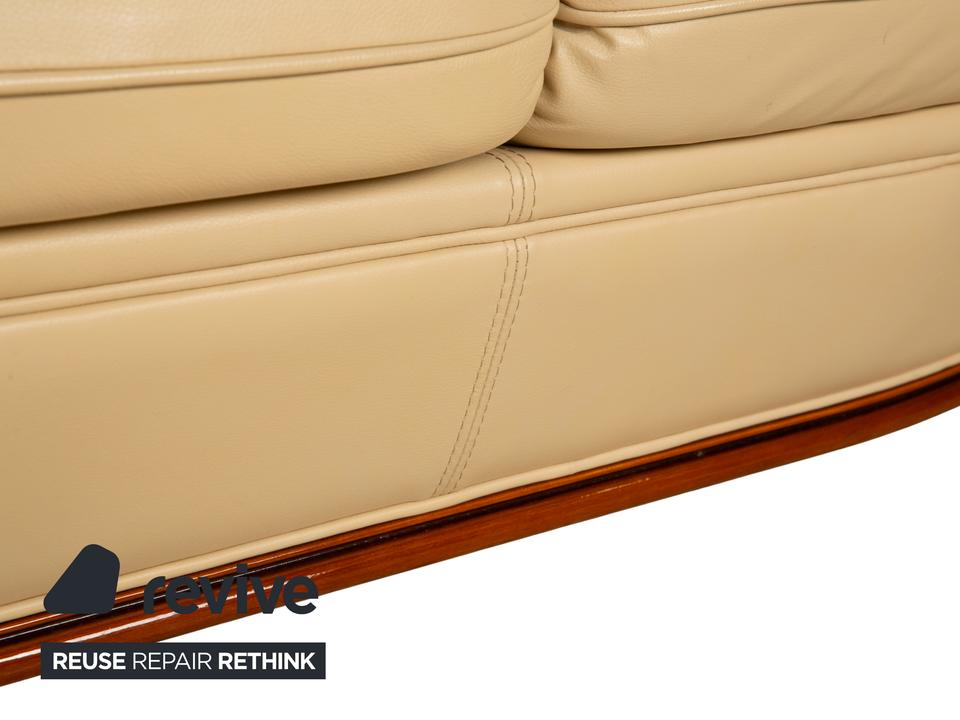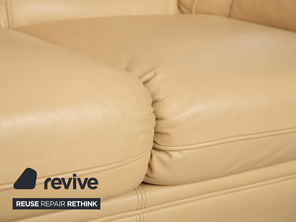 Dieser Zweisitzer ist die kompakte Antwort auf den großen Bruder und bringt den charmanten, italienischen Nieri-Stil auch in kleinere Stellflächen. Auch hier dominiert das hochwertige, cremefarbene Leder, das den Raum sofort heller und freundlicher wirken lässt. Die typischen Designmerkmale – wie die sanft geschwungenen Armlehnen und das edle Holzgestell an der Basis – machen den Sessel zu einem echten Blickfang.Da es sich um einen Zweisitzer handelt, wirkt das Modell etwas knuffiger und einladender. Es ist der perfekte Platz für vertrauliche Gespräche oder um es sich alleine mit viel Platz gemütlich zu machen. Die Polsterung ist formstabil und bietet dir dank der hohen Lehne genau die Unterstützung im Rücken, die man bei modernen Low-Profile-Sofas oft vermisst.