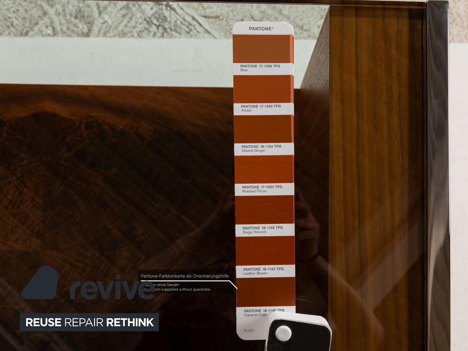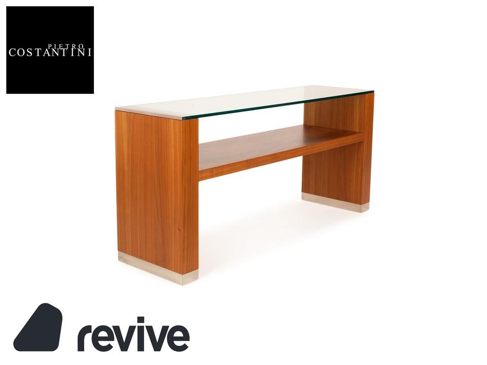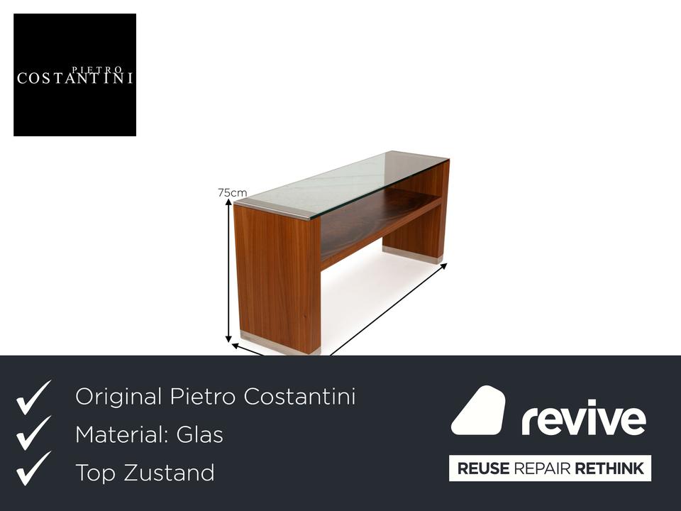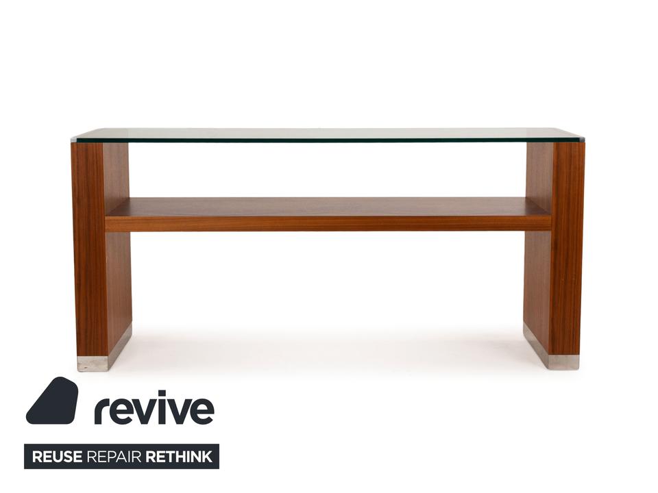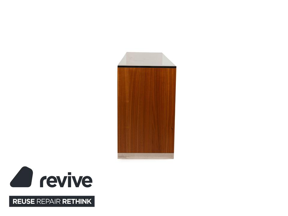 Das Constantini Sideboard von Petro besteht aus braunem Holz und einer rechteckigen Glasplatte.