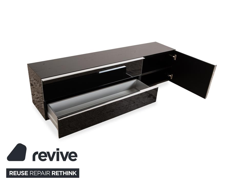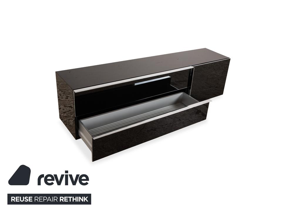 Das Sideboard Nex von Piure besteht aus einem schwarzen Korpus und steht aus silbernen Metallfüßen. Es zeichnet sich durch die elegante Optik und die komfortable Verstaumöglichkeiten aus.
