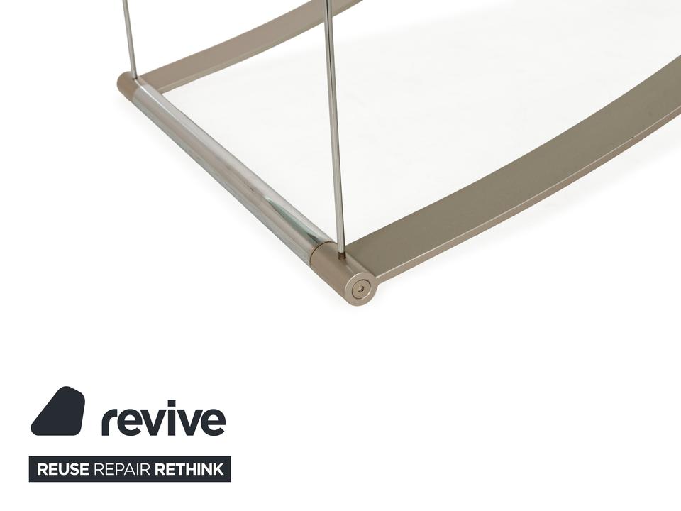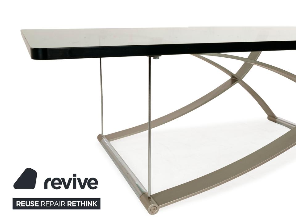 Der Glastisch 1150 von Rolf Benz überzeugt durch sein zeitloses Design. Die rechteckige Glasplatte mit minimal abgerundeten Ecken ist auf ein Metallgestell montiert, das sich durch seine extravagante Ausgestaltungen und schwunghafte Grundform auszeichnet. Eine stilvolle Ergänzung für das moderne Wohnzimmer.