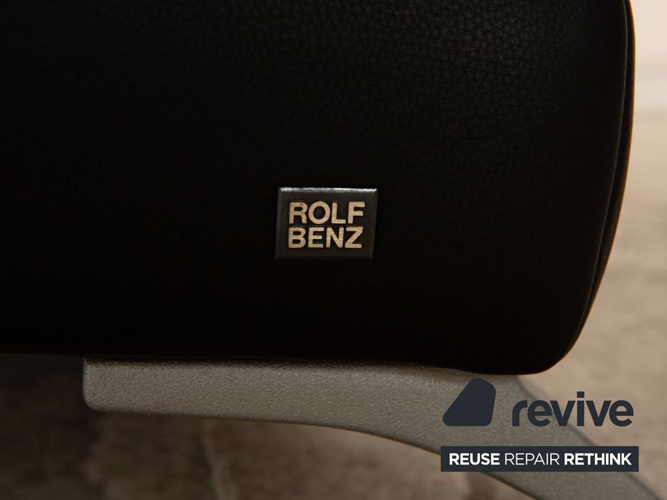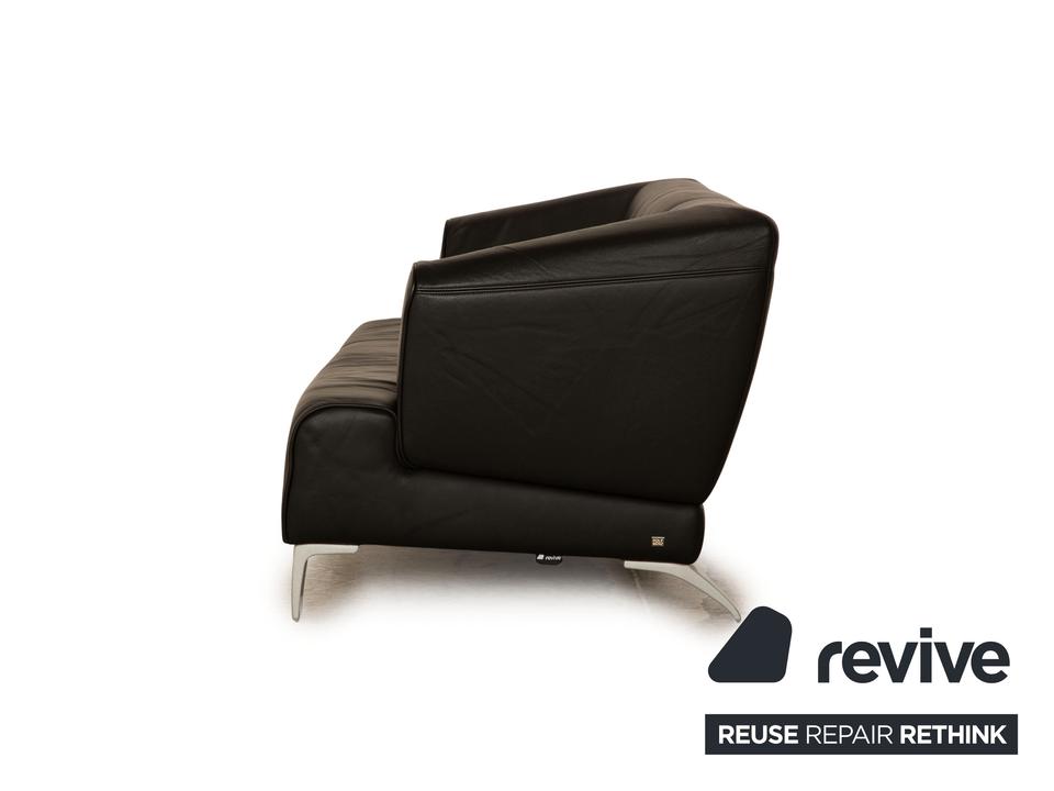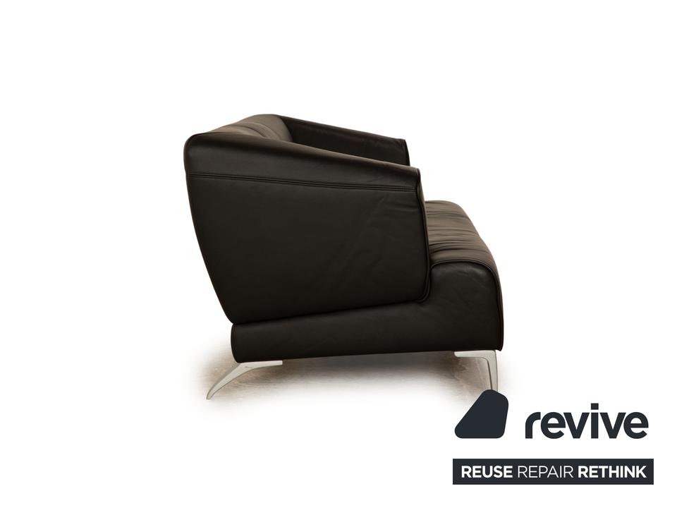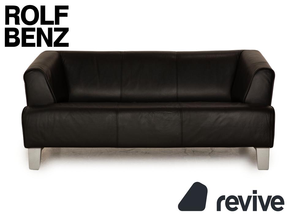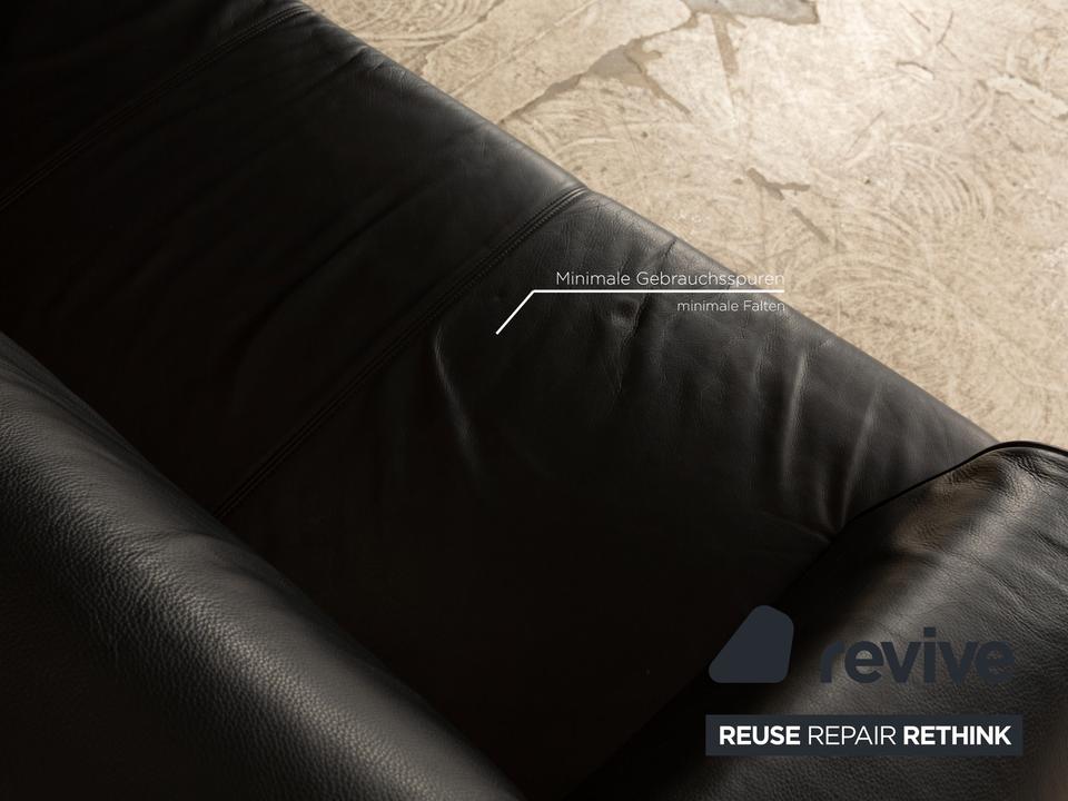 Das 2300 Sofa von Rolf Benz ist mit einem schwarzen Echtleder bezogen und steht auf Metallfüßen. Das schlichte, klassische Design zeichnet den Zweisitzer aus.