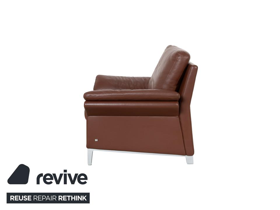 Dieser braune Rolf Benz 3300 Sessel bringt eine richtig schöne Wärme in deine vier Wände. Die satte Farbe des Leders wirkt extrem wohnlich und modern zugleich, wodurch das Möbelstück sofort zum gemütlichen Herzstück im Raum wird. Uns fasziniert besonders, wie das Design trotz der großzügigen Polsterung eine klare Linie behält und einfach modern aussieht.Das lose aufgelegte Rückenkissen sorgt für einen herrlich lässigen Look, der niemals steif wirkt. Die Kombination aus dem weich gepolsterten Korpus und den schlanken Metallfüßen gibt dem Sessel eine angenehme visuelle Leichtigkeit. Es ist eben ein echtes Wohlfühl-Möbel von Rolf Benz, das durch seine Materialwahl und die zeitlose Formsprache in fast jeden Einrichtungsstil mühelos funktioniert.