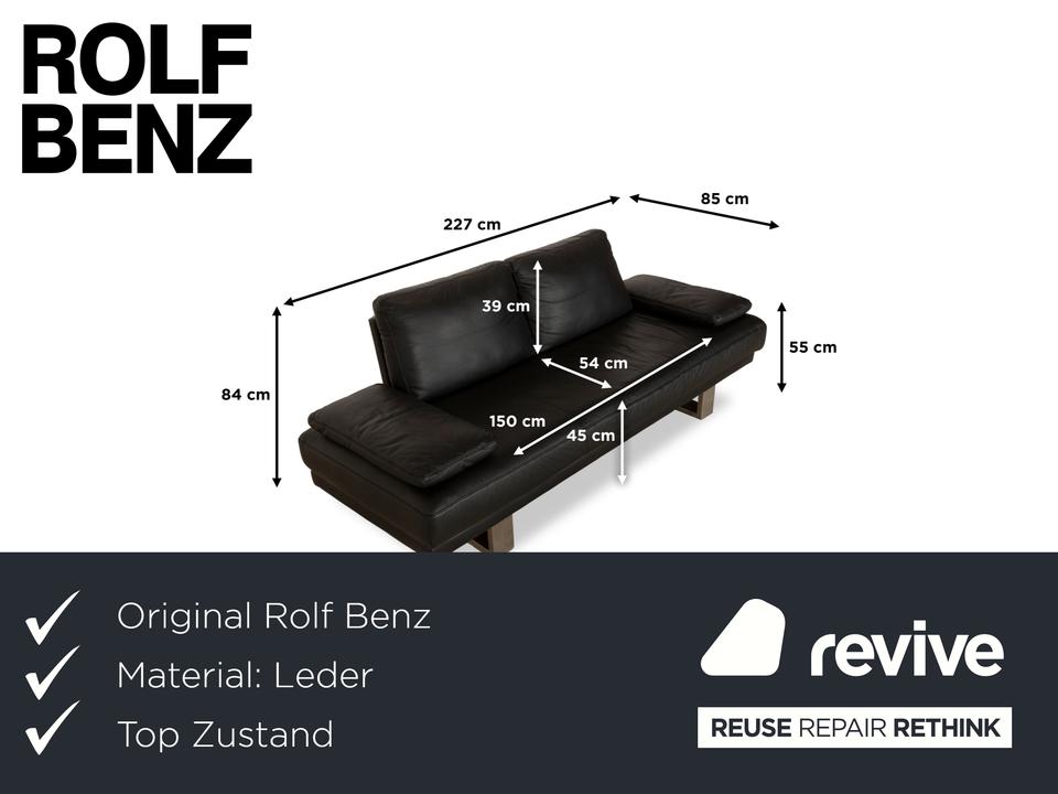Das Rolf Benz 6600 Zweisitzer Sofa erscheint durch sein tiefes Schwarz und die silbernen Metallfüße als besonders edel. Durch das hochwertige Leder bietet es maximalen Komfort und Langlebigkeit.