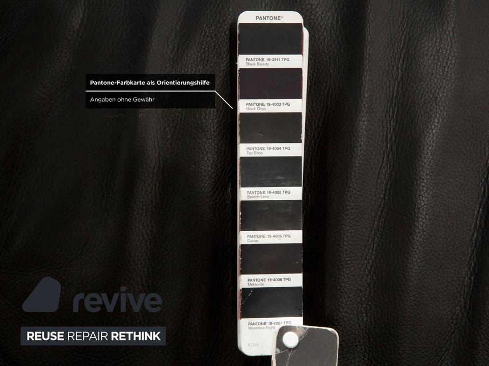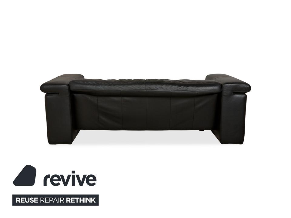 Dieses Rolf Benz Sofa aus der 6800 Serie ist mit schwarzem Leder bezogen und steht auf bodentiefen Seitenteilen. Das Sofa verfügt über eine verstellbare Kopflehne. Mit diesem Dreisitzer findet zeitlos schönes und funktionales Design ins moderne Wohnzimmer.