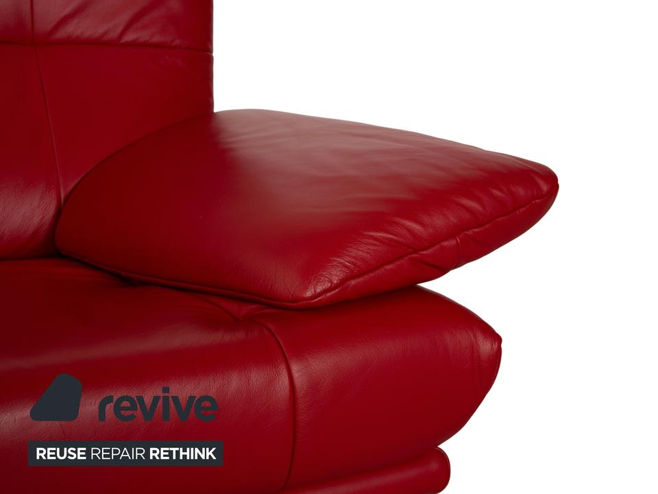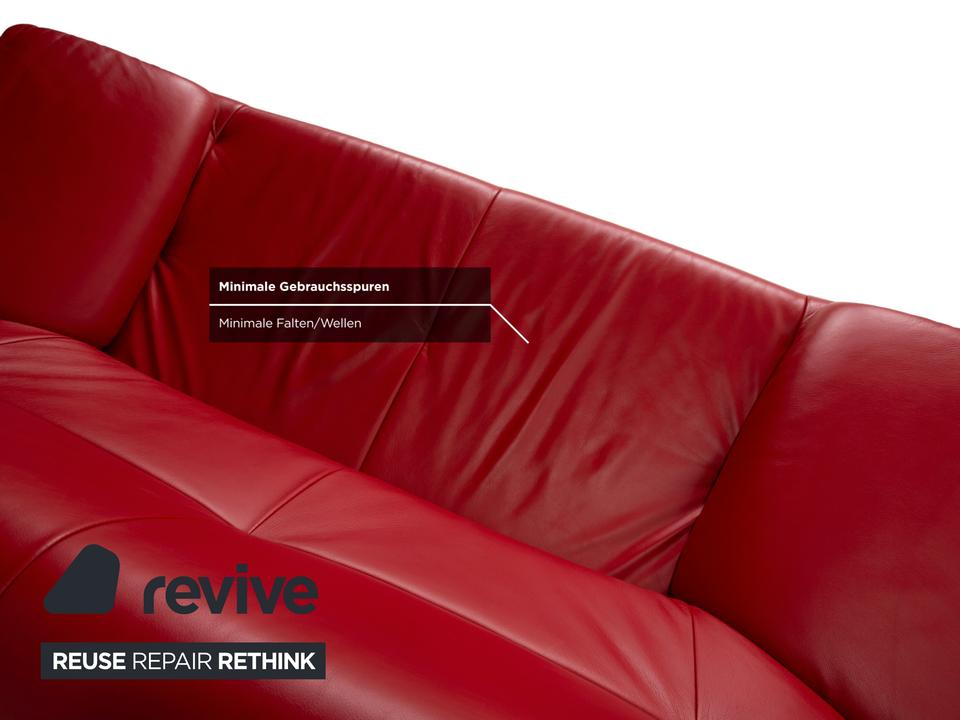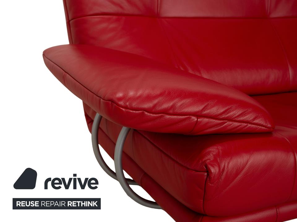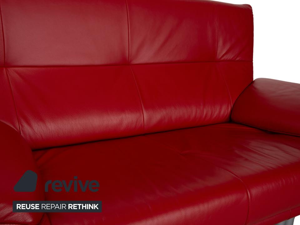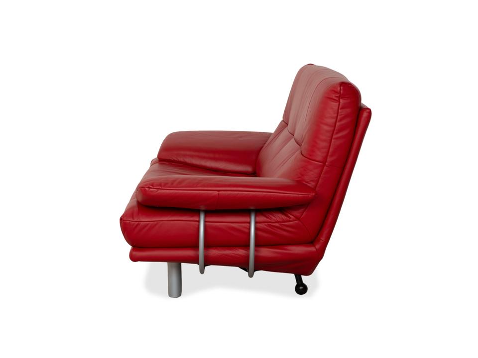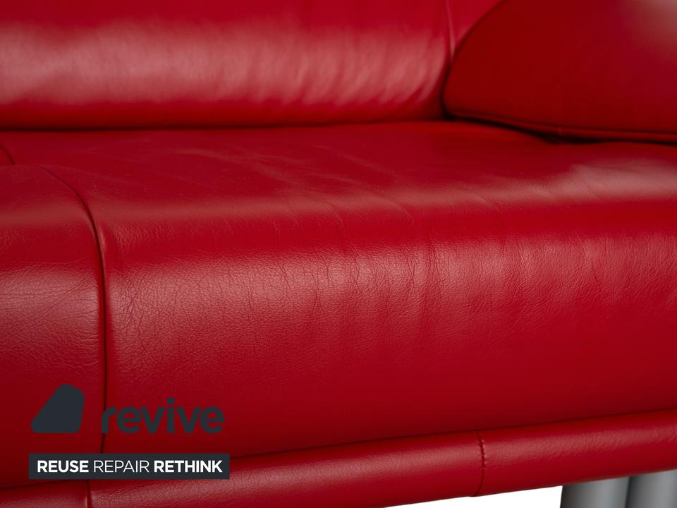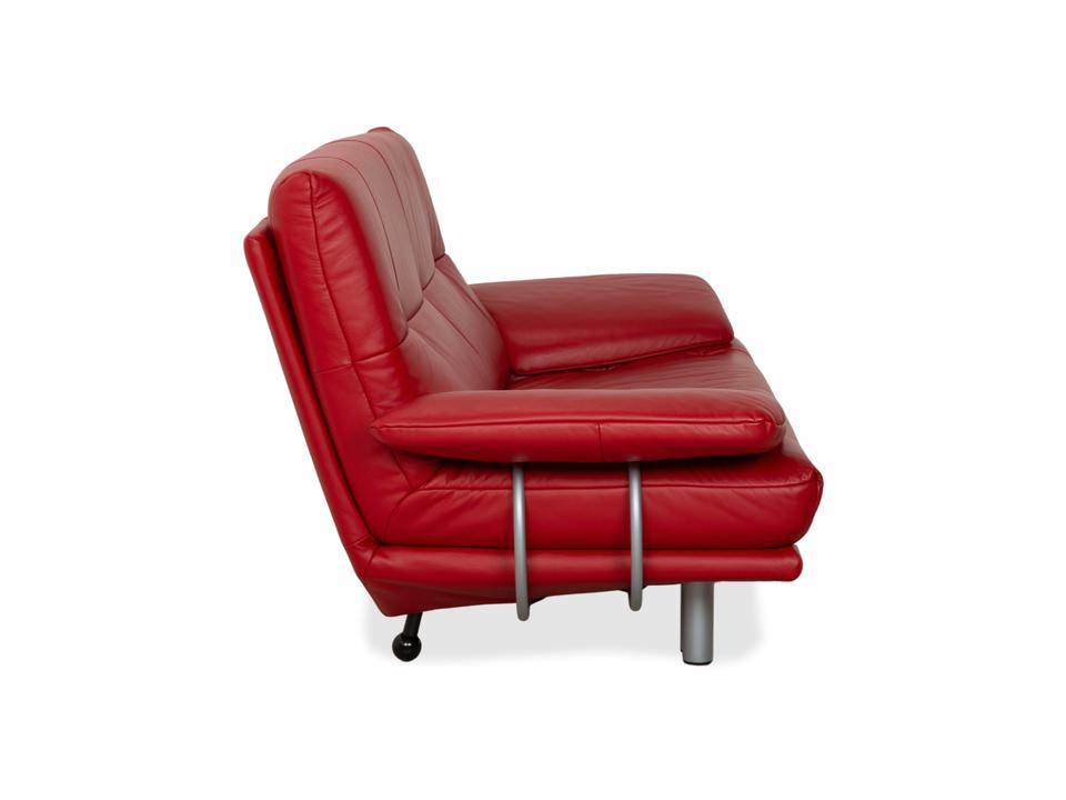 Wenn du Lust auf ein echtes Statement im Wohnzimmer hast, ist dieser Rolf Benz Zweisitzer genau das Richtige. Das Modell BMP 418 ist ja an sich schon ein Klassiker der 90er, aber in diesem satten, leuchtenden Rot wird es zum absoluten Hingucker. Wie bei dieser Serie üblich, steht der Komfort hier an erster Stelle: Das Leder ist bewusst leger verarbeitet, was du an der typischen Faltenbildung im Rücken und auf der Sitzfläche siehst – das gehört so und sorgt für diesen gemütlichen „Soft-Look“.Besonders praktisch sind die kissenartigen Armlehnen, die locker aufliegen. Sie lassen sich in der Regel verstellen, sodass du sie auch prima als Kopfstütze nutzen kannst, wenn du dich mal querlegst. Getragen wird das Sofa von den markanten, silbernen Doppelsäulen-Füßen, die einen schönen, kühlen Kontrast zum feurigen Rot bilden. Ein Möbelstück, das definitiv nicht in der Ecke verschwindet, sondern Präsenz zeigt und Leben in den Raum bringt.
