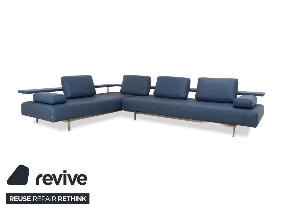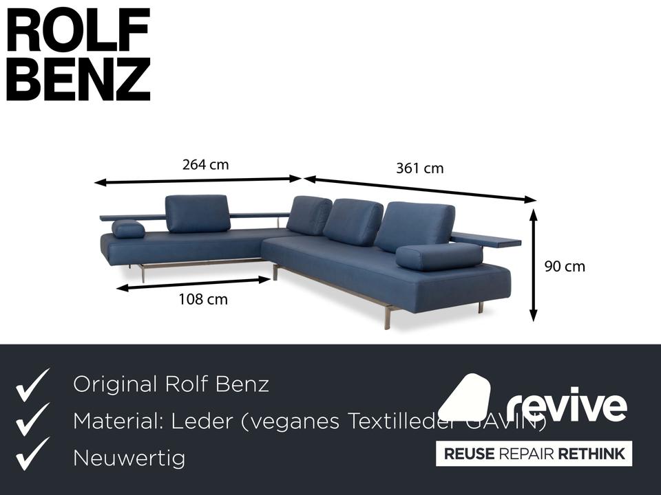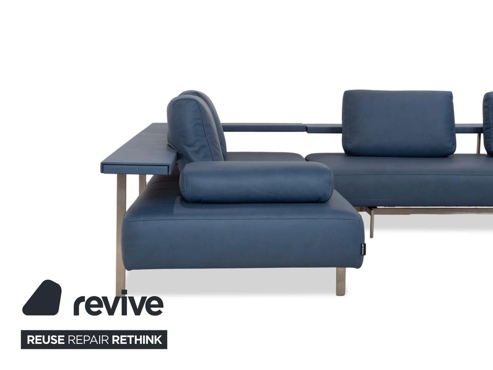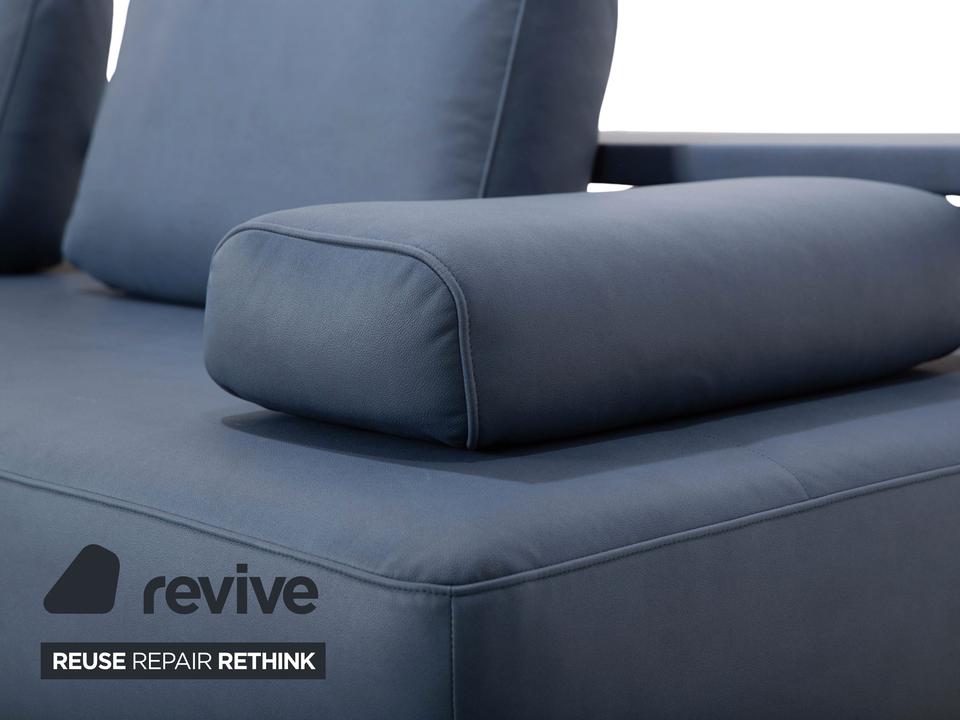 Das Dono 6100 Sofa von Rolf Benz ist mit einem blauen Qualitätsstoff von Höpke (GAVIN 113) neu bezogen worden und steht auf Metallfüßen. Das modernde Design und die komfortable Ablage zeichnen das Ecksofa aus.