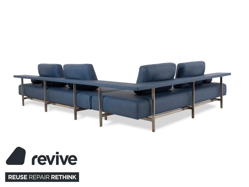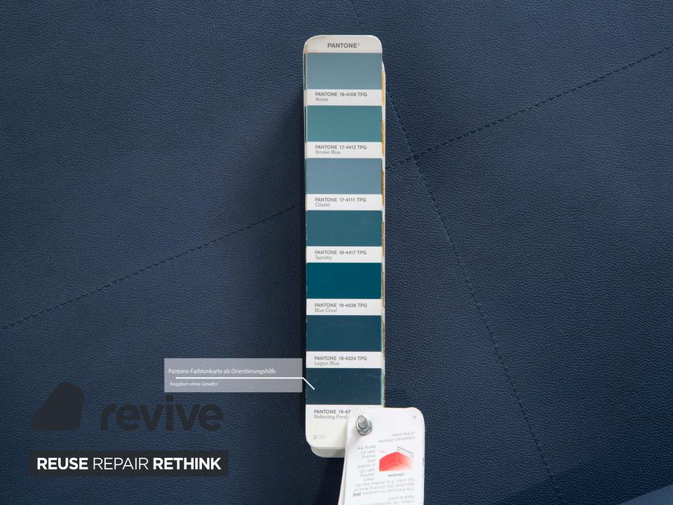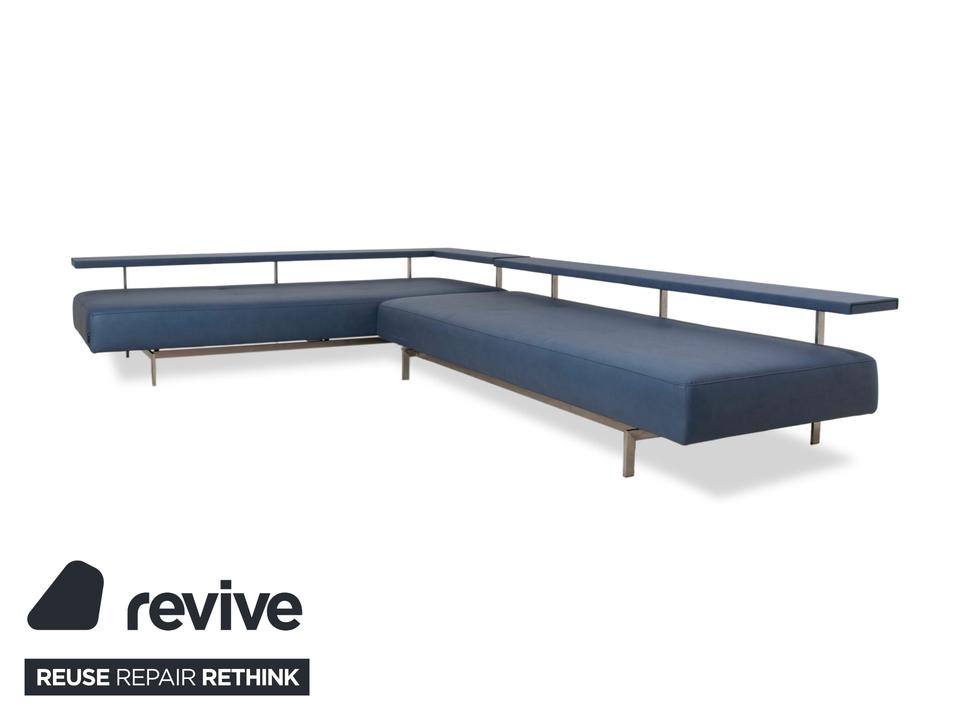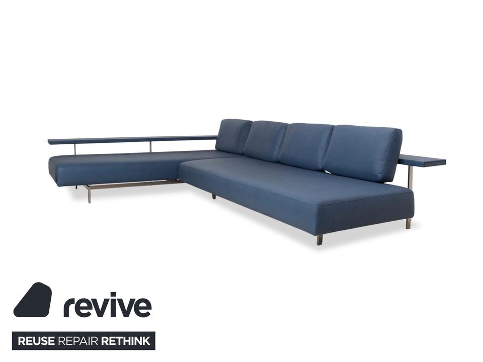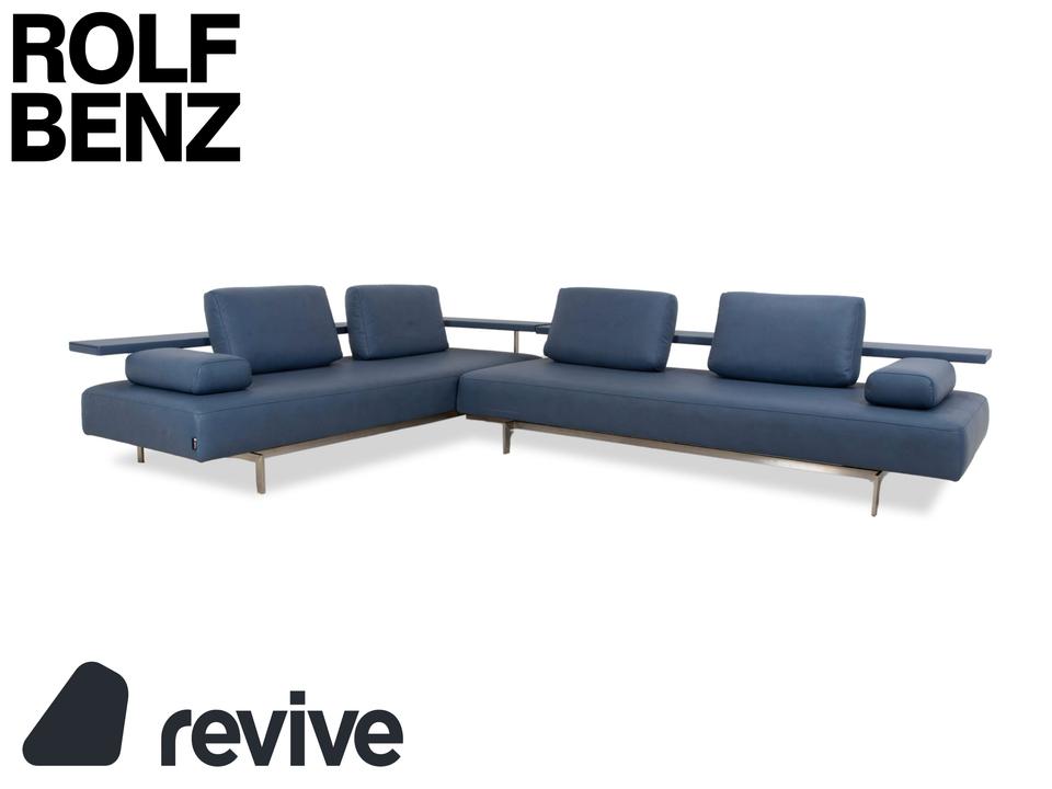 Das Dono 6100 Sofa von Rolf Benz ist mit einem blauen Qualitätsstoff von Höpke (GAVIN 113) neu bezogen worden und steht auf Metallfüßen. Das modernde Design und die komfortable Ablage zeichnen das Ecksofa aus.