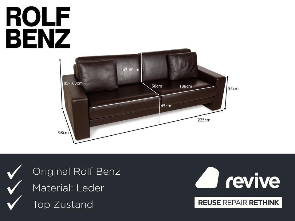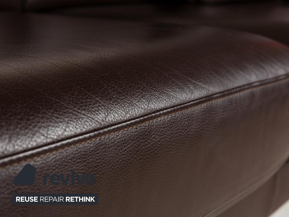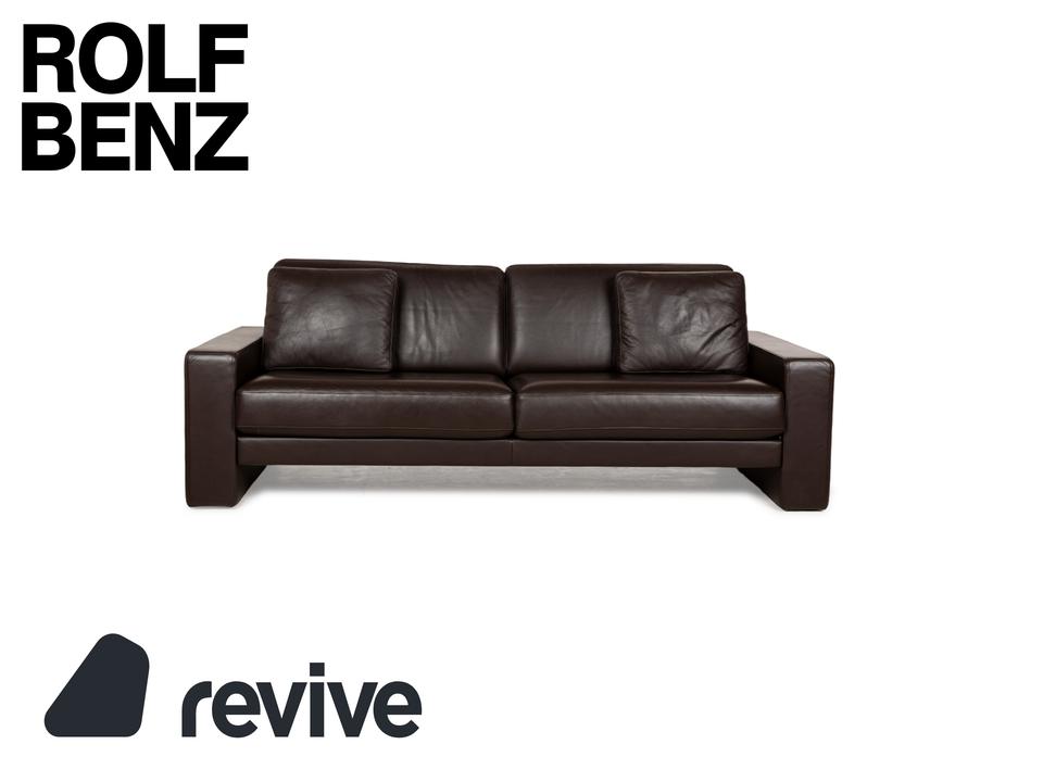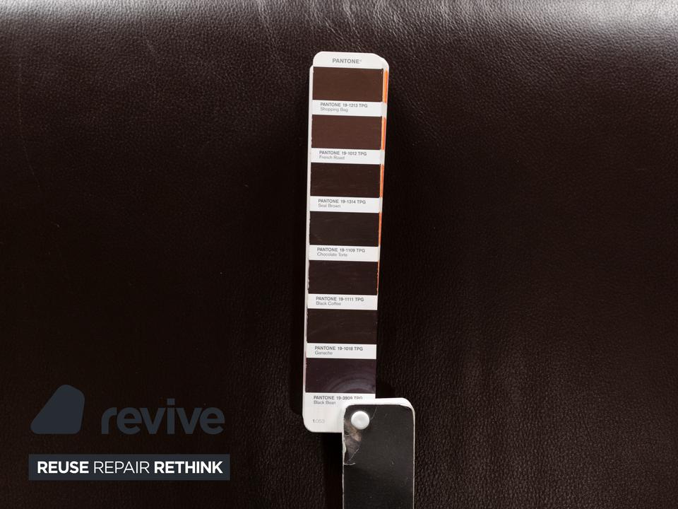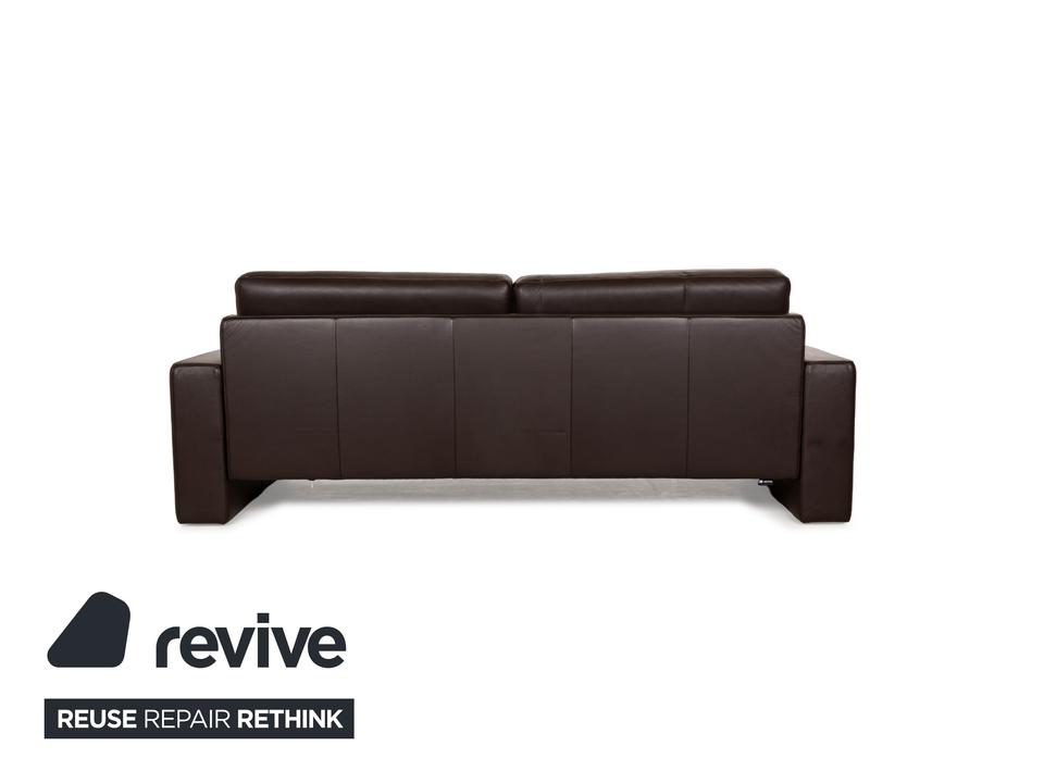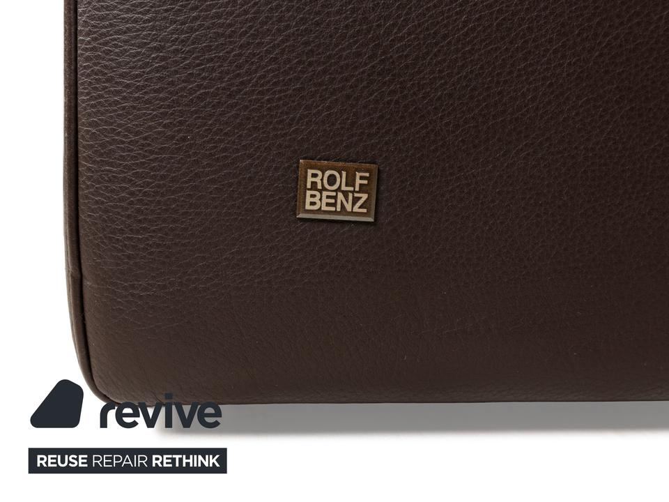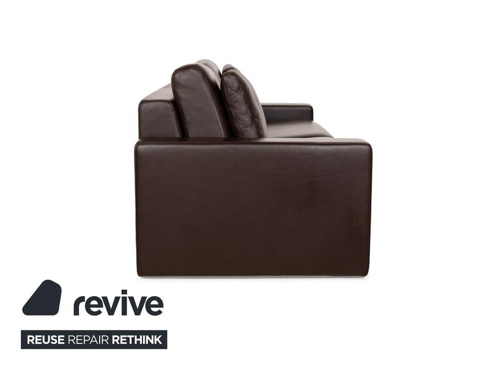 Das Sofa EGO von Rolf Benz ist mit dunkelbraunem Leder bezogen und steht auf bodentiefen Seitenteilen. Es zeichnet sich durch sein klassisches, unaufdringliches Design aus, wodurch es einfach mit weiteren Einrichtungsgegenständen kombinierbar ist. Breite Armlehnen, eine großzügige Polsterung und versetzbare Kopfstützten-Elemente sorgen für hohen Komfort.