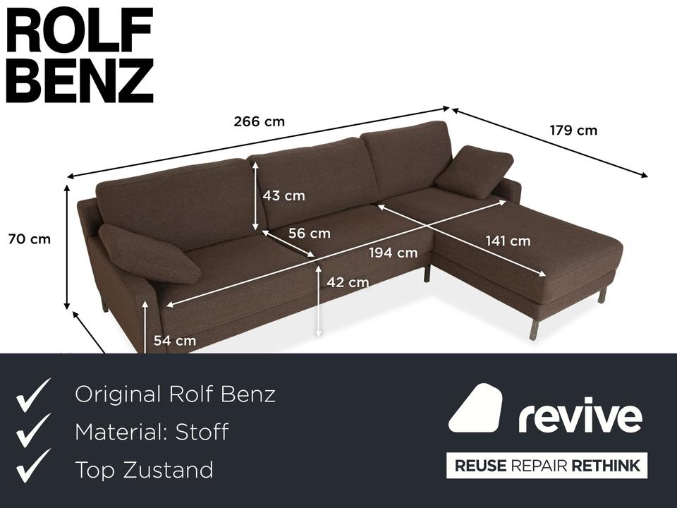 Das Ecksofa von Rolf Benz ist mit einem dunkelgrauen Stoff bezogen und steht auf geraden Metallbeinen. Das Sofa zeichnet sich durch seine gerade Grundform aus, die elegant und zeitlos ist.
