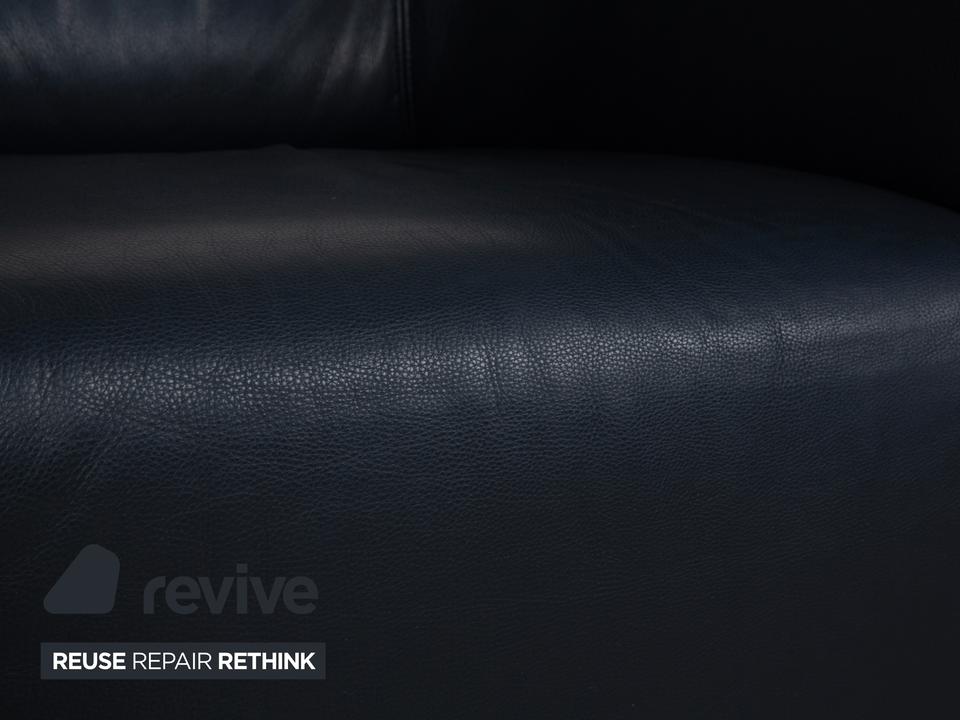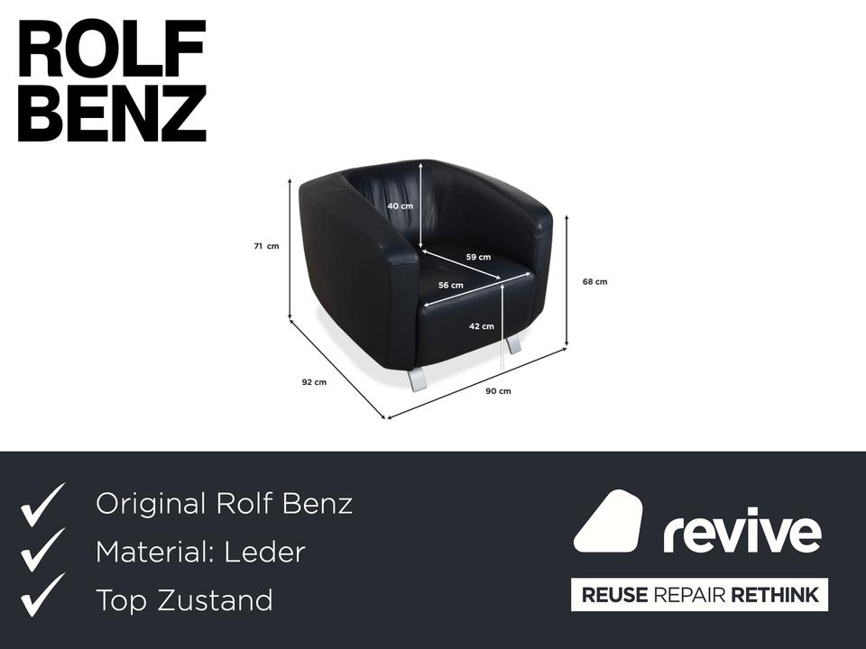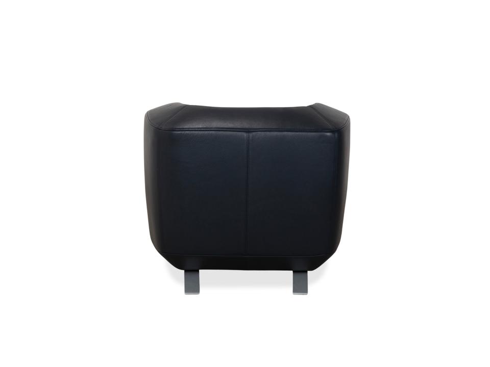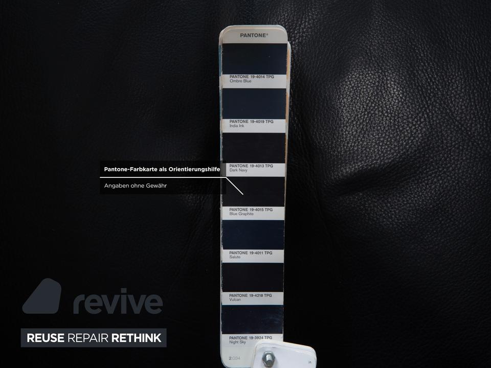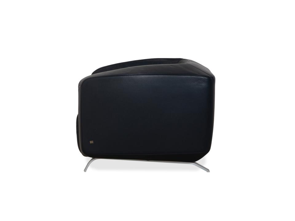 Dieser Sessel von Rolf Benz beweist, dass ein klassisches Möbelstück nicht immer schwarz sein muss, um elegant zu wirken. Das tiefe, satte Dunkelblau des Leders ist eine tolle Alternative: Es wirkt genauso seriös, bringt aber eine subtile, weichere Note in den Raum. Die Form erinnert an einen modernen Cocktailsessel – kompakt, kubisch, aber mit einer Rückenlehne, die in einem Schwung in die Armlehnen übergeht und dich beim Sitzen förmlich „umarmt“.Ein schönes Detail ist der leichte Faltenwurf im inneren Rückenbereich, der die strenge Außenform etwas aufbricht und dem Sessel einen gemütlichen Charakter verleiht. Getragen wird der massive Korpus von geschwungenen, silbernen Metallfüßen, die für Bodenfreiheit sorgen und das Design leichtfüßiger machen. Ein perfekter Solitär, der in einer Lounge-Ecke genauso gut funktioniert wie als stilvoller Ruhepol im Büro oder Schlafzimmer.