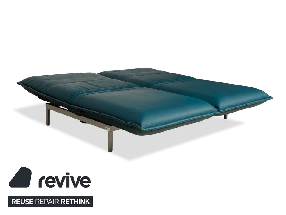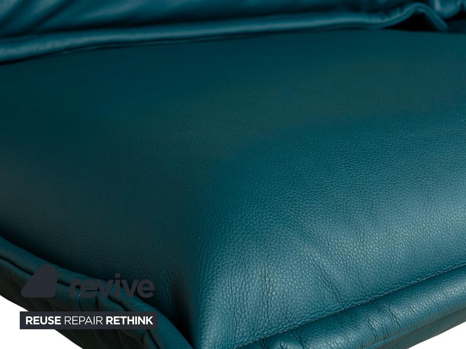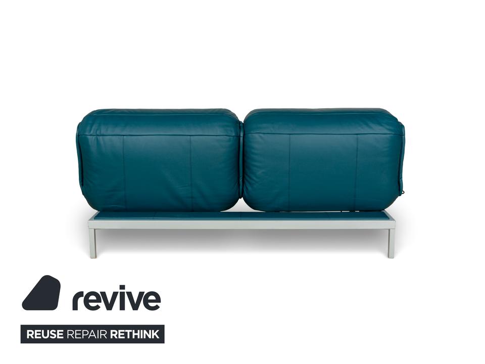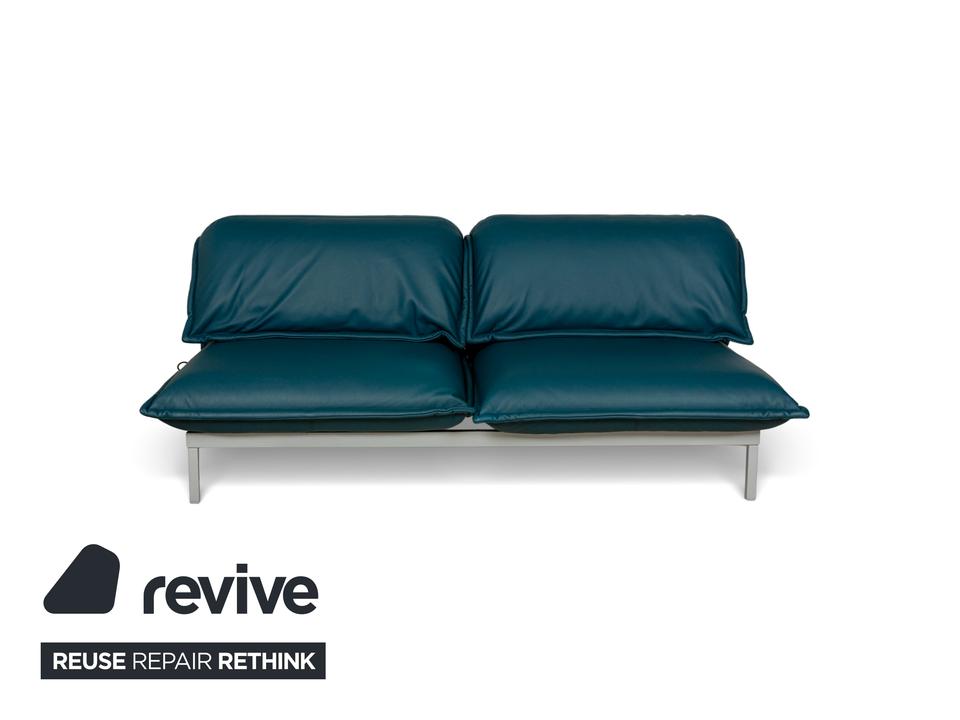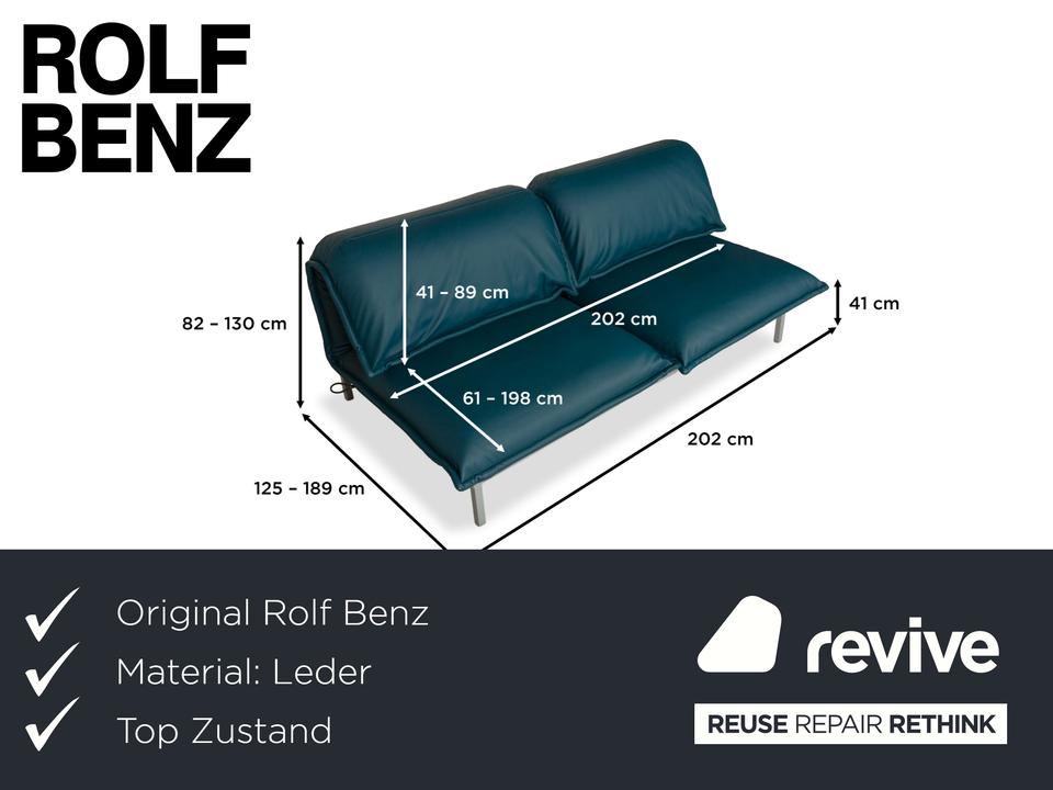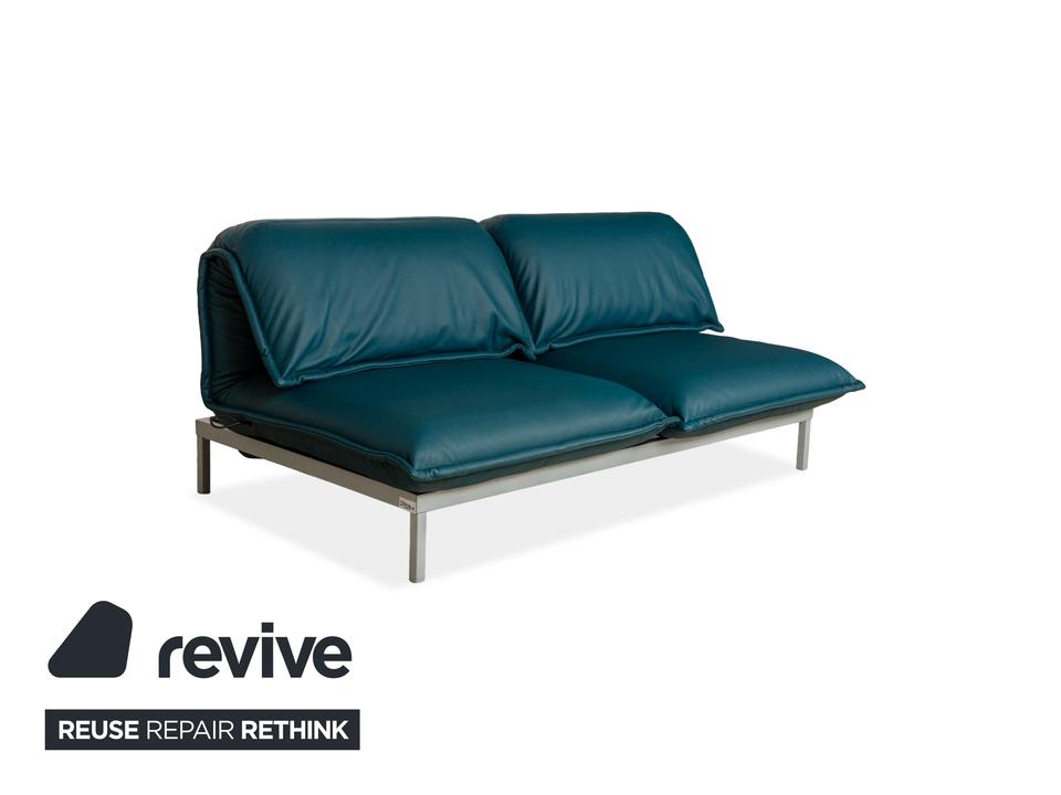 Das Nova 340 von Rolf Benz ist mit einem Blauen Leder bezogen und steht auf Metallfüßen. Das moderne Design und die praktischen Verstellmöglichkeiten zeichnen den Zweisitzer aus, während das vegane Leder Komfort und Langlebigkeit leistet.