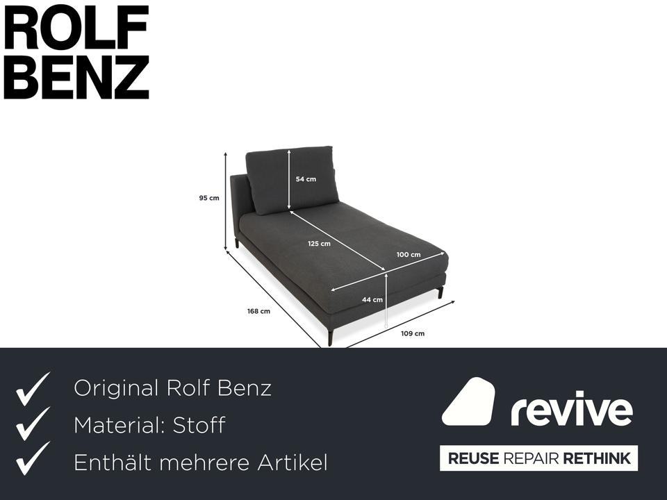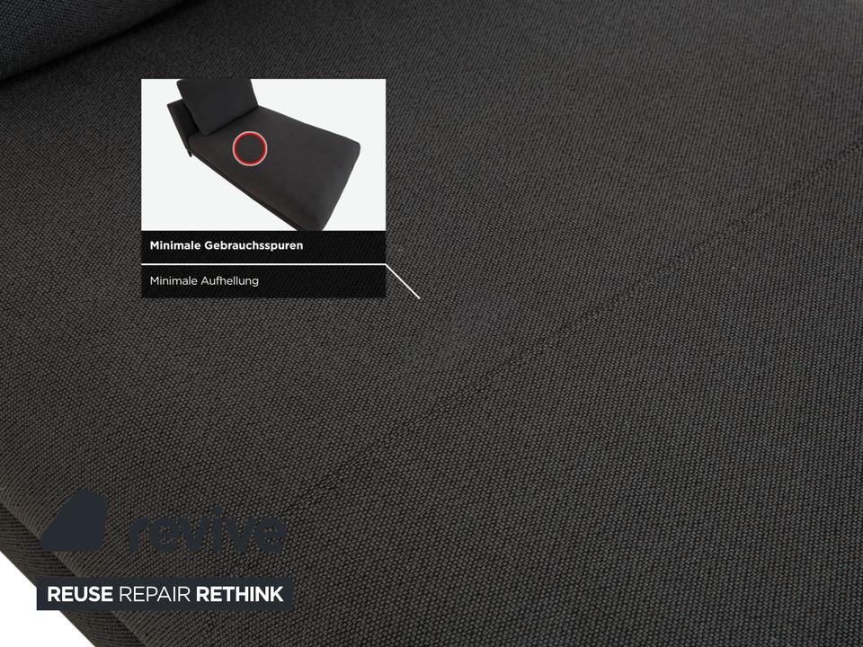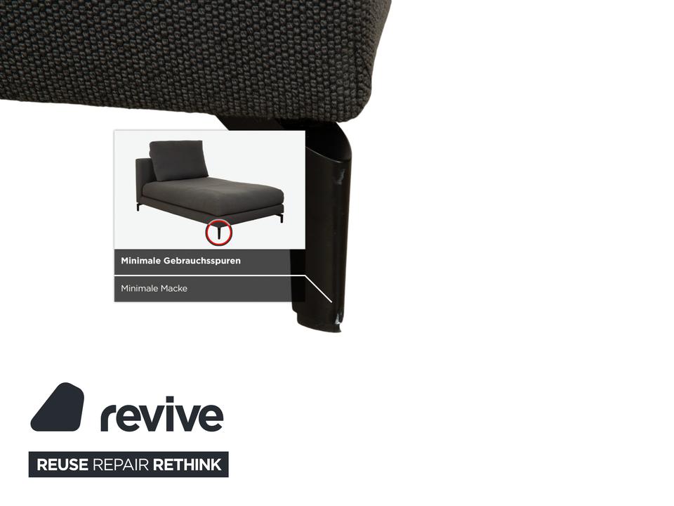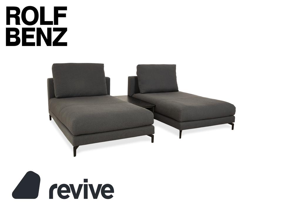 Dieses Ensemble aus der Rolf Benz Nuvola-Serie ist die perfekte Lösung für stilvolles Entspannen zu zweit, ohne auf den eigenen Freiraum zu verzichten. Das Set besteht aus zwei identischen Liegen in einem hochwertigen, dunkelgrauen bis anthrazitfarbenen Stoff, die symmetrisch angeordnet sind. Das verbindende Element ist ein flacher, dunkler Couchtisch zwischen den Polstermöbeln. Diese Anordnung wirkt nicht nur architektonisch sehr aufgeräumt, sondern ist auch äußerst praktisch: Der Tisch dient als zentrale Ablage für Getränke, Snacks oder die Lektüre, die von beiden Seiten bequem erreichbar sind. Die schwarzen, filigranen Füße lassen die massiven Polster leicht wirken und unterstreichen die moderne Eleganz dieser Ruheinsel.
