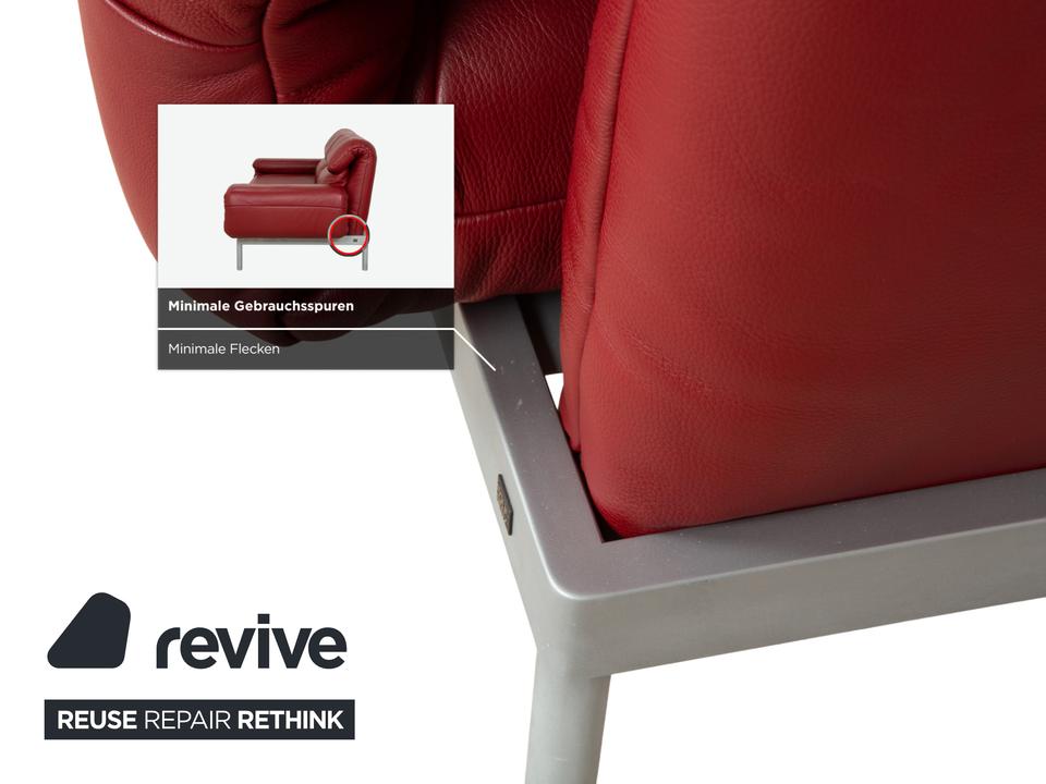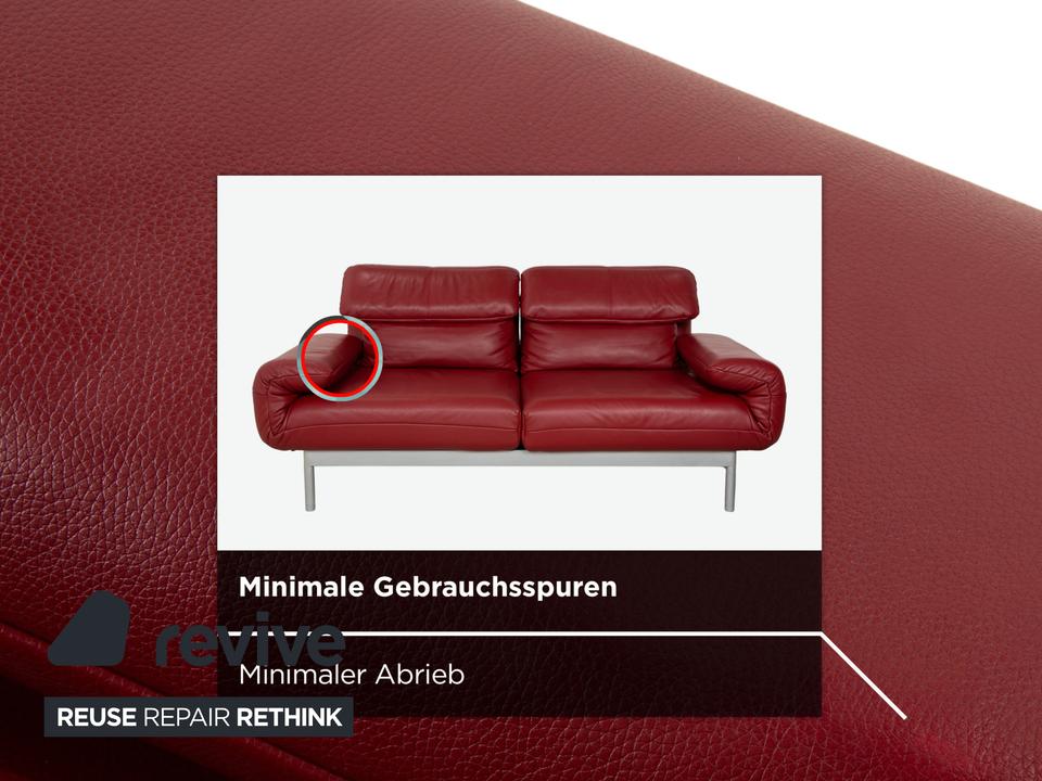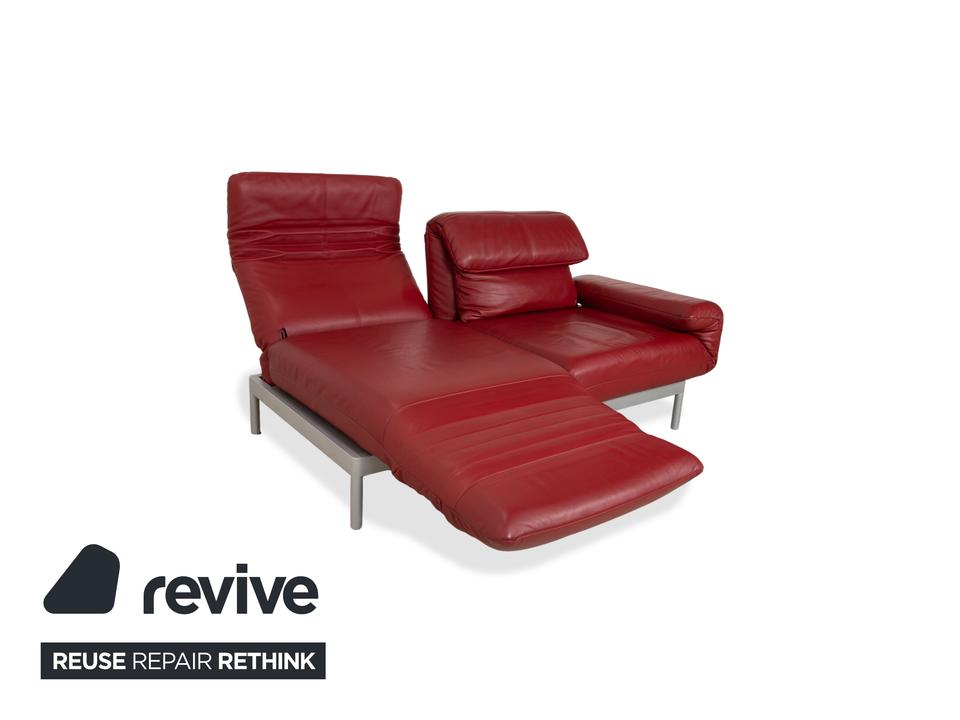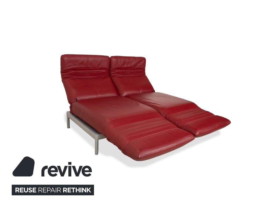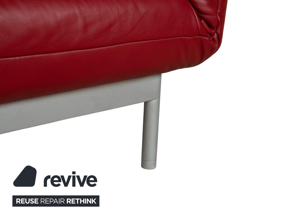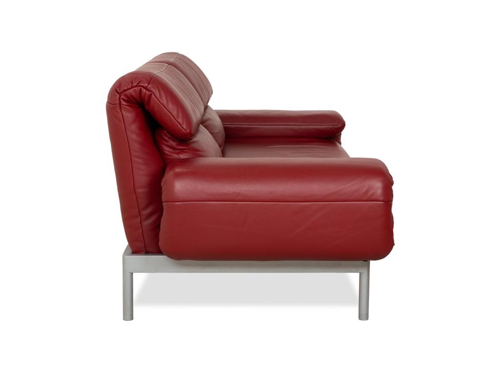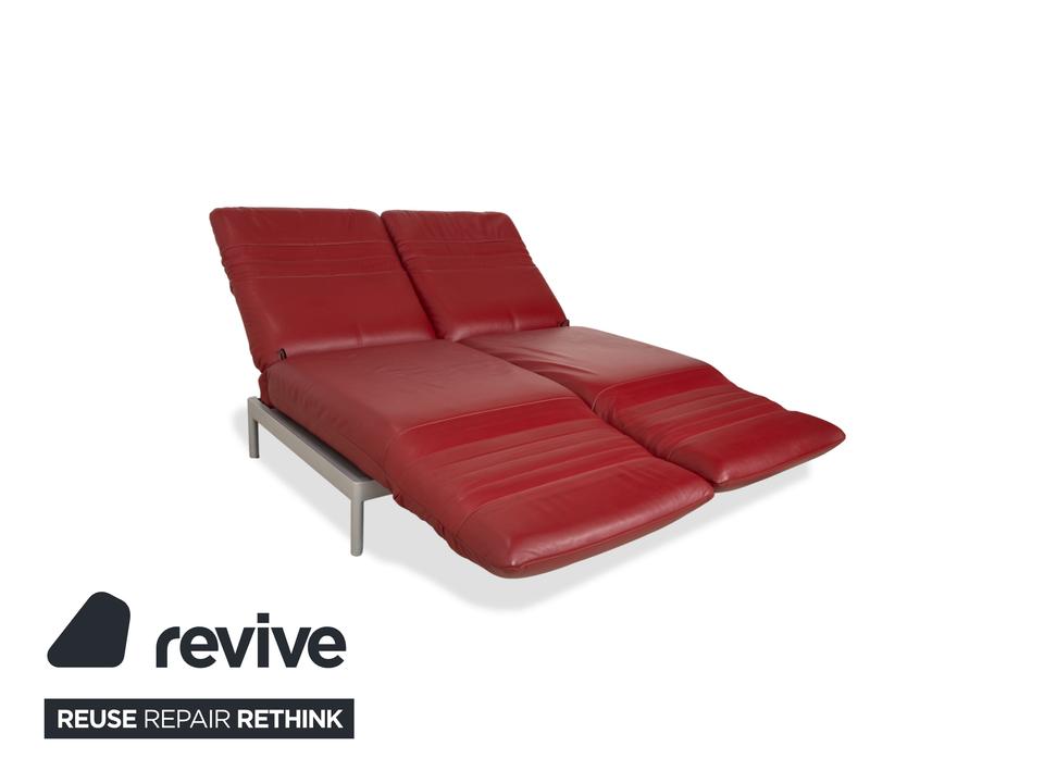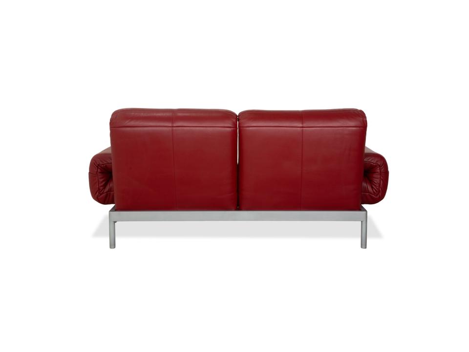 Der Zweisitzer Plura aus dem Hause Rolf Benz ist mit einem roten Leder bezogen und steht einem Aluminiumgestell. Sitzen oder Relaxen – mit wenigen Handgriffen lässt sich das Multifunktionssofa in jede Position bringen. Die weiche Form des Designs der Polster und das geradlinige Metallgestell machen das Sofa zu einem zeitlosen, modernen Sitzmöbel.