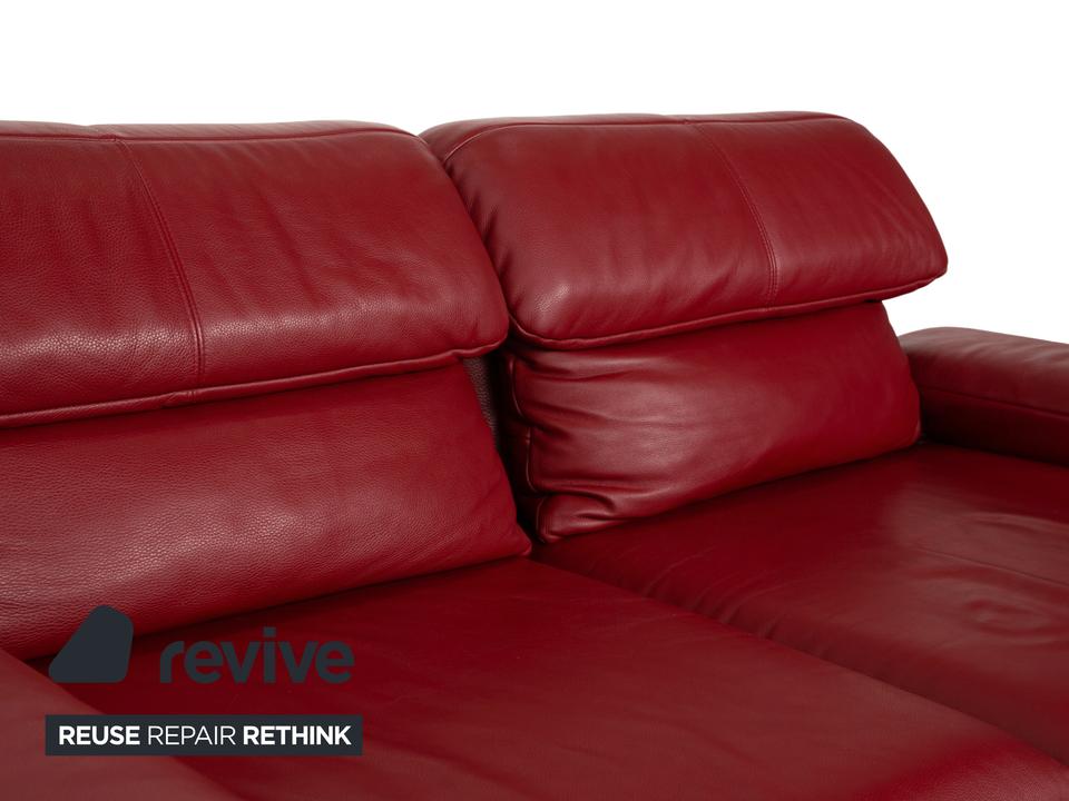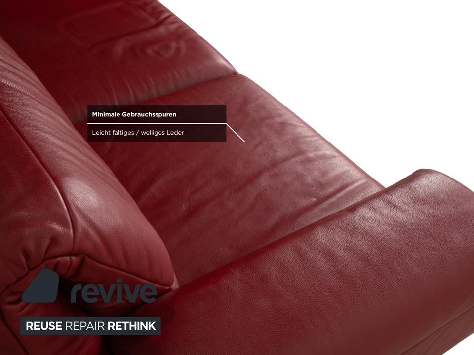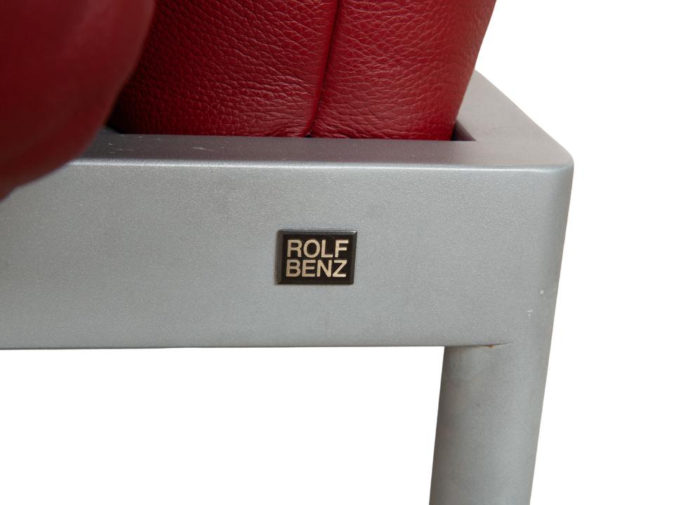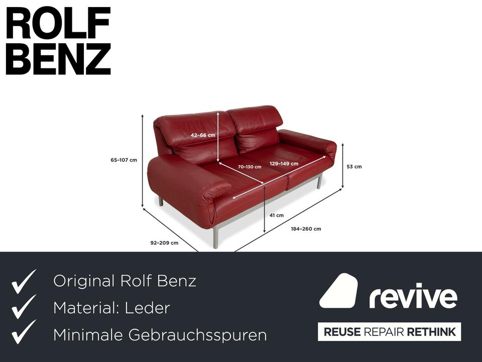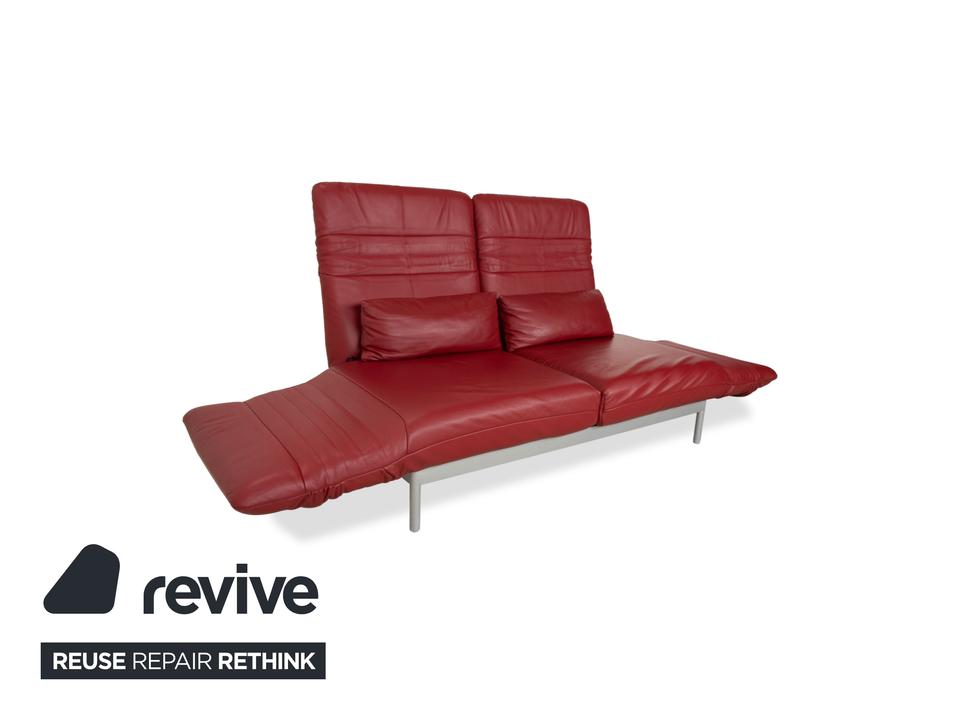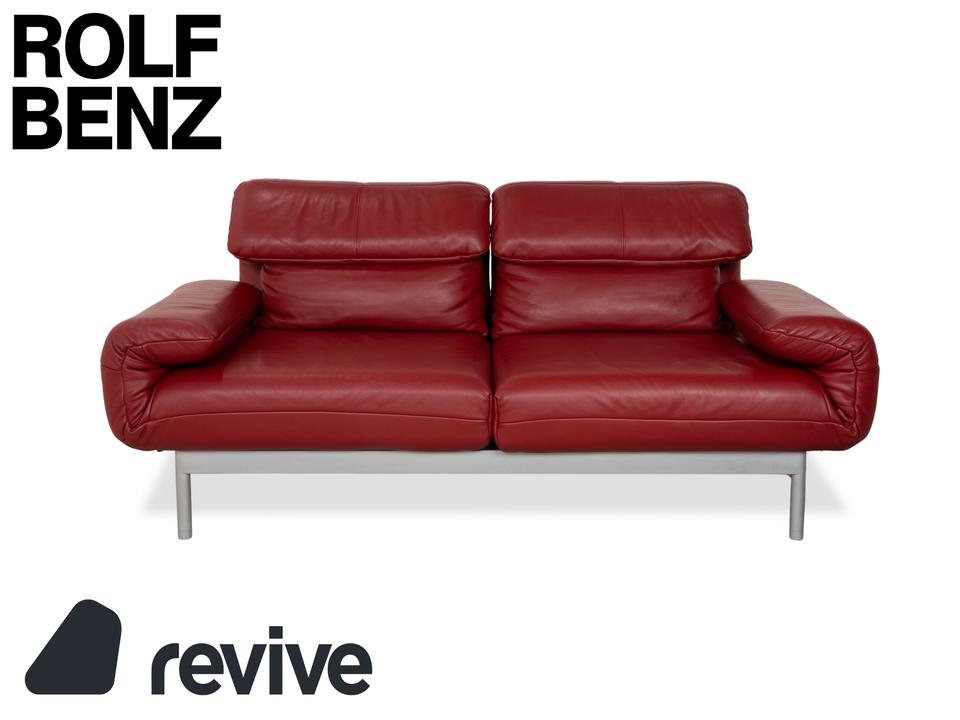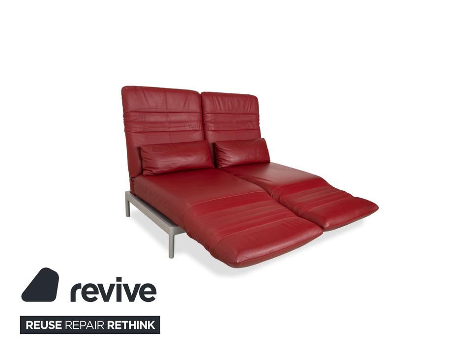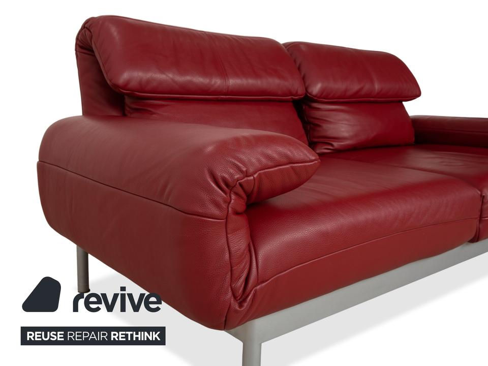 Der Zweisitzer Plura aus dem Hause Rolf Benz ist mit einem roten Leder bezogen und steht einem Aluminiumgestell. Sitzen oder Relaxen – mit wenigen Handgriffen lässt sich das Multifunktionssofa in jede Position bringen. Die weiche Form des Designs der Polster und das geradlinige Metallgestell machen das Sofa zu einem zeitlosen, modernen Sitzmöbel.