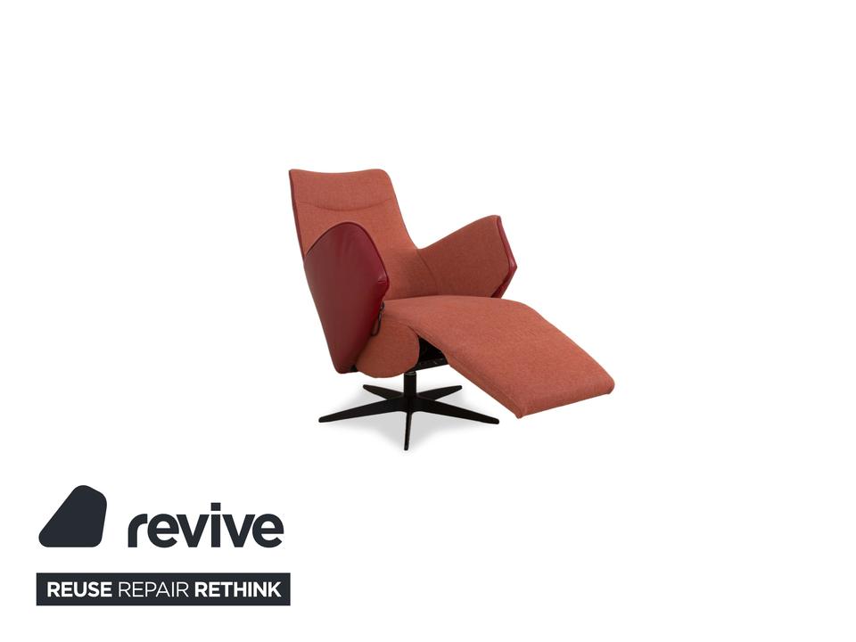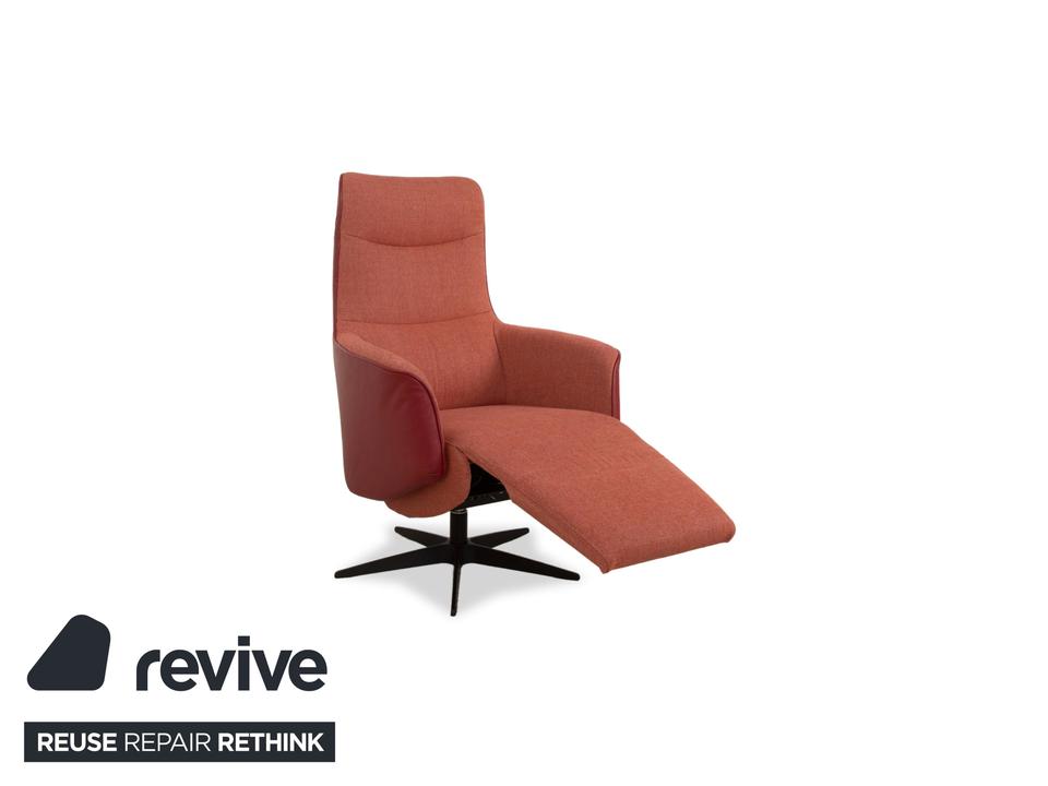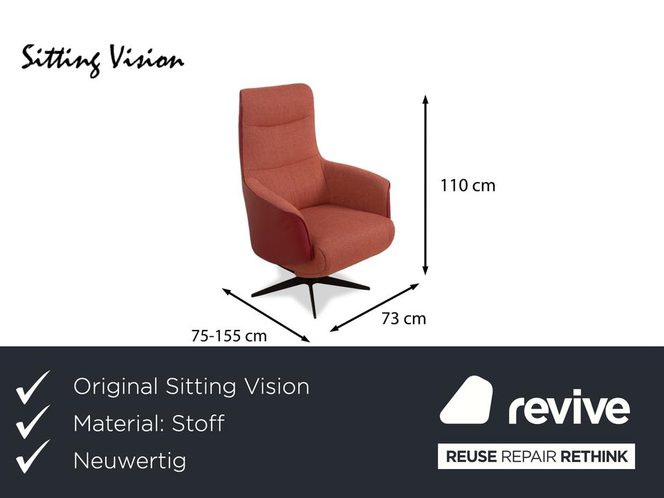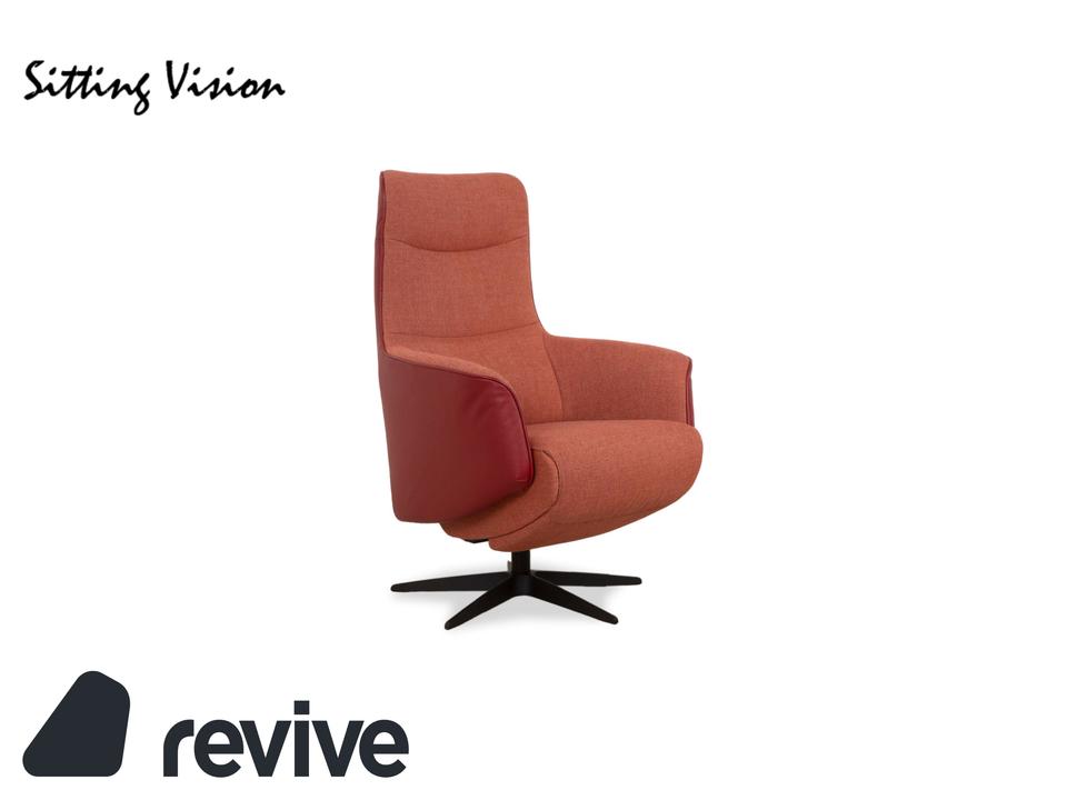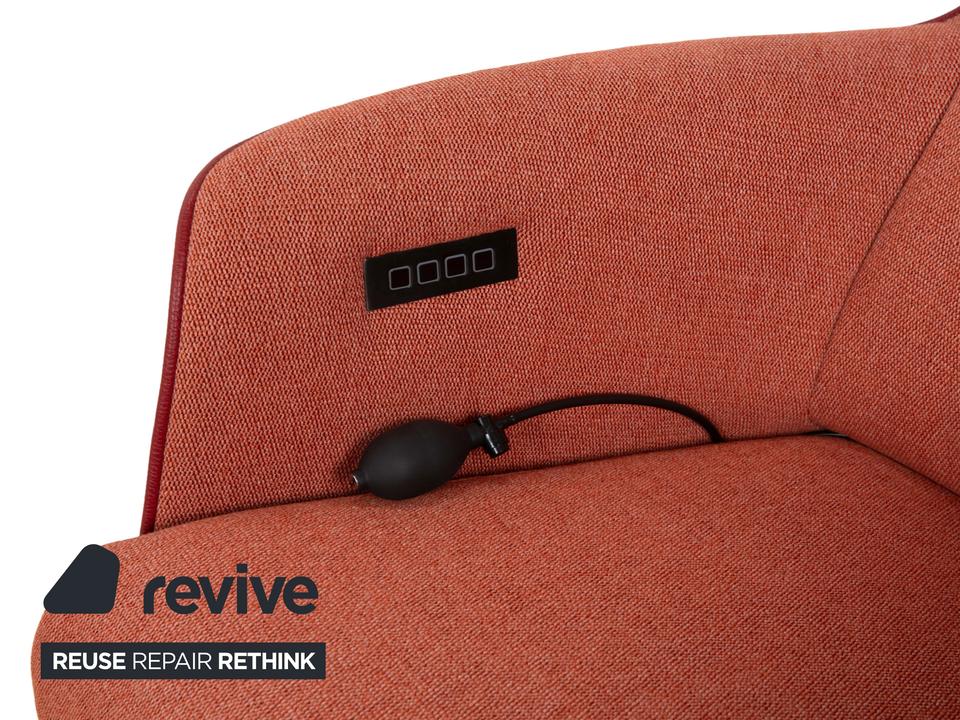 Dieser moderne Sitting Vision Sessel vereint Stil und Komfort in einer harmonischen Kombination aus orangenem Stoff und passendem Leder. Die geschwungene, ergonomische Form sorgt für ein angenehmes Sitzgefühl, ergänzt durch die automatische Funktion, die das Relaxerlebnis auf die nächste Stufe hebt.