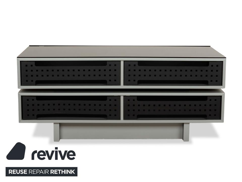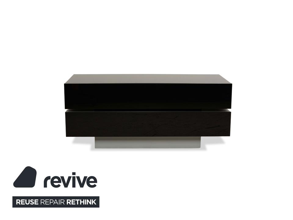 Dieses elegante Sideboard veredelt jedes Wohnzimmer durch seine glänzende schwarze Glasoberfläche. Die aufklappbaren Regalfächer sorgen für genügend Stauraum und ermöglichen es, jedes Chaos elegant zu verstecken.