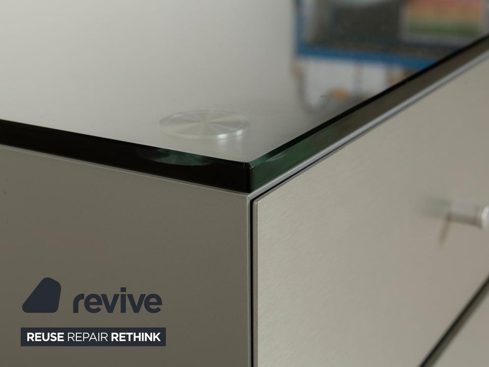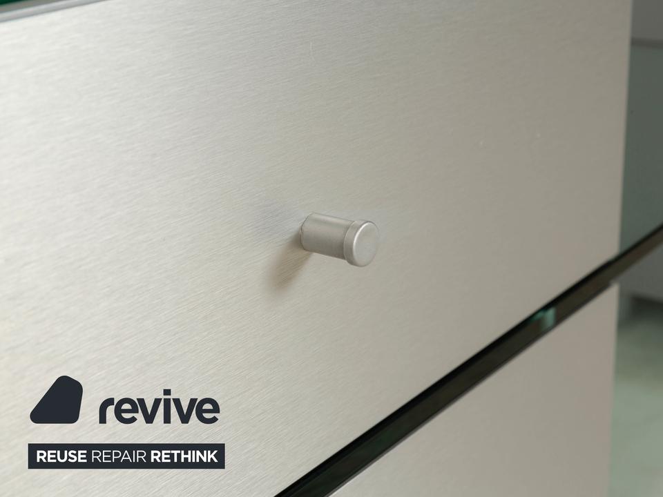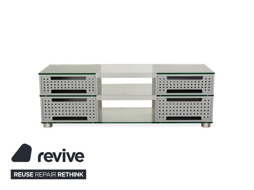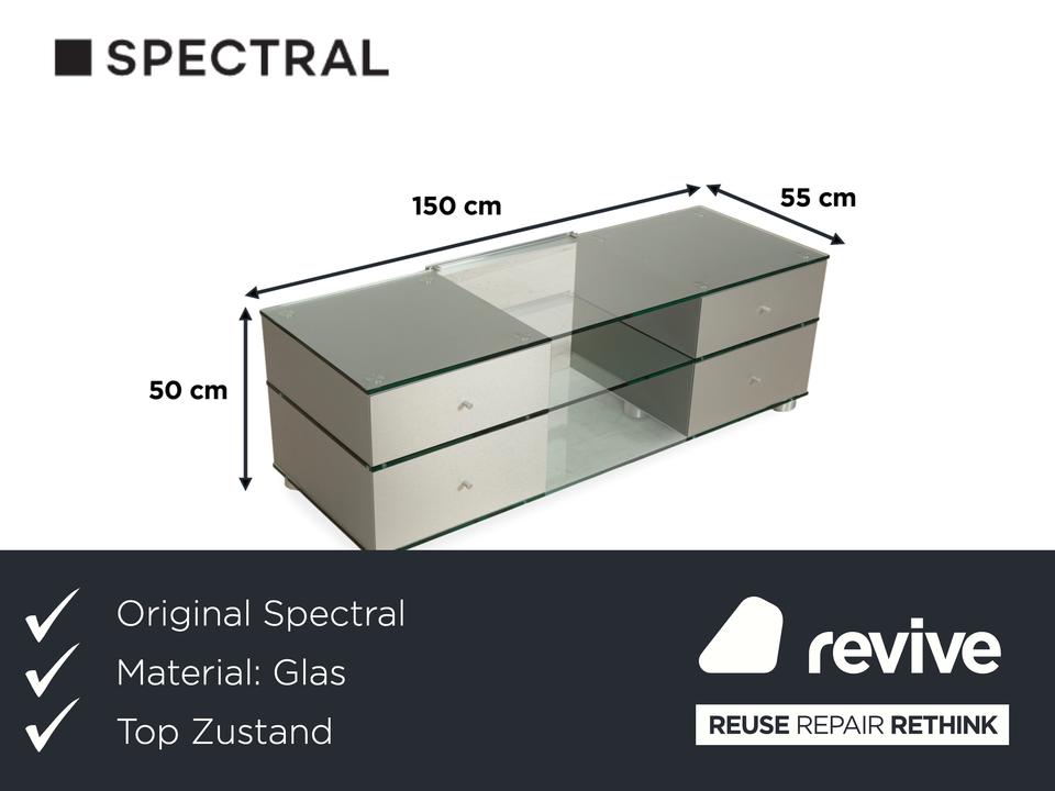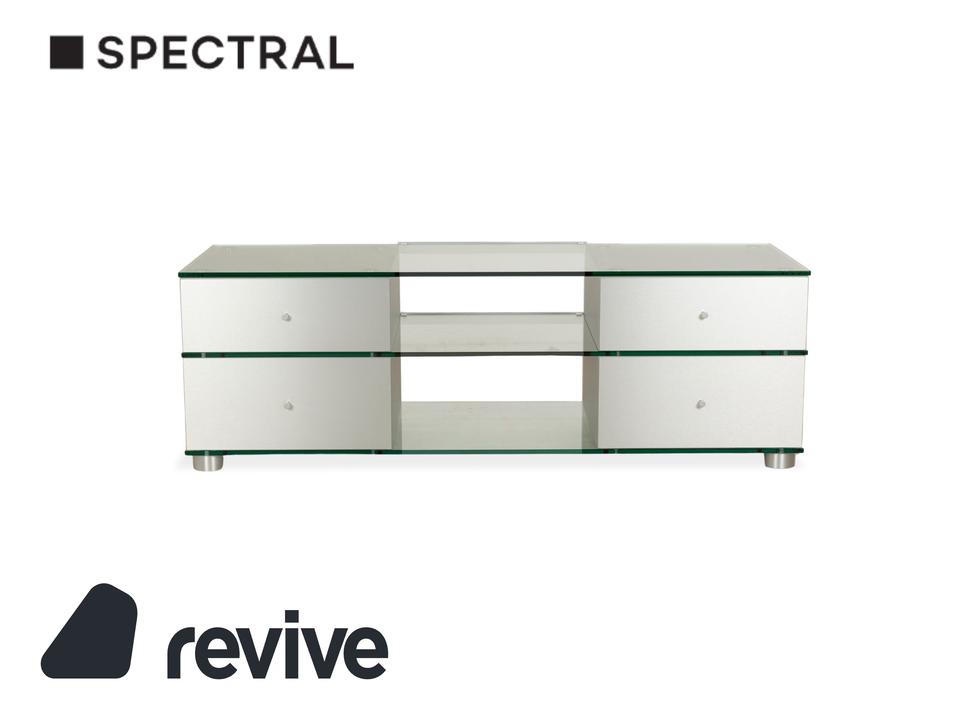 Das Spectral Sideboard überzeugt durch ein schlichtes Design und der modernen Optik durch die schicken Glasplatten. Es verfügt über vier Schubladen und zusätzliche Regale für Stauraum.