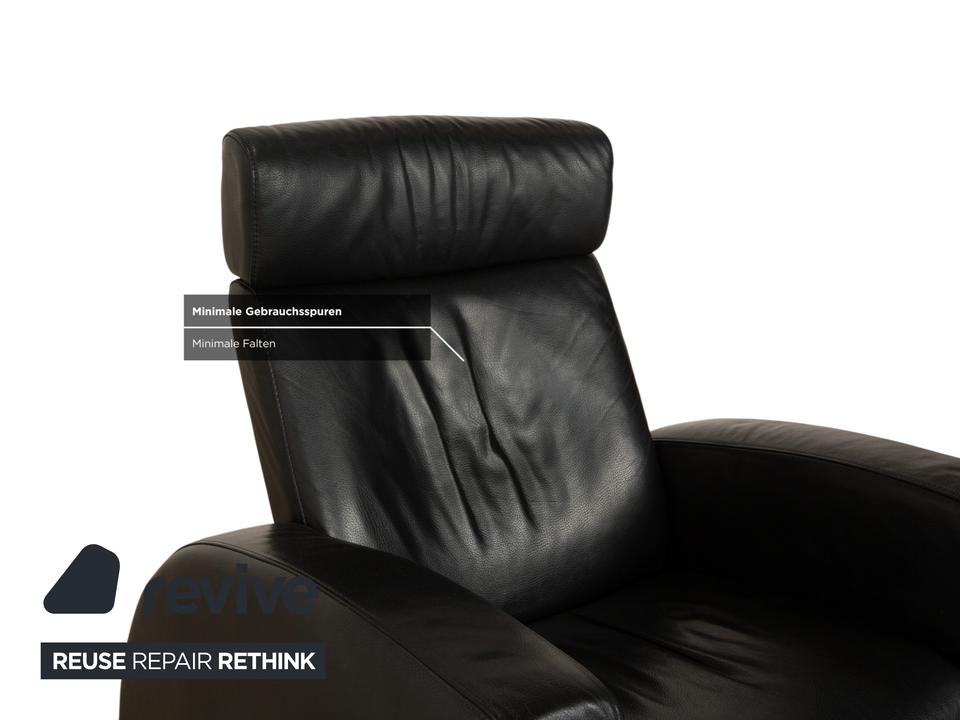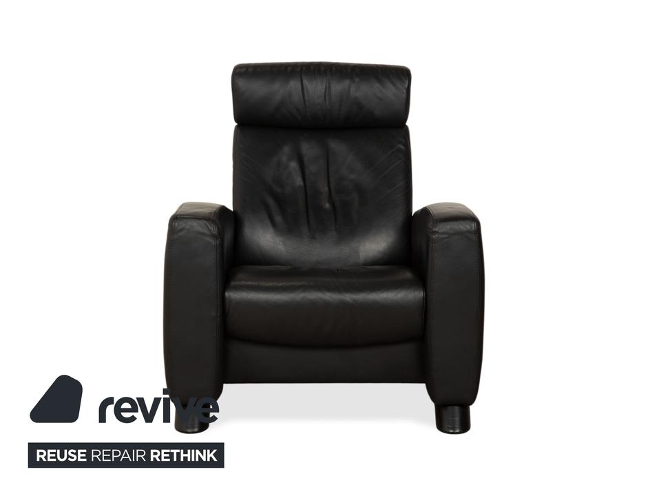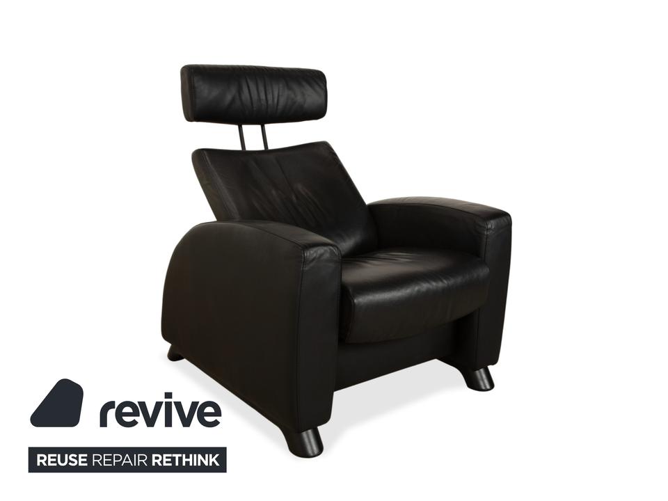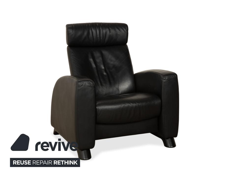 Stressless Arion: Dein persönlicher LogenplatzDieser Sessel bringt echtes Heimkino-Feeling in dein Wohnzimmer. Das Modell „Arion“ von Stressless ist bekannt für seine gelungene Mischung aus modernem Design und dem berühmten norwegischen Sitzkomfort.Der Sessel ist in zeitloses, schwarzes Leder gehüllt, das nicht nur edel aussieht, sondern sich auch wunderbar weich anfühlt. Die Polsterung ist üppig, aber klar definiert: Besonders die hohe Rückenlehne mit der integrierten Kopfstütze sorgt für optimale Entlastung von Nacken und Schultern, selbst bei langen Filmabenden.Dank der manuellen Funktion (das patentierte Stressless-Gleitsystem) passt sich der Sessel sanft deinen Bewegungen an – lehne dich einfach zurück, und er gleitet in die perfekte Relaxposition. Die breiten, gepolsterten Armlehnen und die stabilen, dunklen Füße runden das Bild eines robusten, absolut verlässlichen Komfort-Möbels ab.