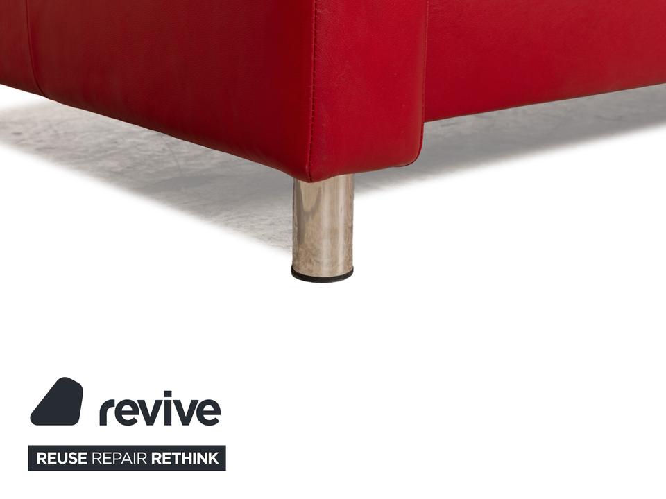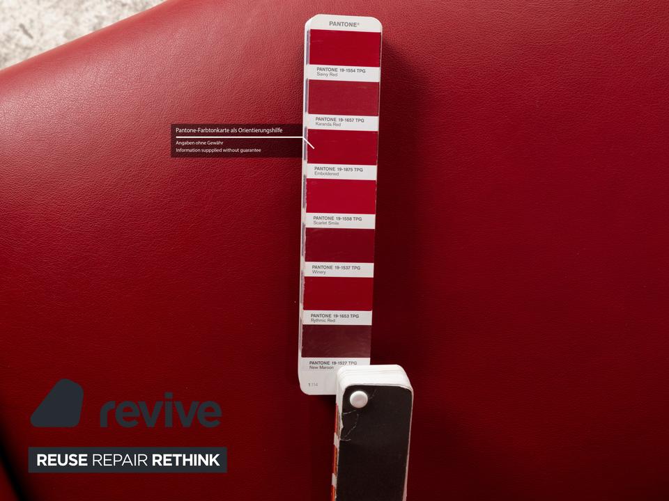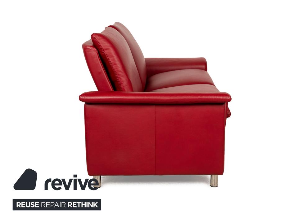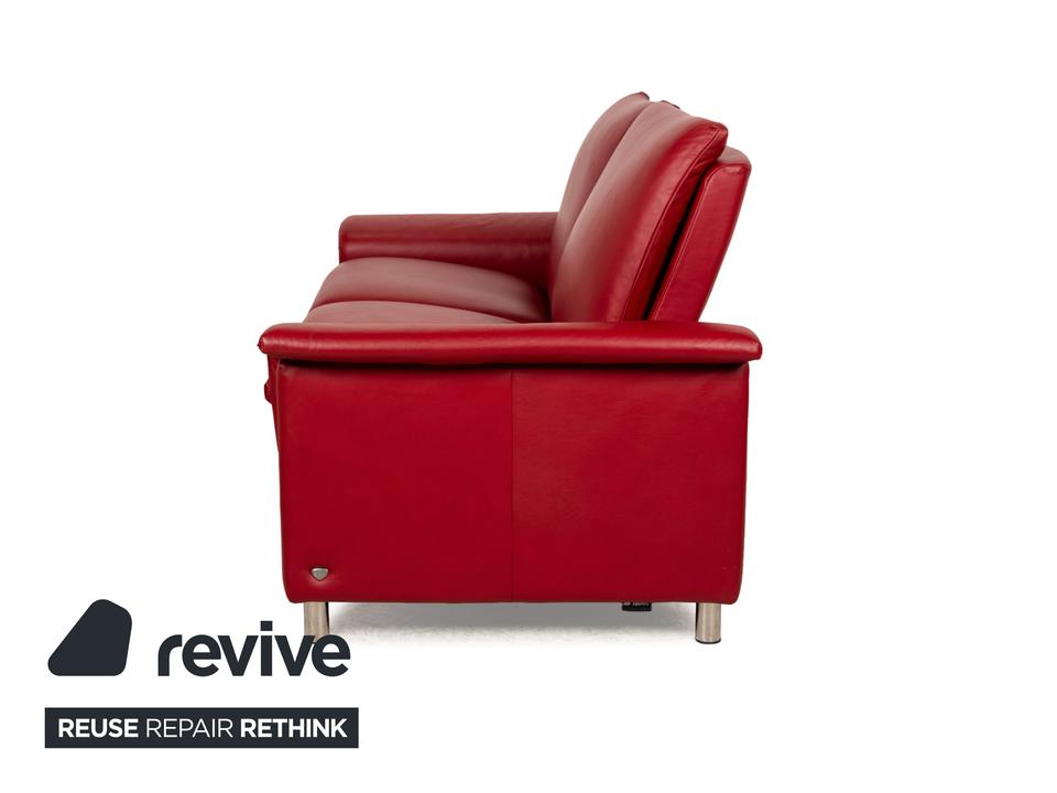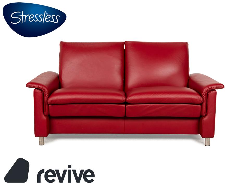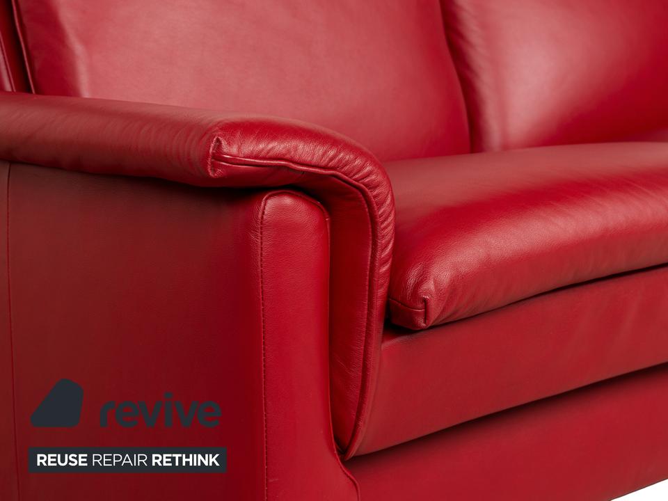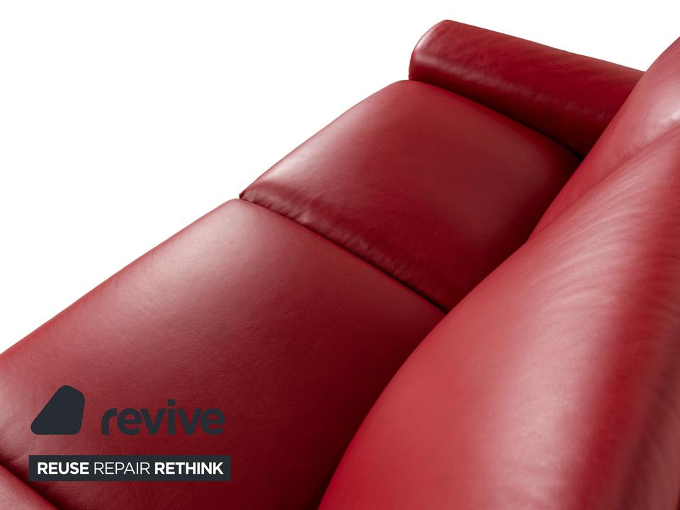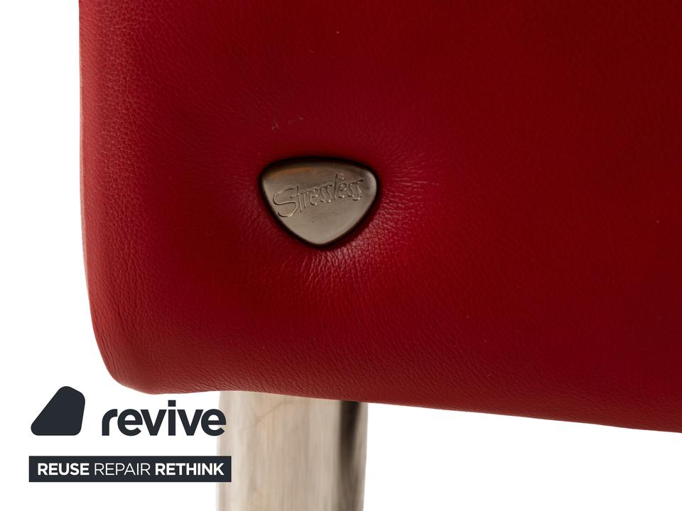 Das Sofa Aurora von Stressless ist mit einem intensiv roten Leder bezogen und steht auf niedrigen, runden Metallfüßen. Es zeichnet sich durch sein klassisches Design aus und verfügt über nach hinten verstellbare Rückenlehnen, so dass die optimale Sitzposition eingestellt werden kann. Das markante Rot sorgt für einen echten Hingucker im modernen Wohnzimmer.
