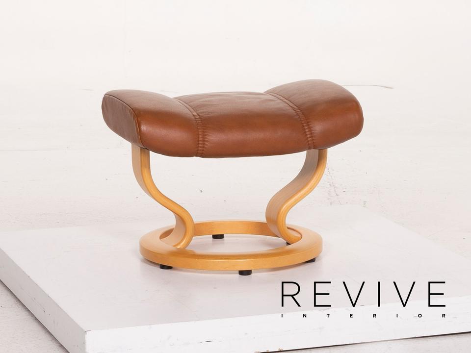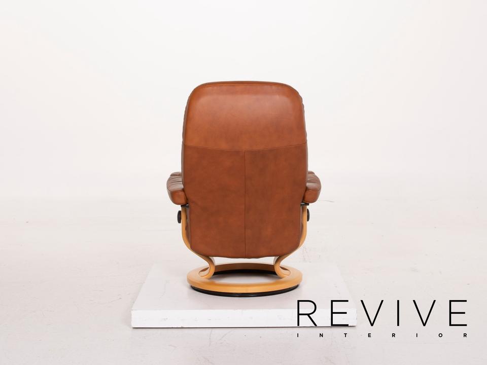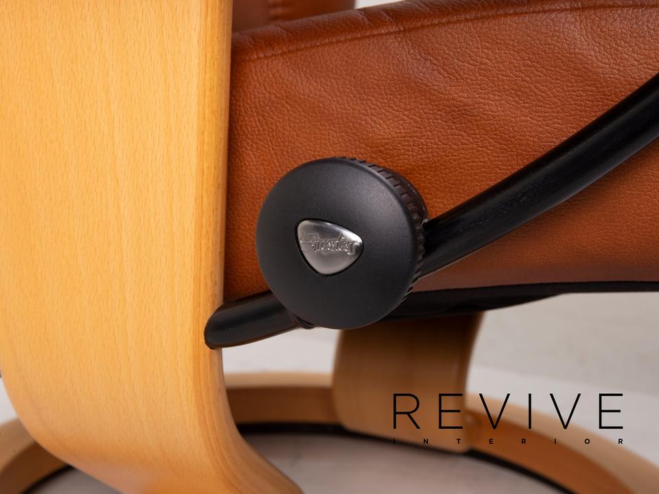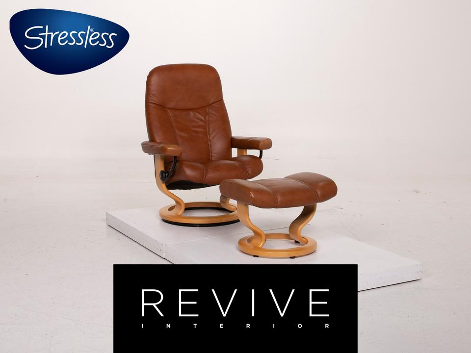 Der Stressless Consul mit Hocker macht seinem Namen alle Ehre – hoher Komfort ist garantiert durch eine weiche Sitzpolster und eine ergonomische Form. Sessel und Hocker sind mit einem blauen Echtleder bezogen und stehen auf einem Gestell aus dunklem Holz. Der Sessel (Größe M) kann außerdem in eine Relaxposition gebracht werden.