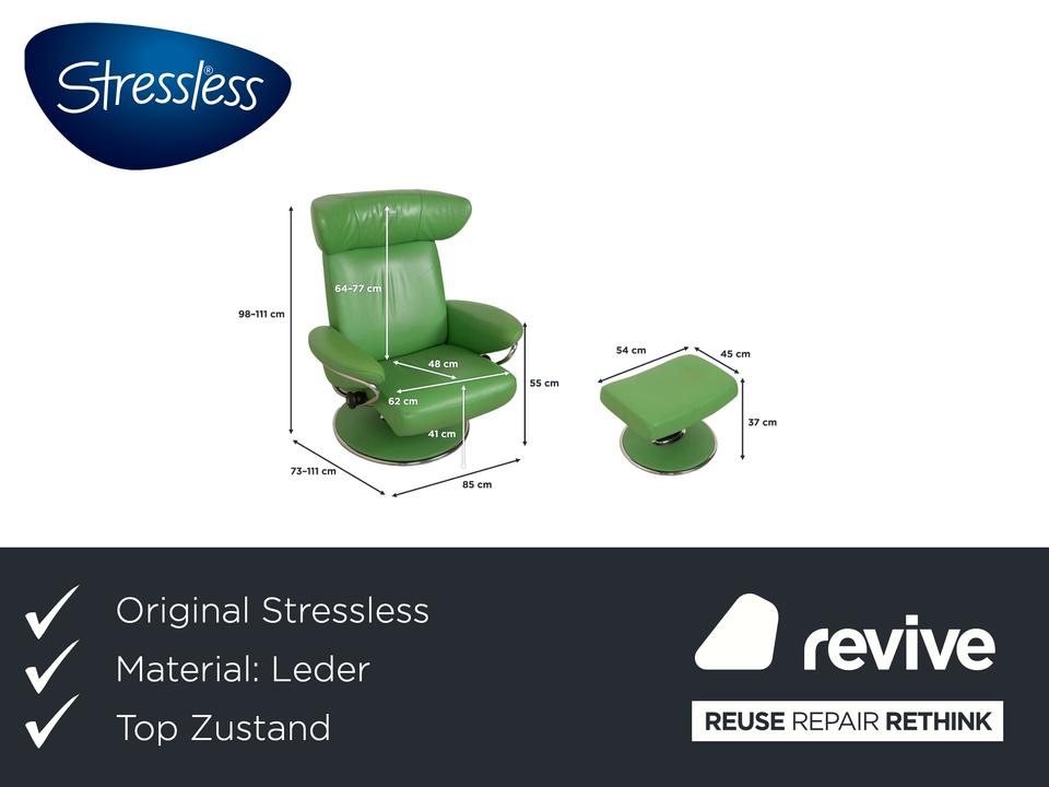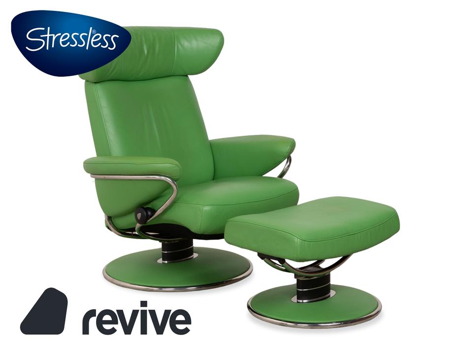 Entdecke den Stressless Relaxsessel in leuchtendem Grün. Dein Rückzugsort zum Abschalten und Krafttanken. Das skandinavische Design, die edle Lederpolsterung und die ergonomisch geformte Sitzfläche bieten dir pure Entspannung. Der separat stehende Hocker ermöglicht dir, die Beine hochzulegen und vollkommen zur Ruhe zu kommen. Die innovative Stressless-Gleit- und Drehfunktion sorgt für individuellen Sitzkomfort, ganz gleich, wie du dich bewegst.