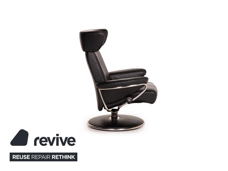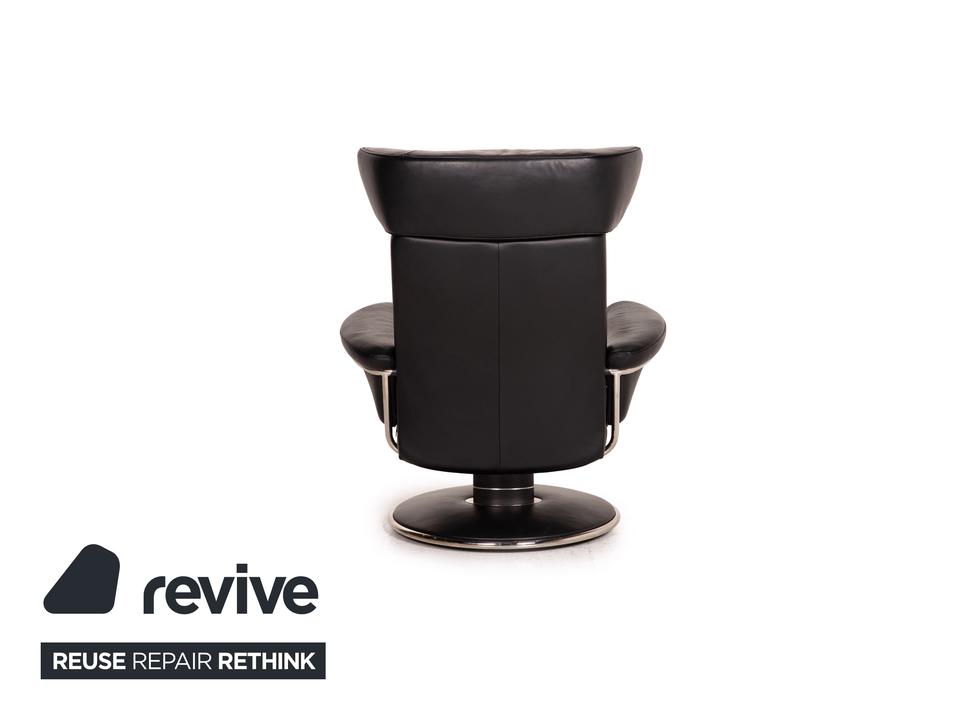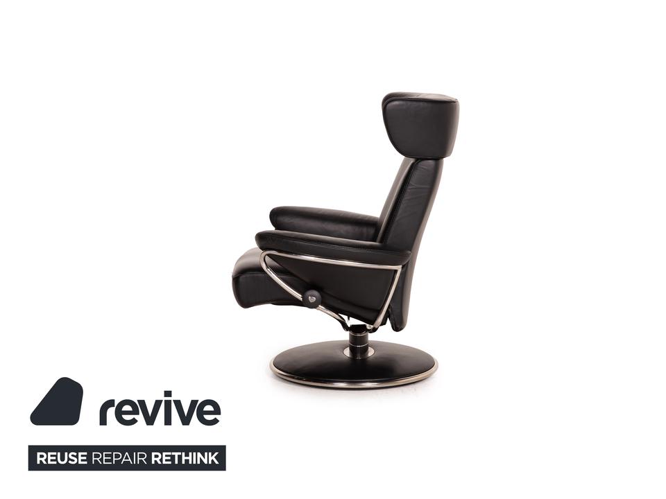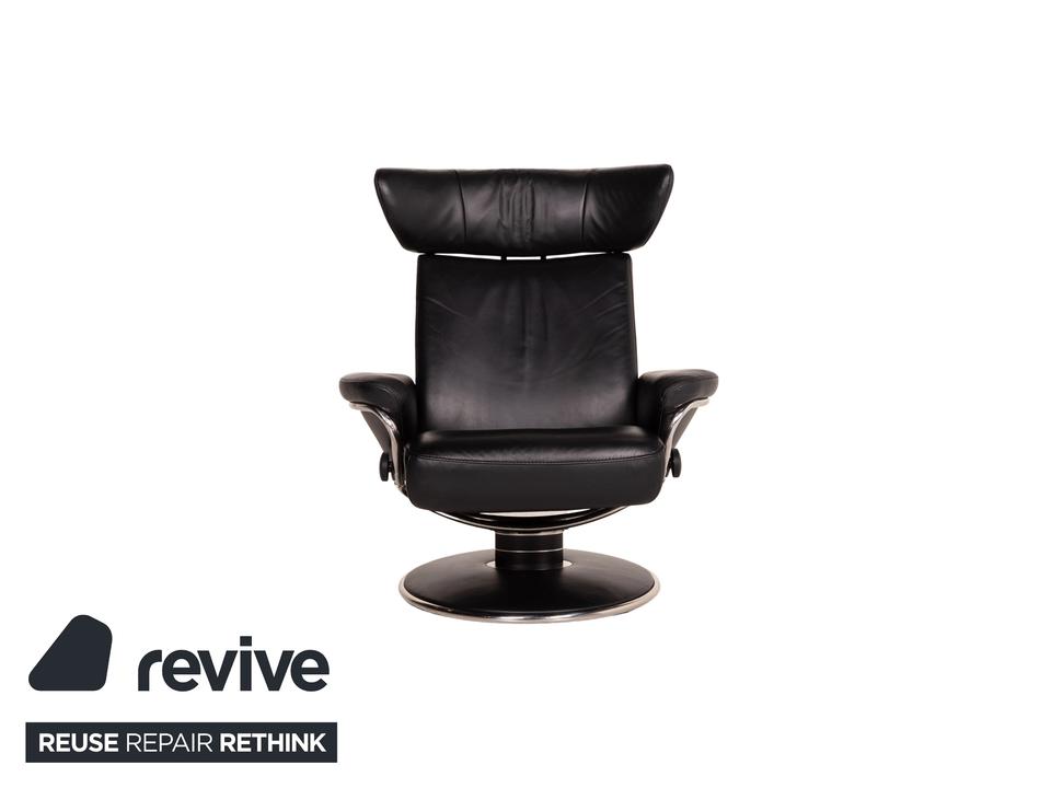 Das Sesselset Jazz (Größe M) ist mit einem schwarzen Echtleder bezogen und steht auf einem Gestell aus Leder und Chrom. Weiche Polster und eine Relaxfunktion sorgen für Entspannung. Die Kopfstütze des Sessels kann nach oben verstellt werden.Der Sessel eignet sich optimal für Menschen mit einer Körpergröße von bis zu 1,80m.